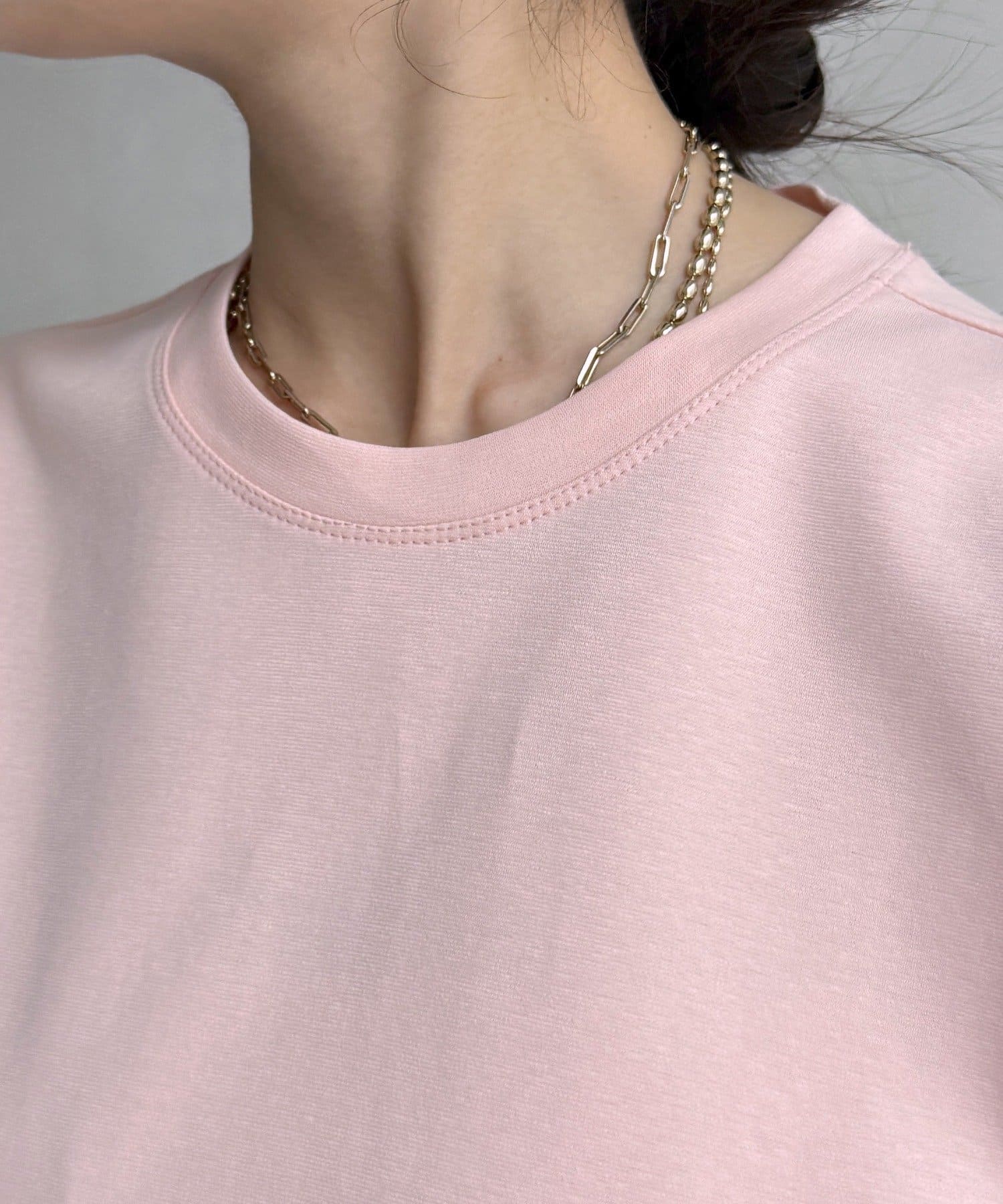 さりげないディテールながらも、視線を引き寄せるアクセントとなり、シンプルなトップスに奥行きをプラスします。