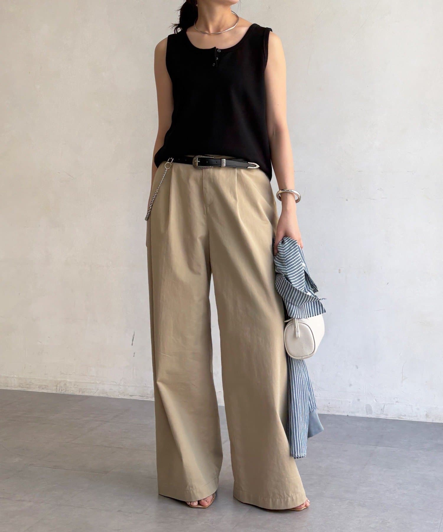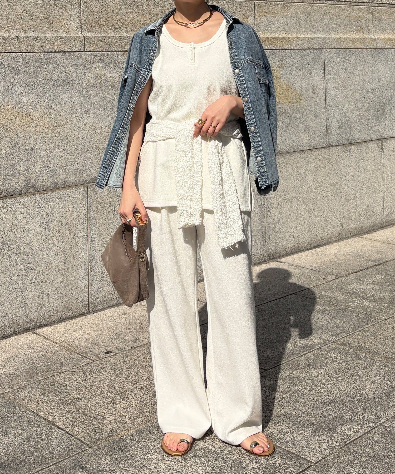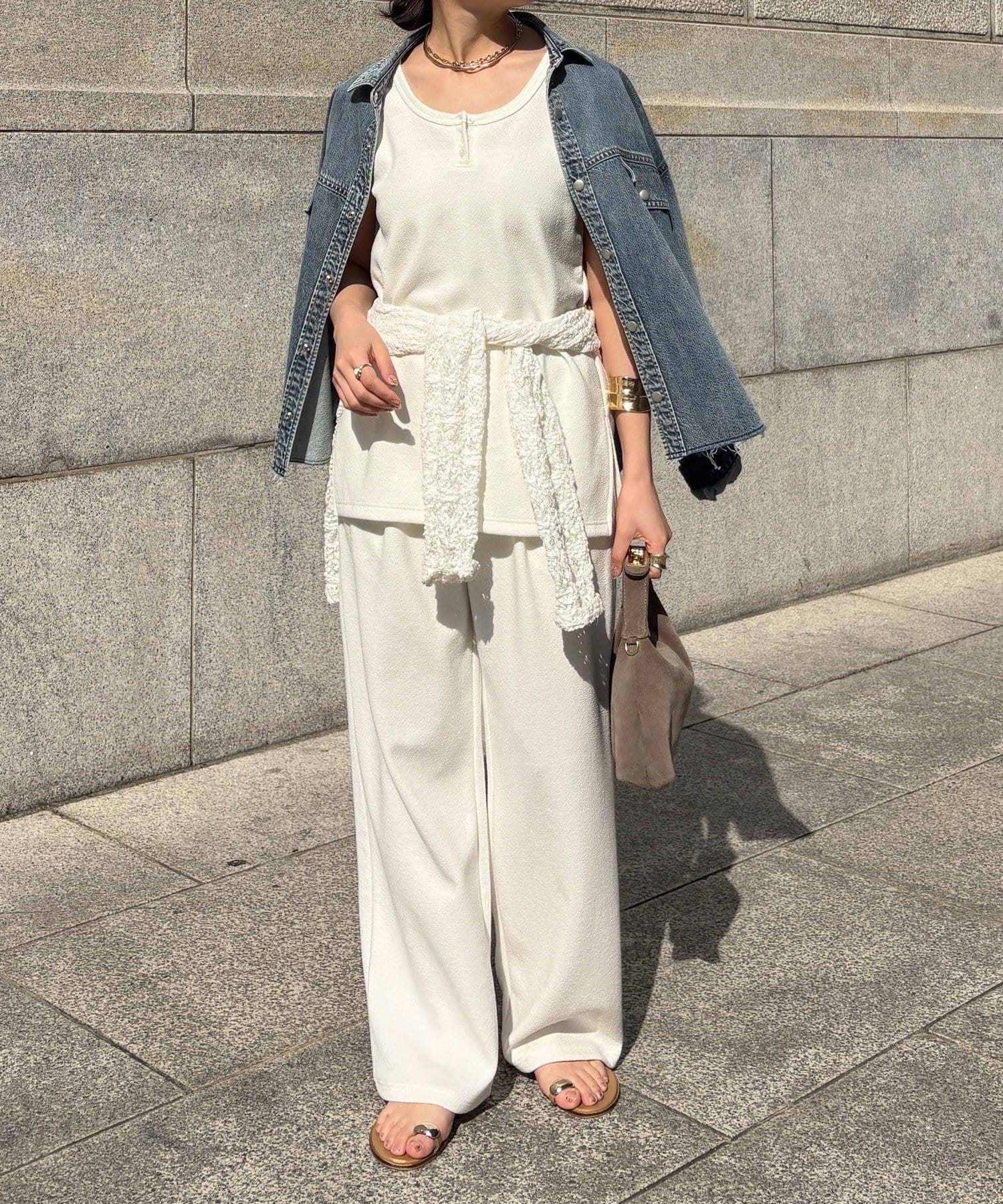 同素材の、 ブークレータックワイドパンツ と合わせるのがおすすめです。