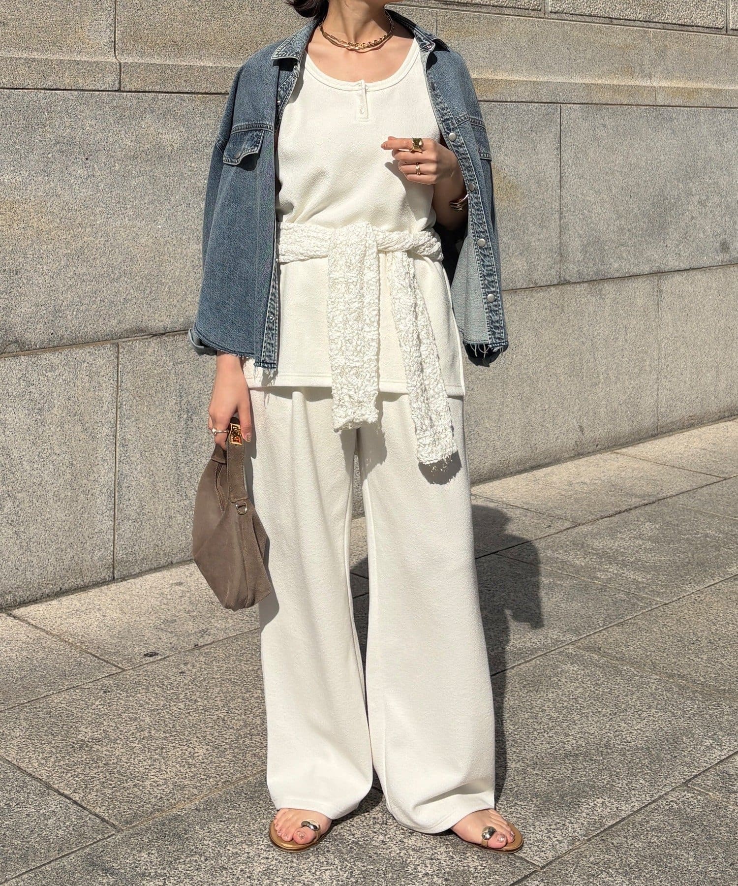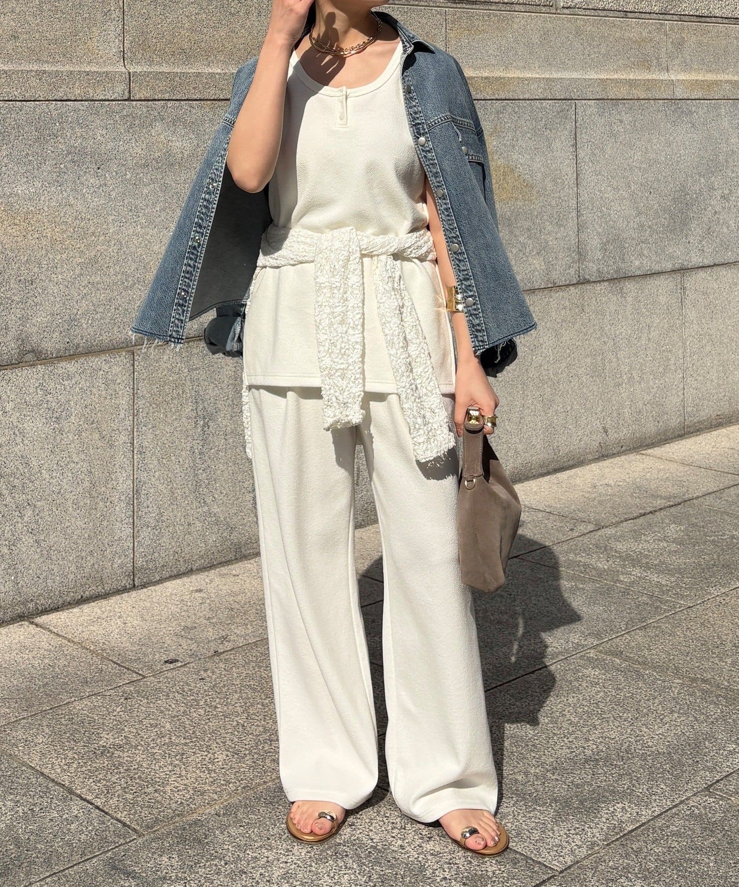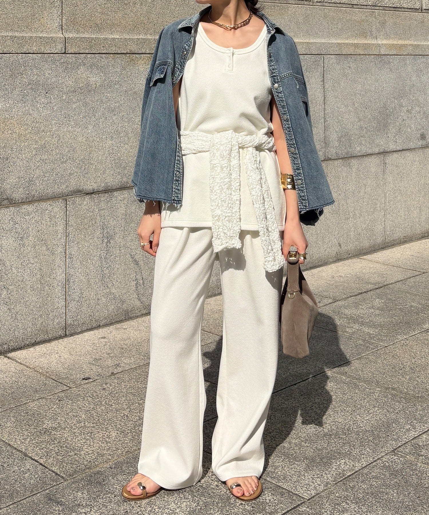 同素材の、 ブークレータックワイドパンツ と合わせるのがおすすめです。