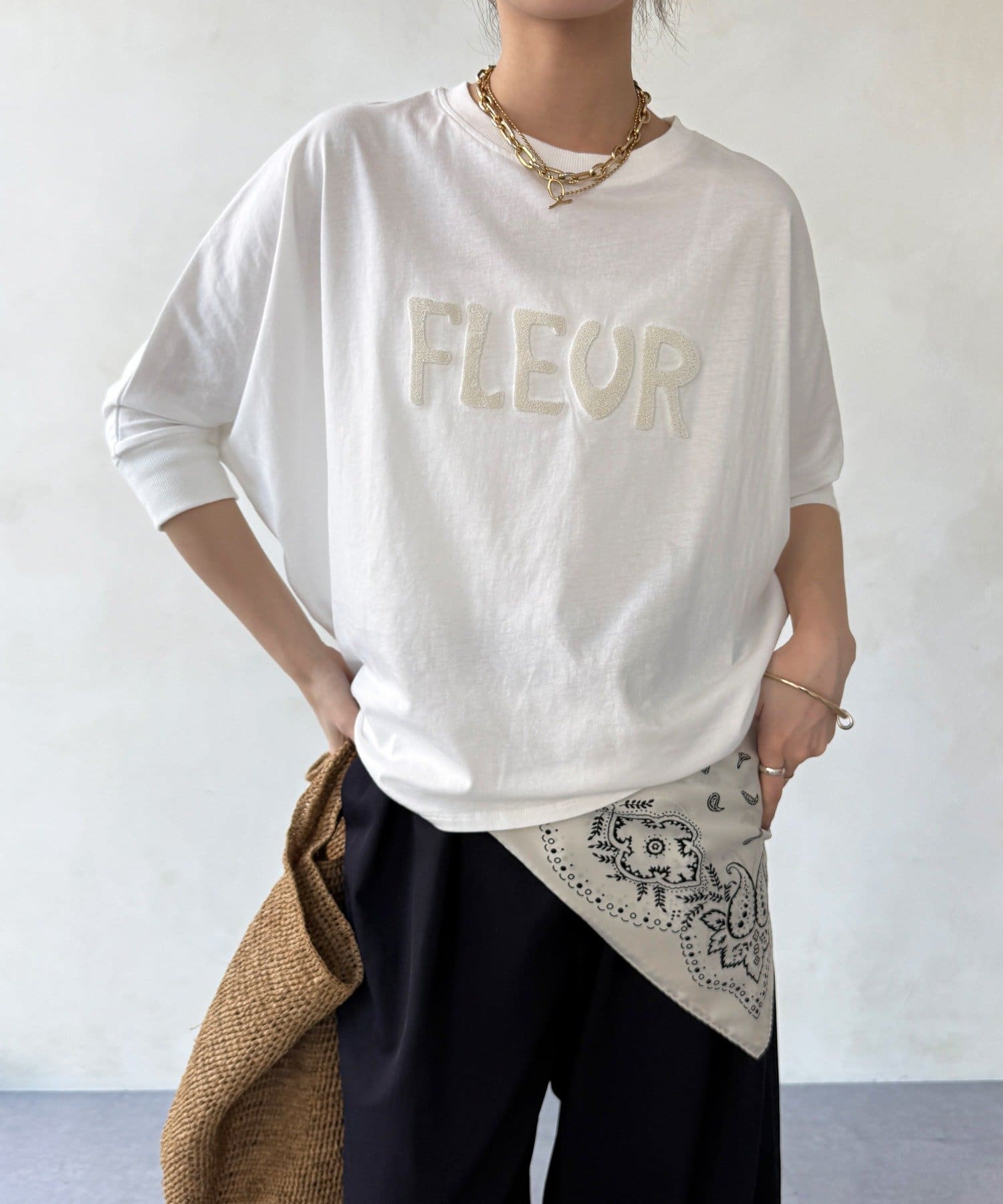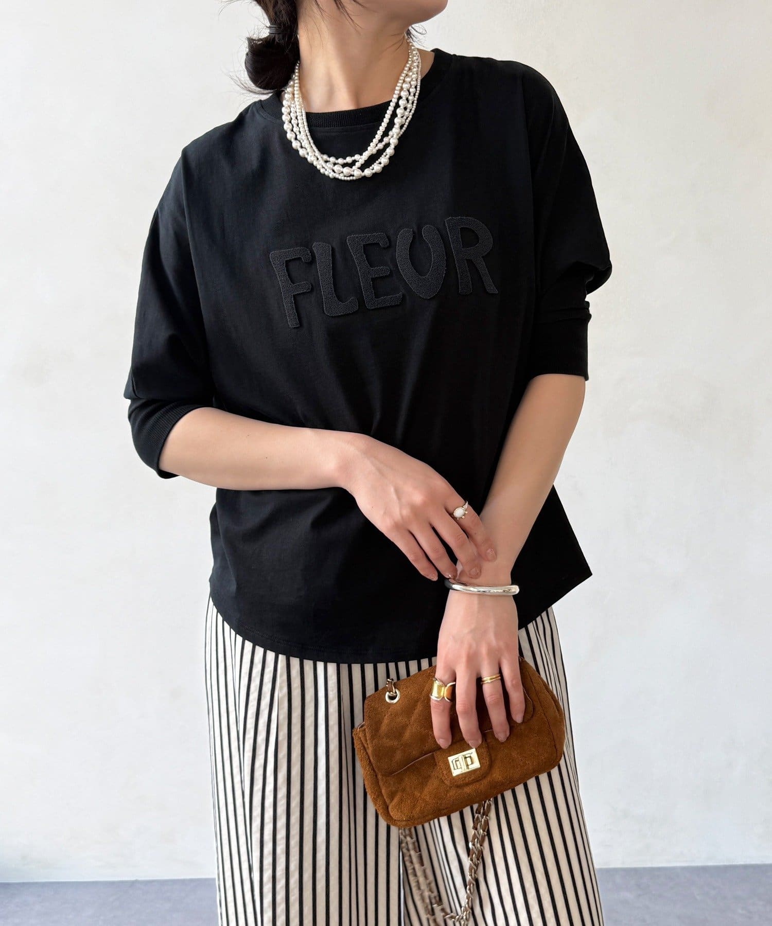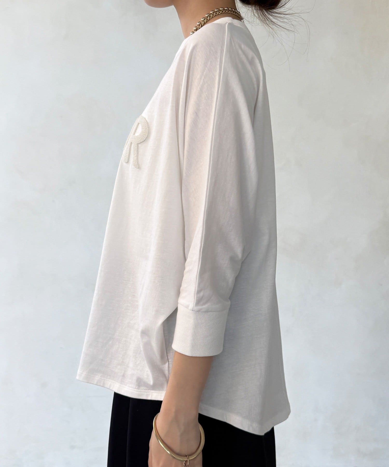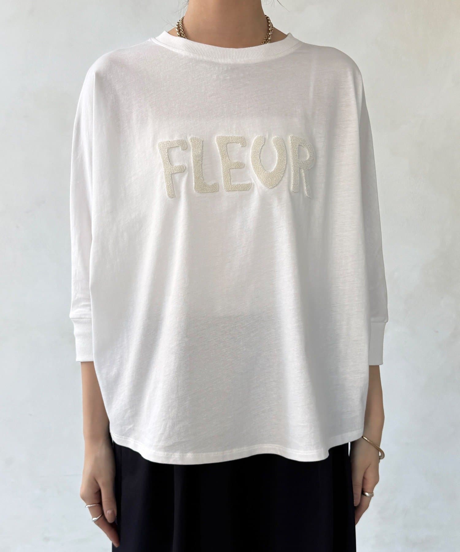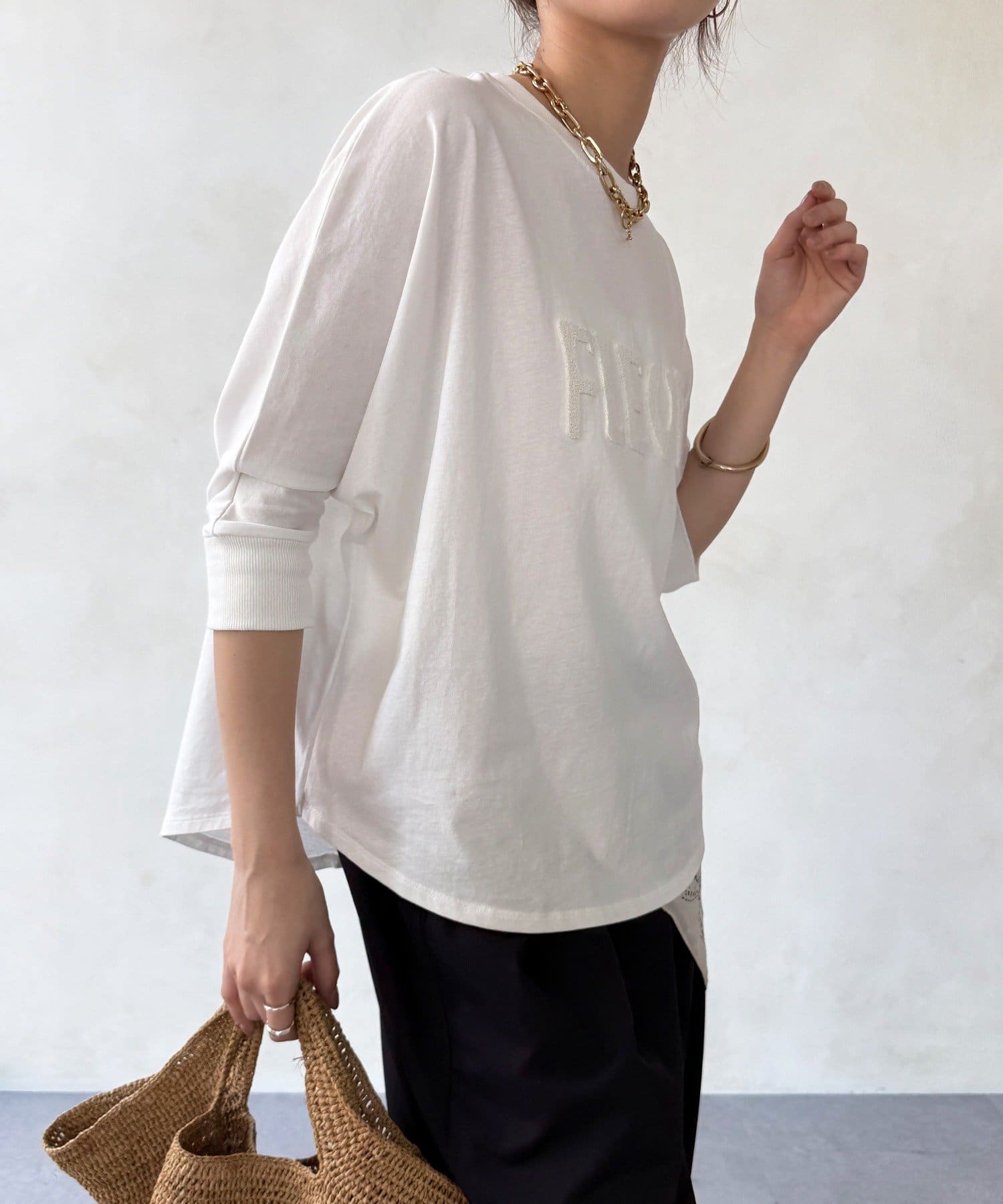 TOP > DOUDOU > レディース > トップス > Tシャツ/カットソー > 【WEB限定】7分袖芝生刺繍ロゴTEE