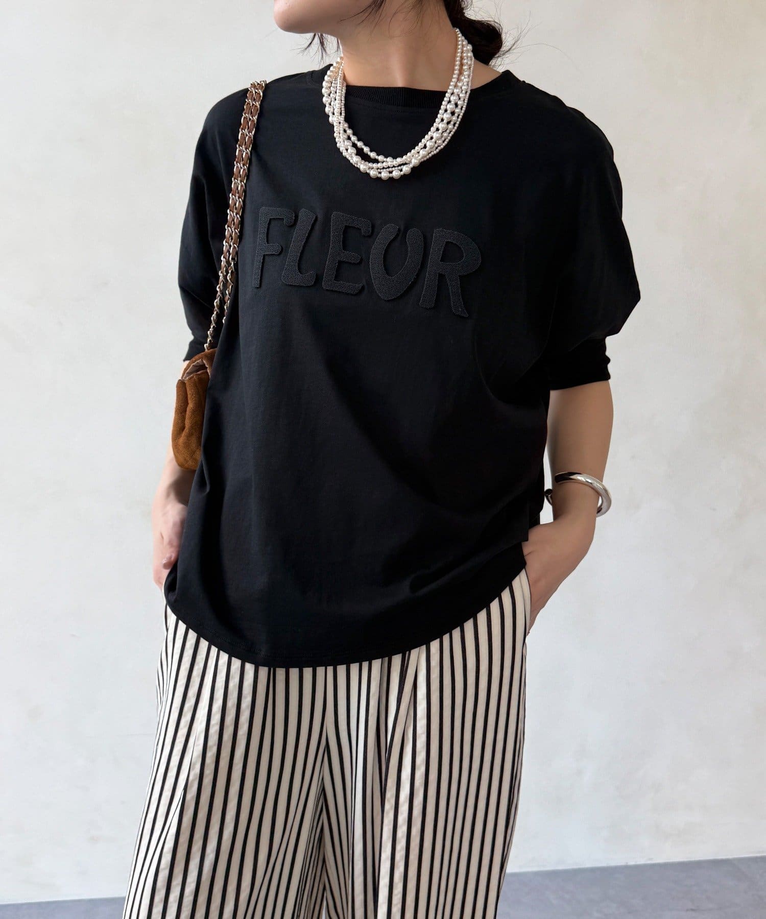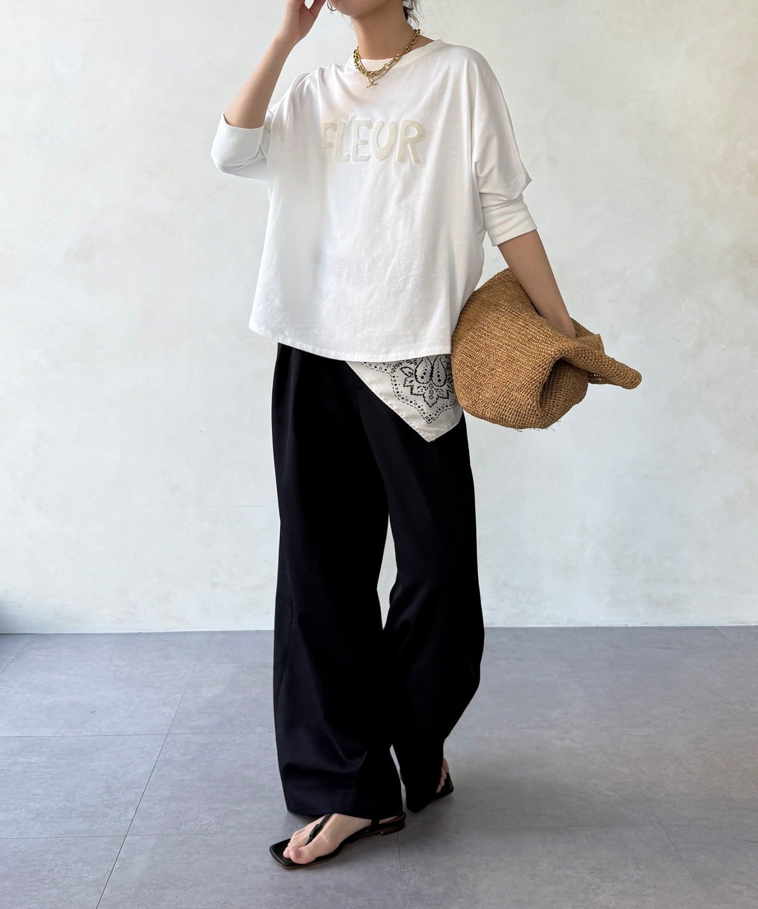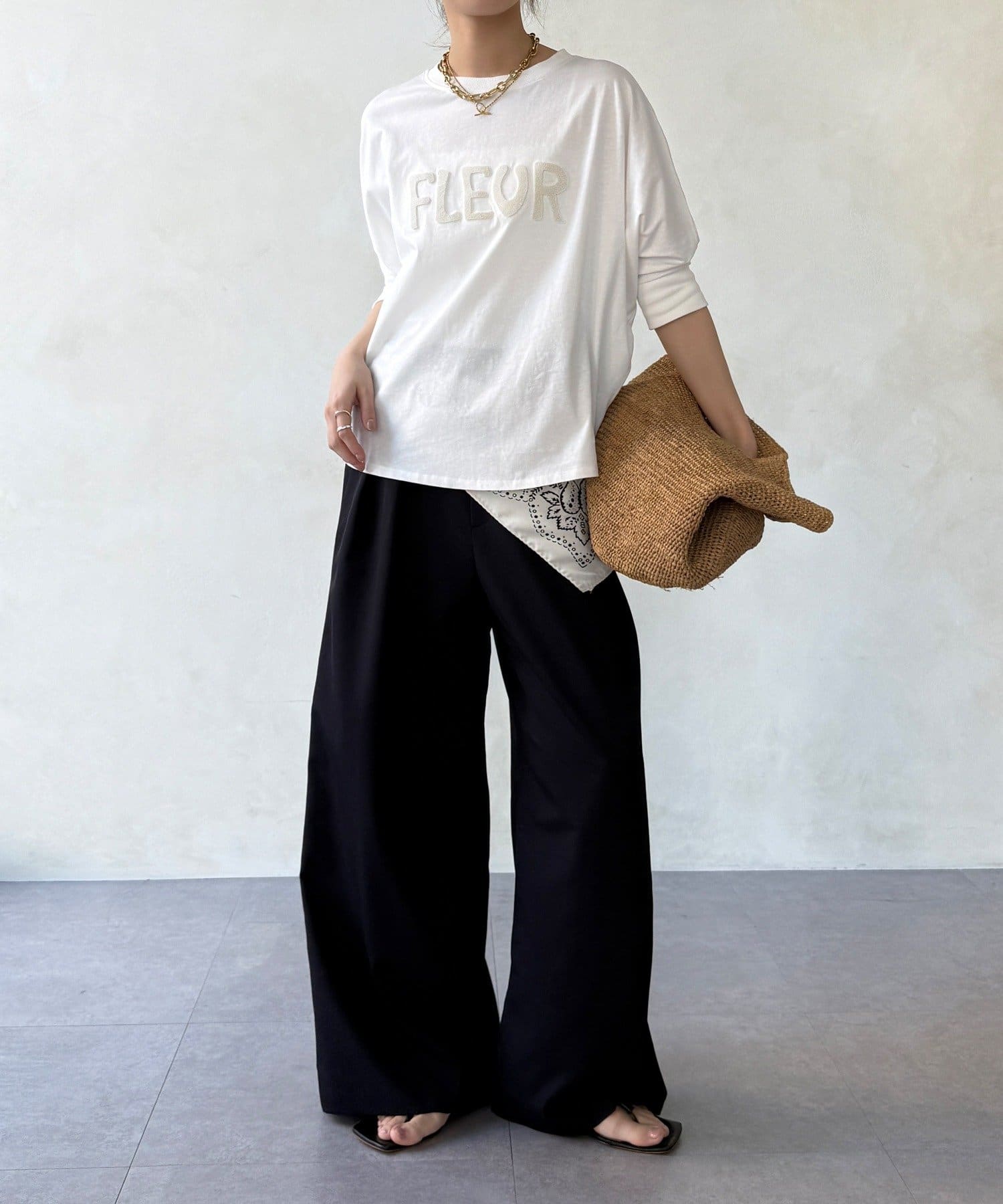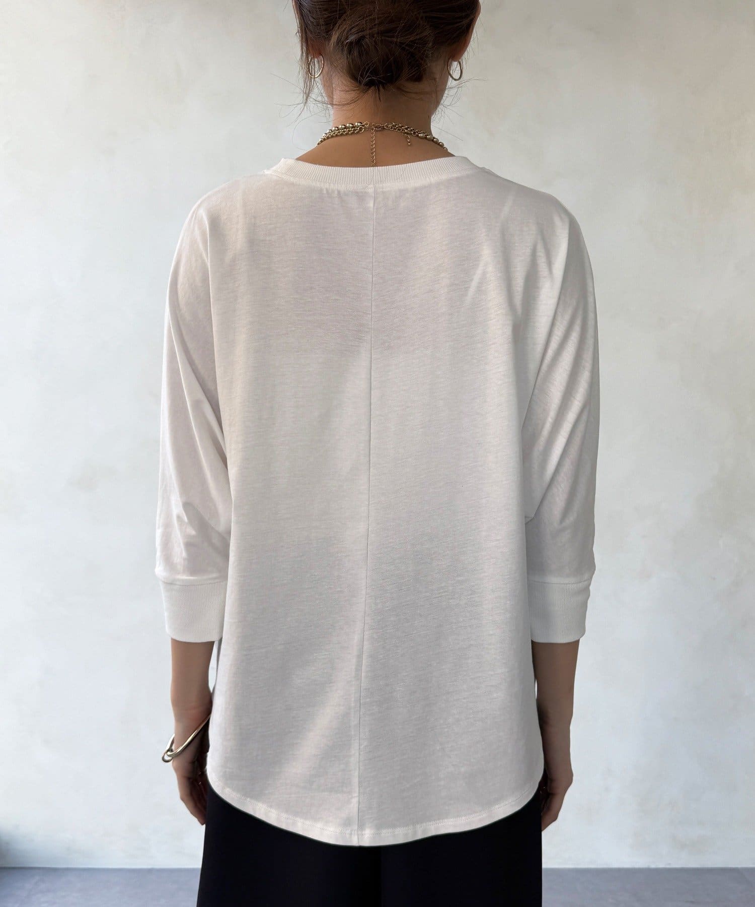 TOP > DOUDOU > レディース > トップス > Tシャツ/カットソー > 【WEB限定】7分袖芝生刺繍ロゴTEE