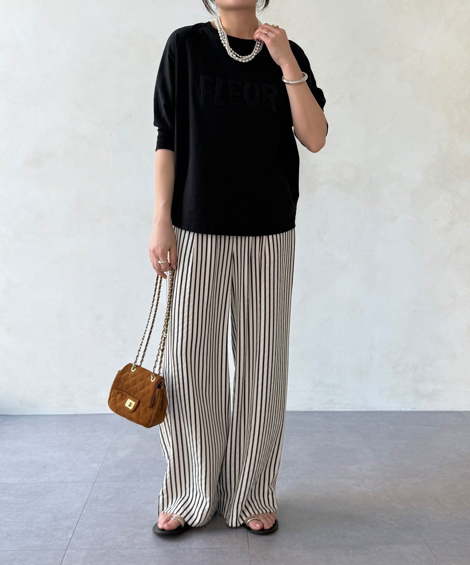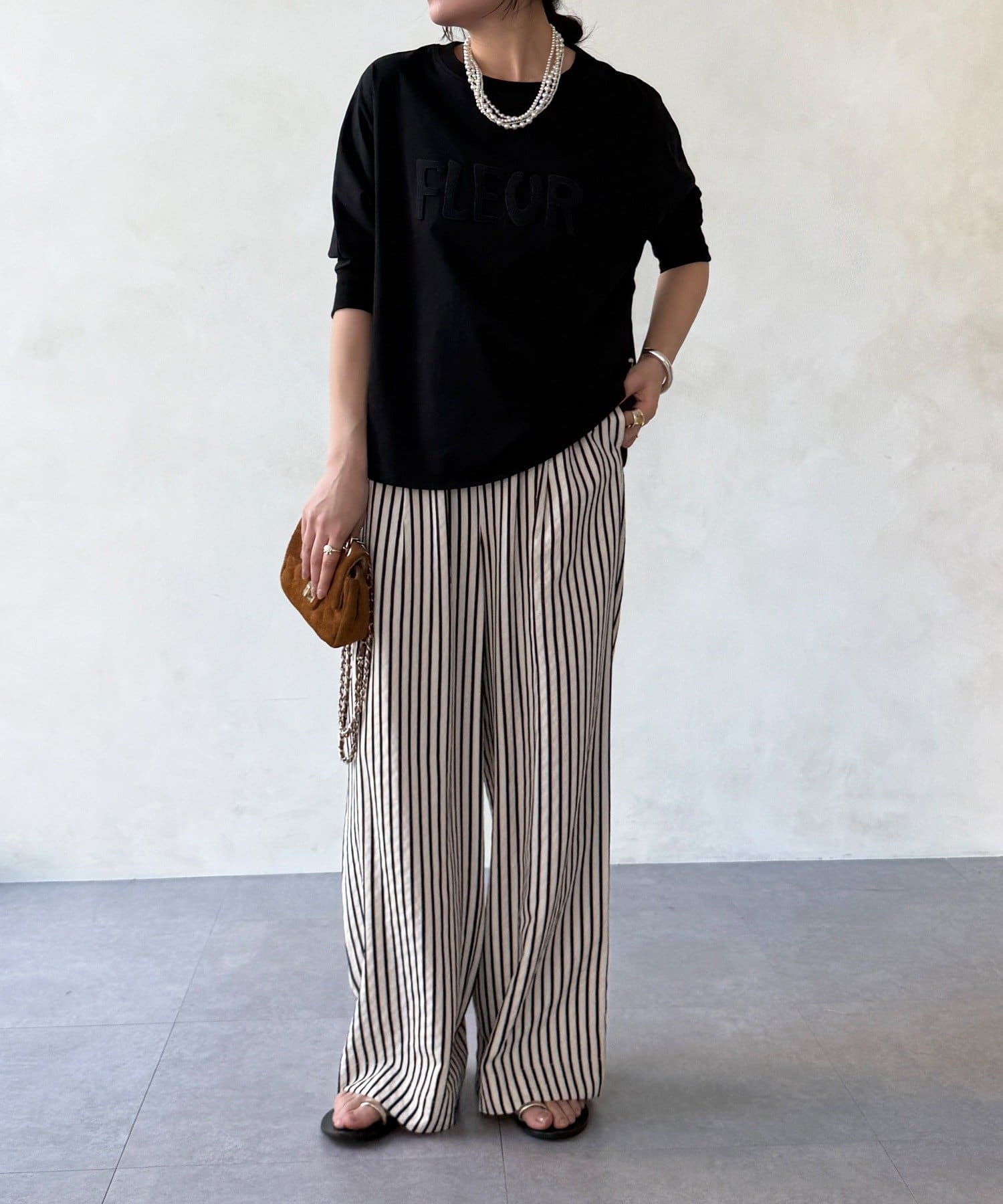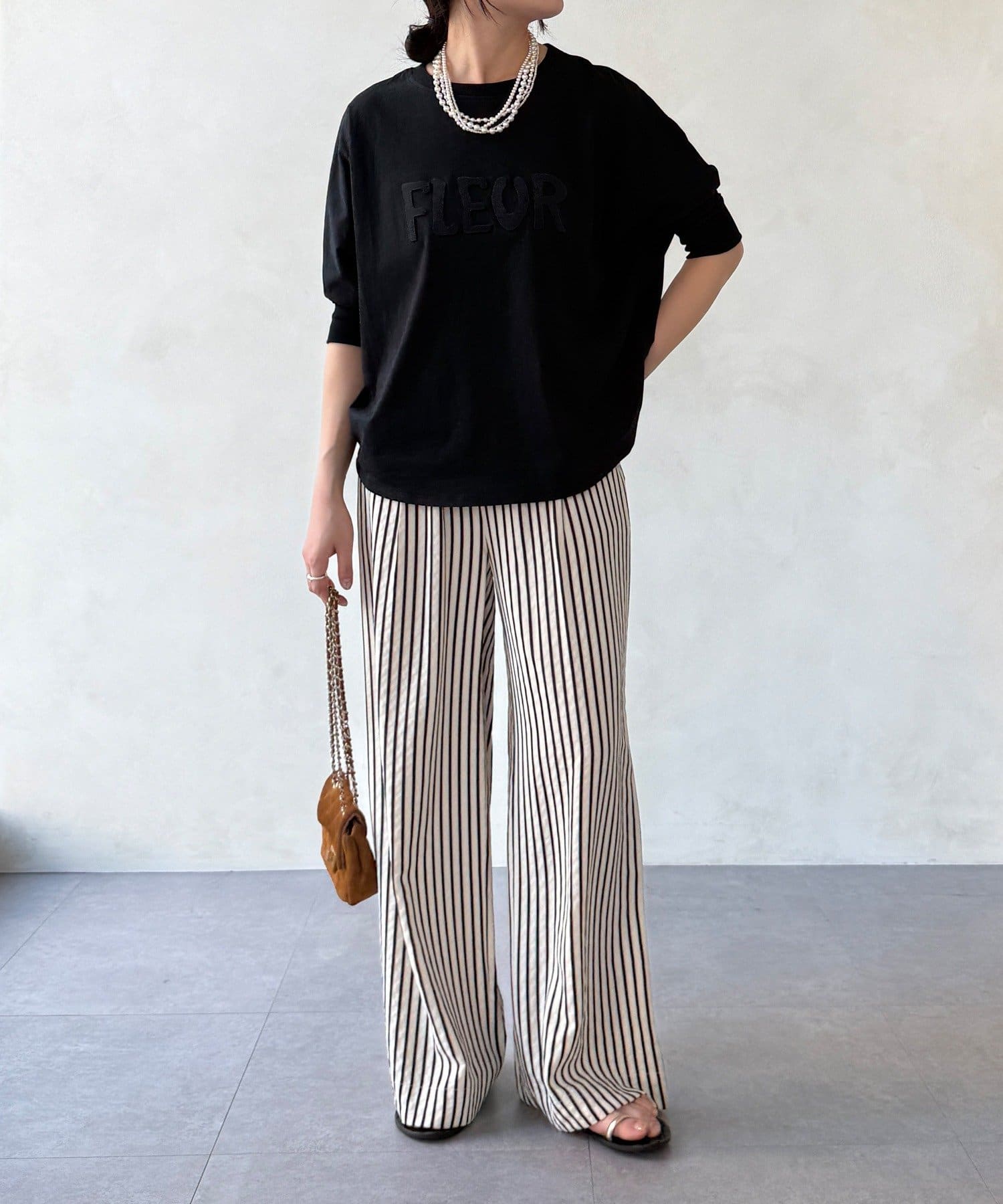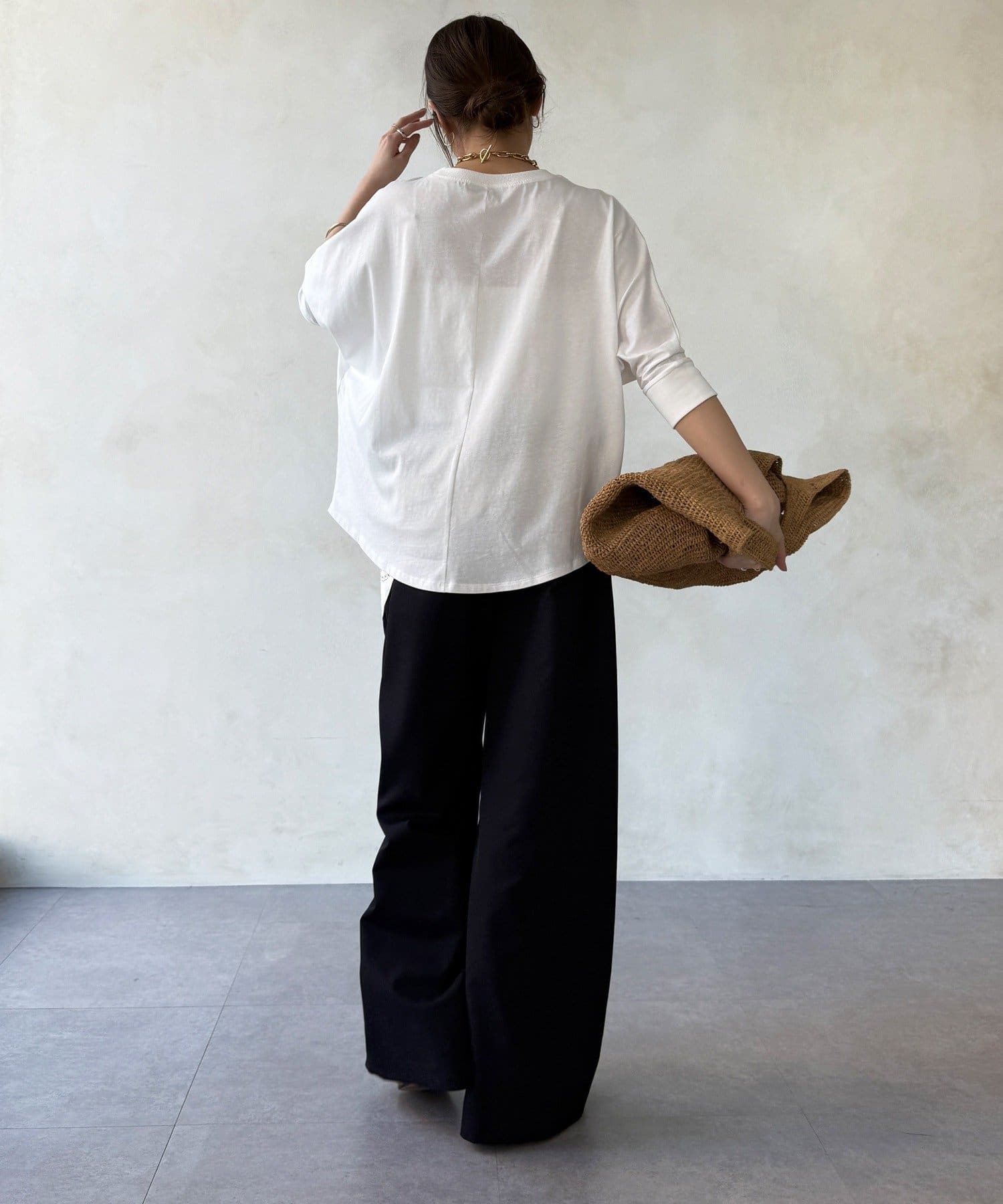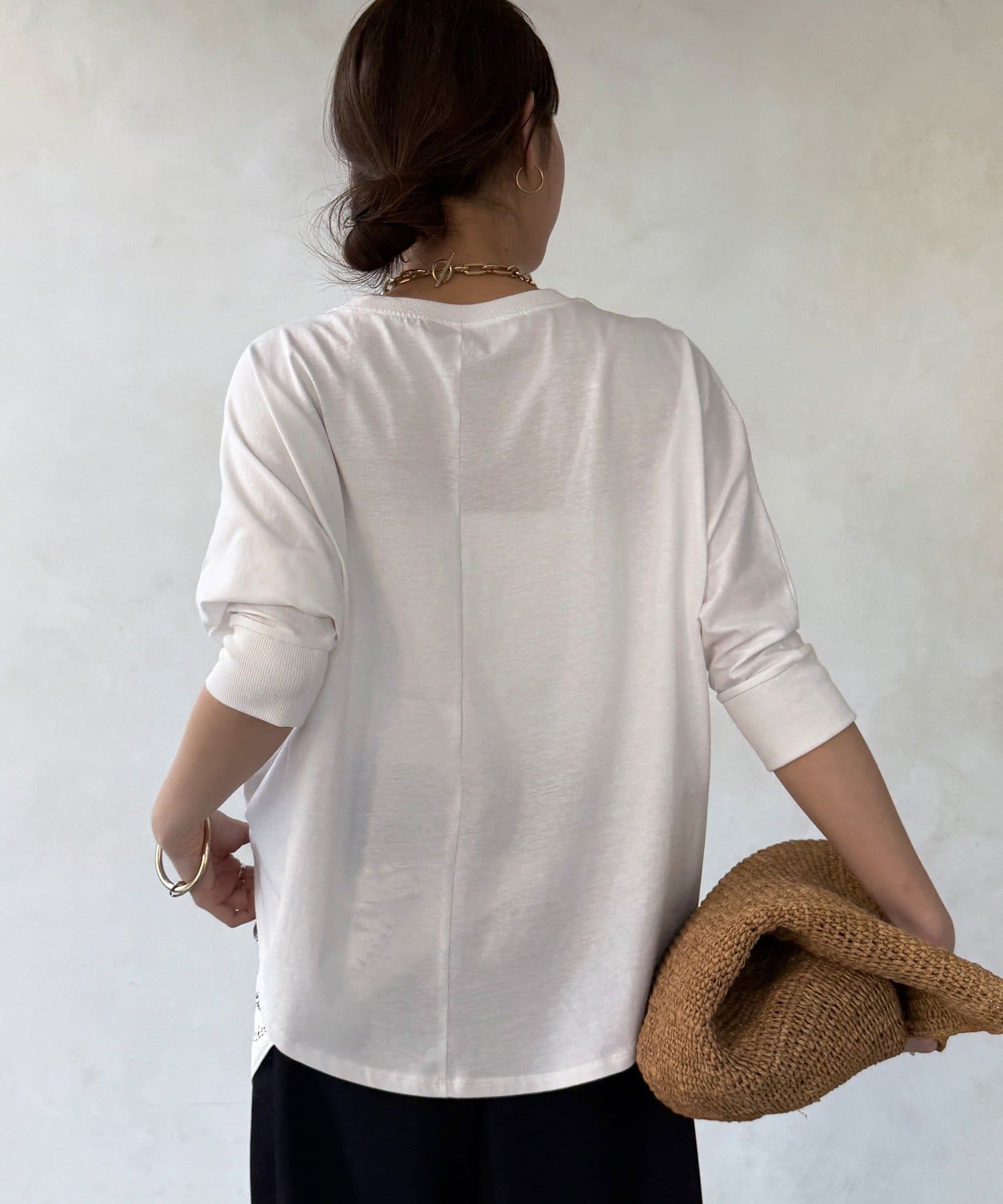 TOP > DOUDOU > レディース > トップス > Tシャツ/カットソー > 【WEB限定】7分袖芝生刺繍ロゴTEE