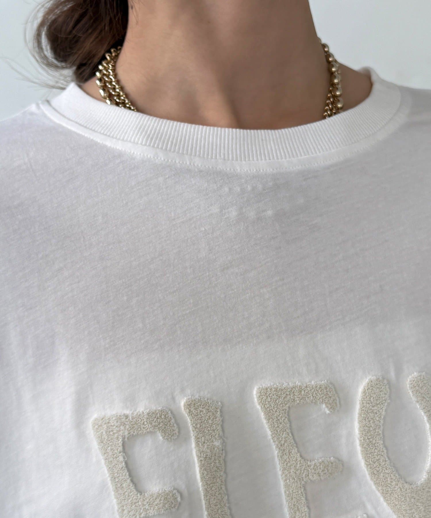 DOUDOU(ドゥドゥ) 【WEB限定】7分袖芝生刺繍ロゴTEE