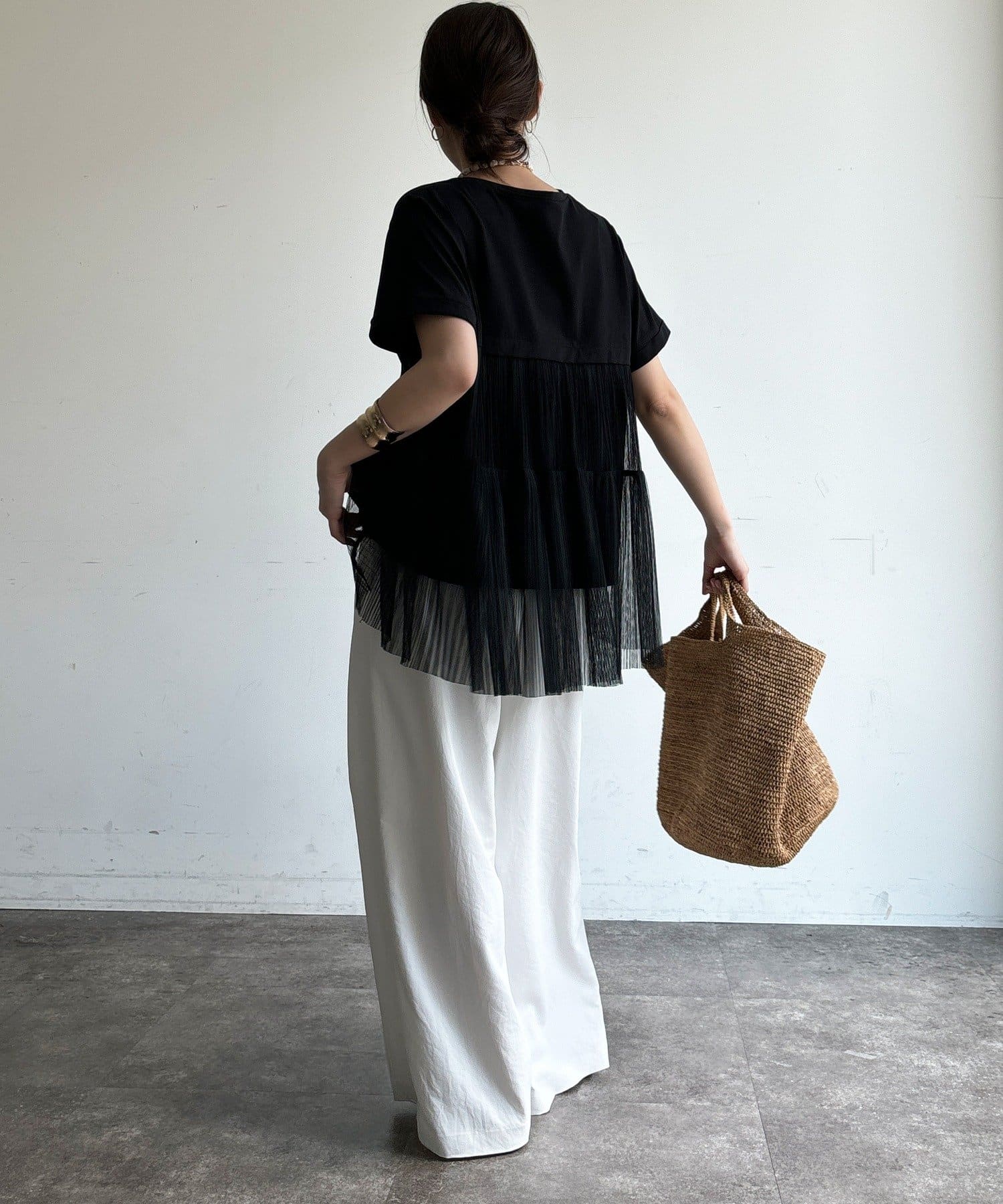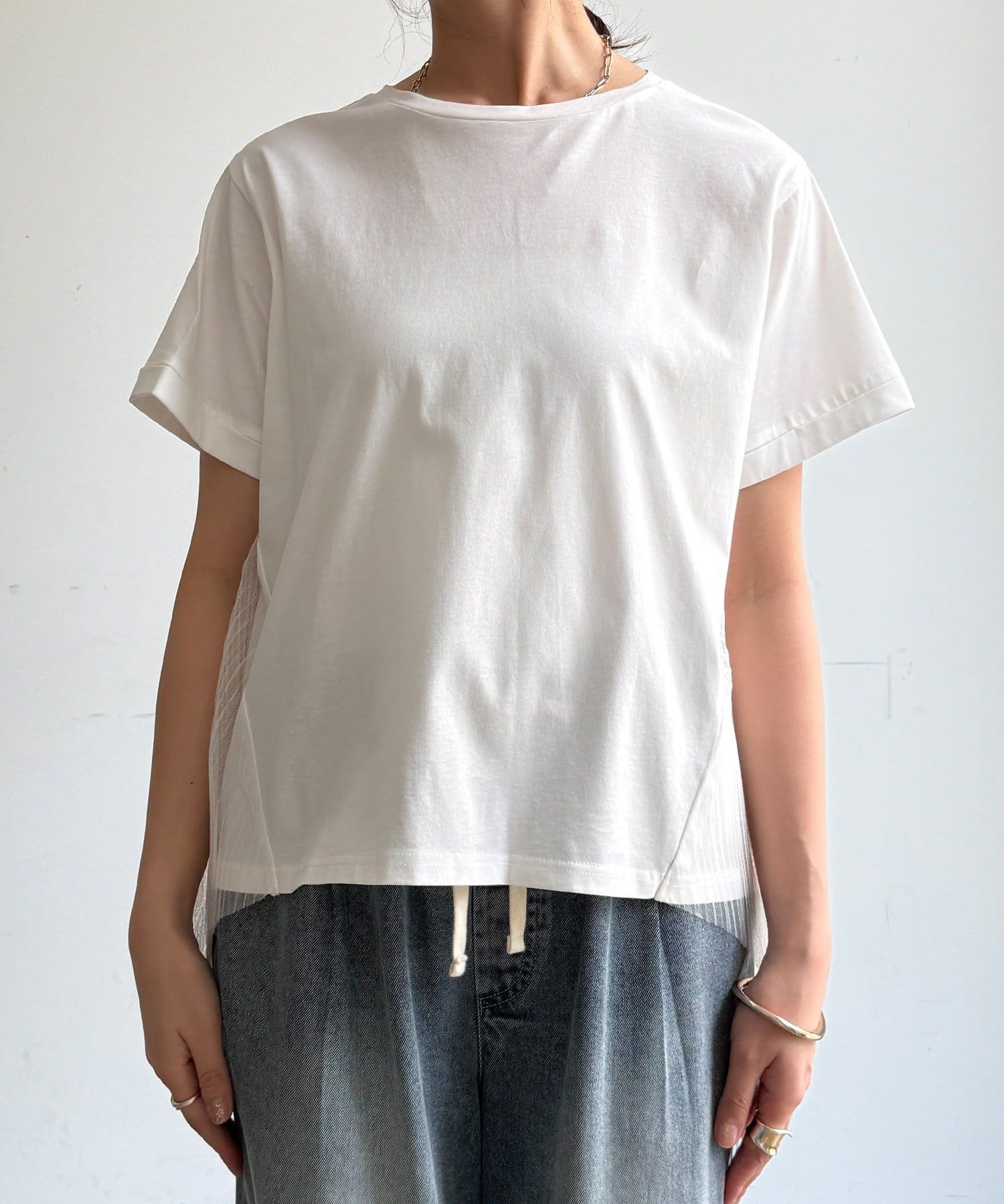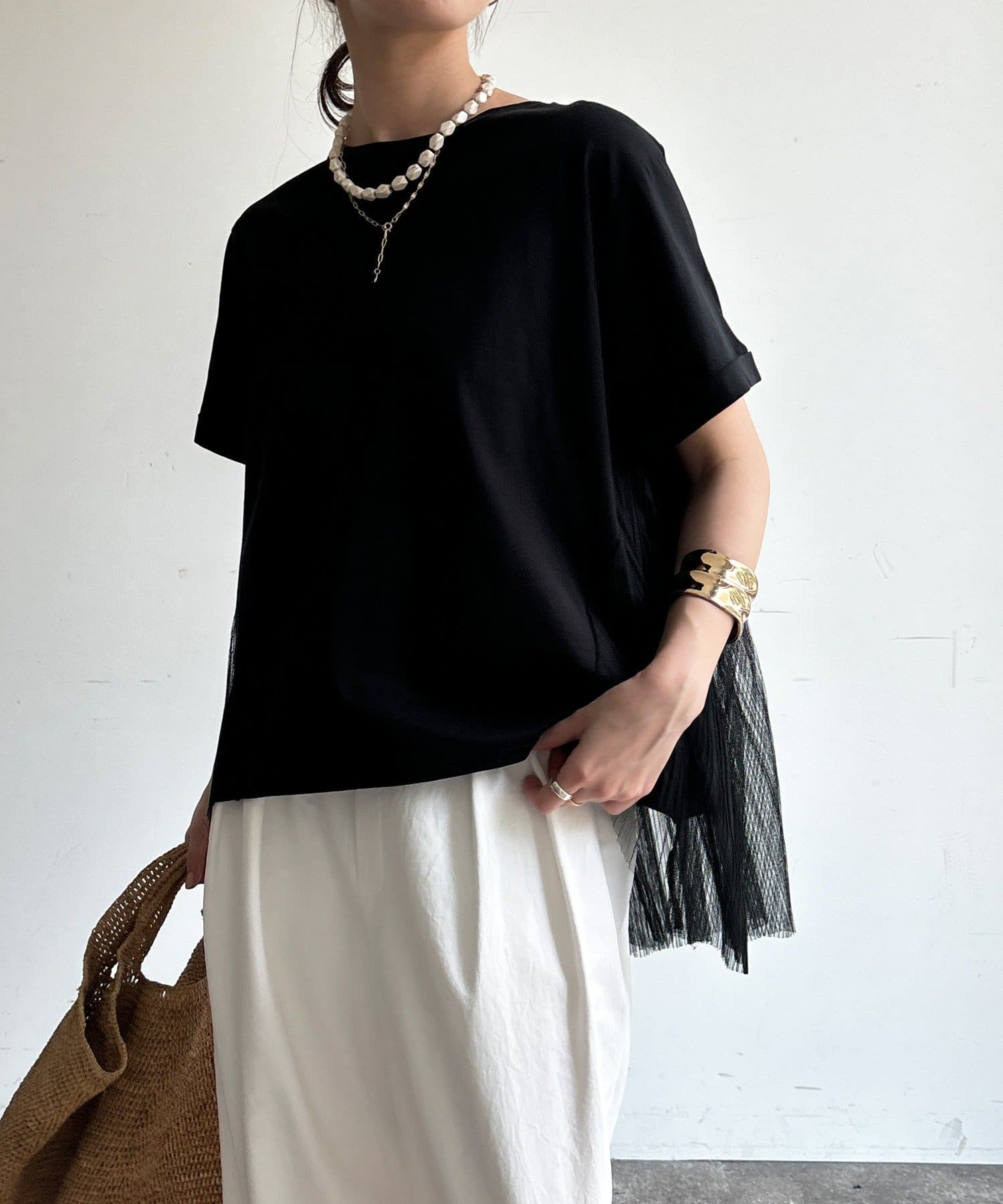 TOP > DOUDOU > レディース > トップス > Tシャツ/カットソー > 【WEB限定】チュールプリーツTEE