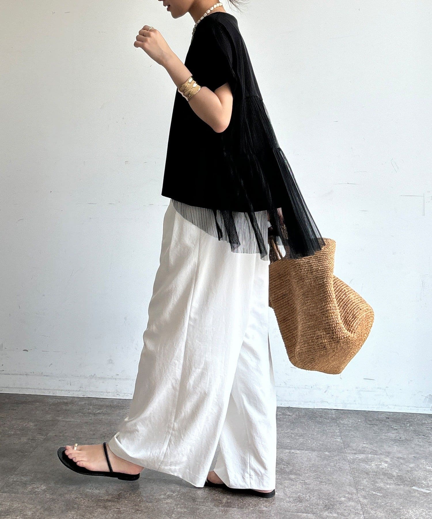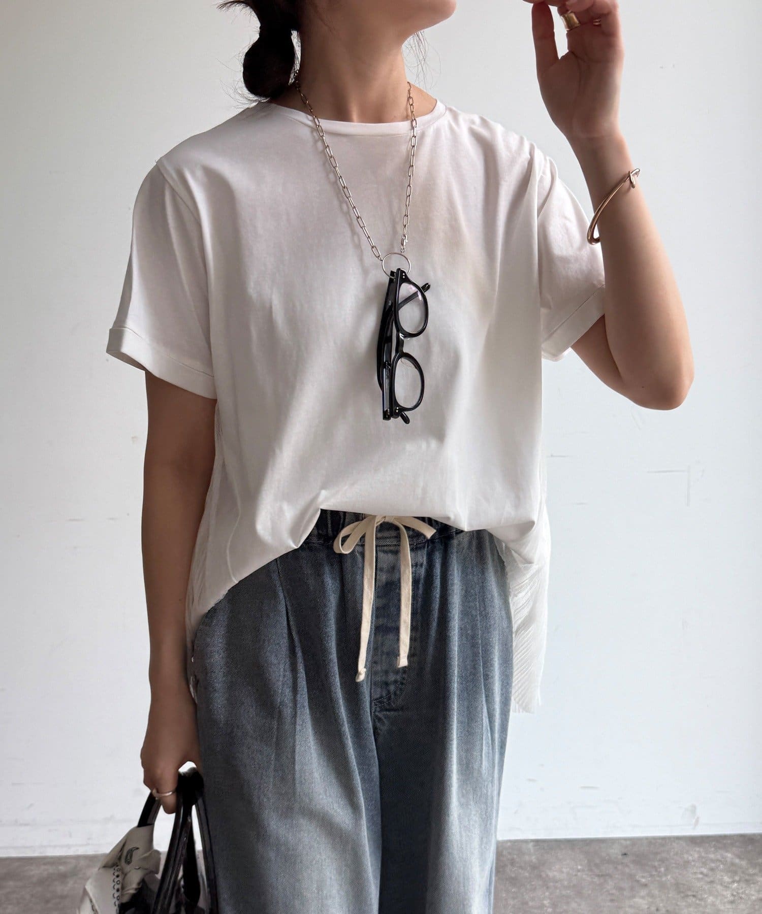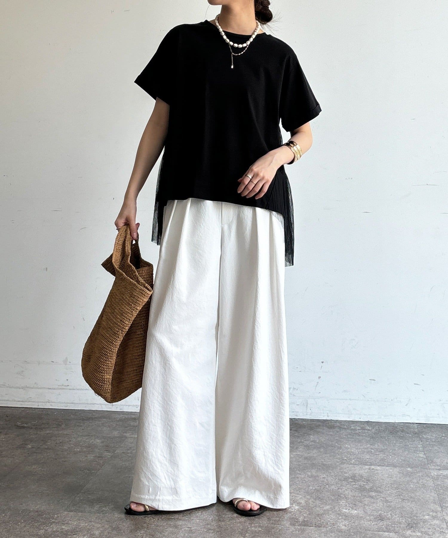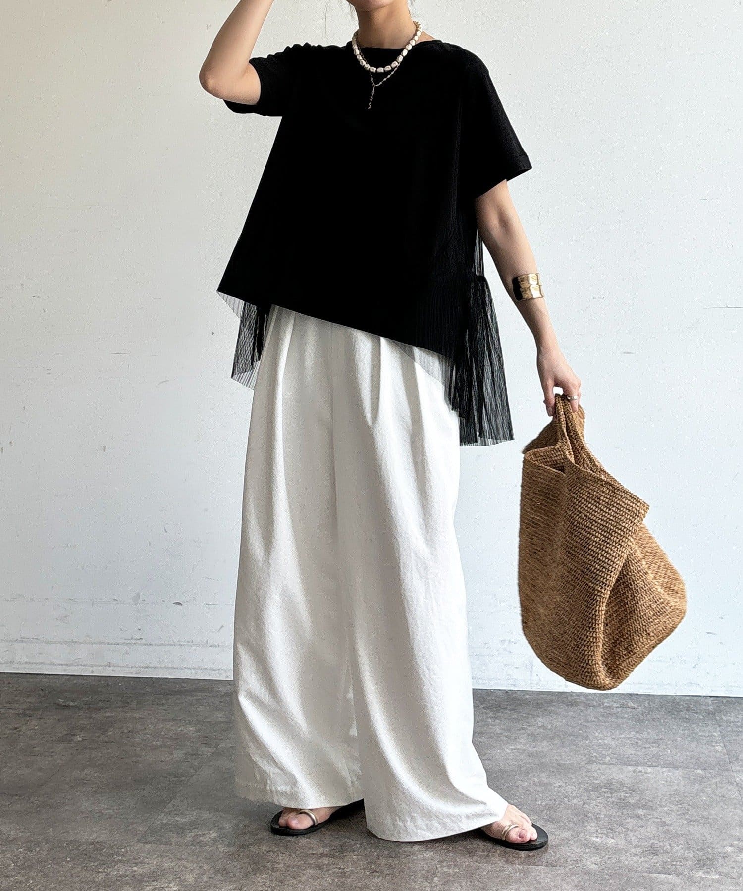 TOP > DOUDOU > レディース > トップス > Tシャツ/カットソー > 【WEB限定】チュールプリーツTEE