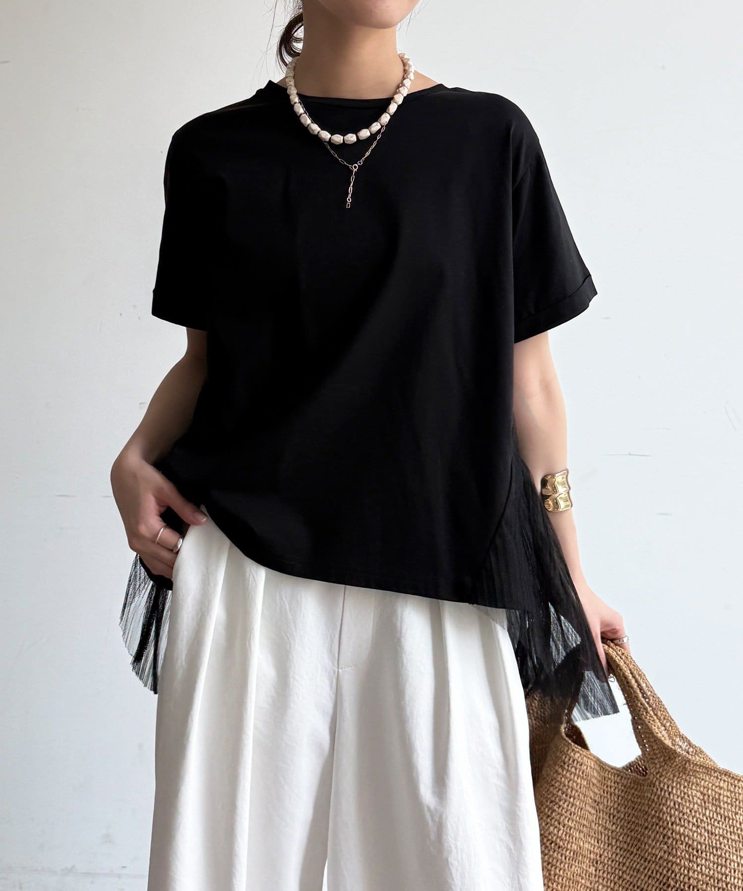 DOUDOU(ドゥドゥ) 【WEB限定】チュールプリーツTEE