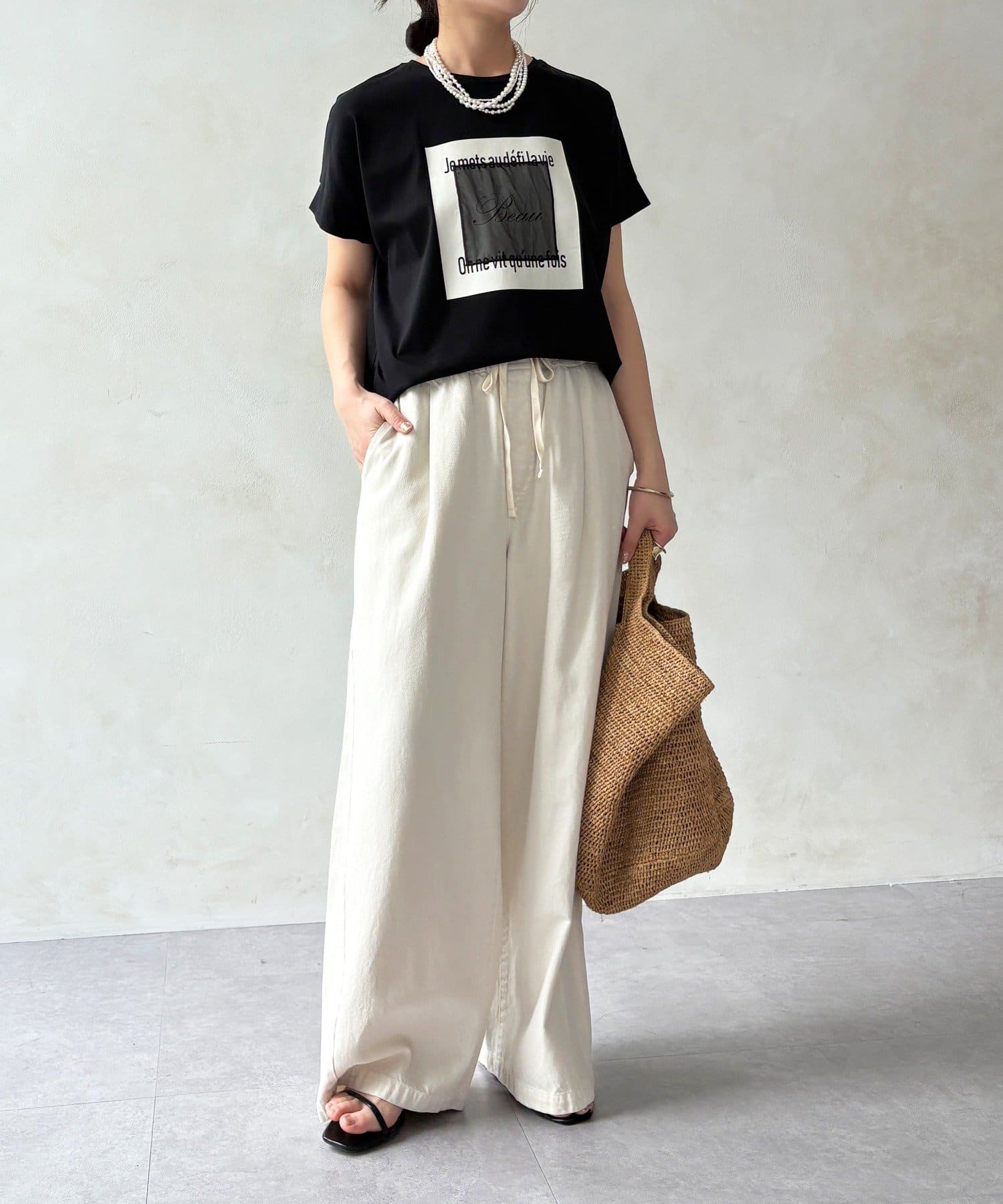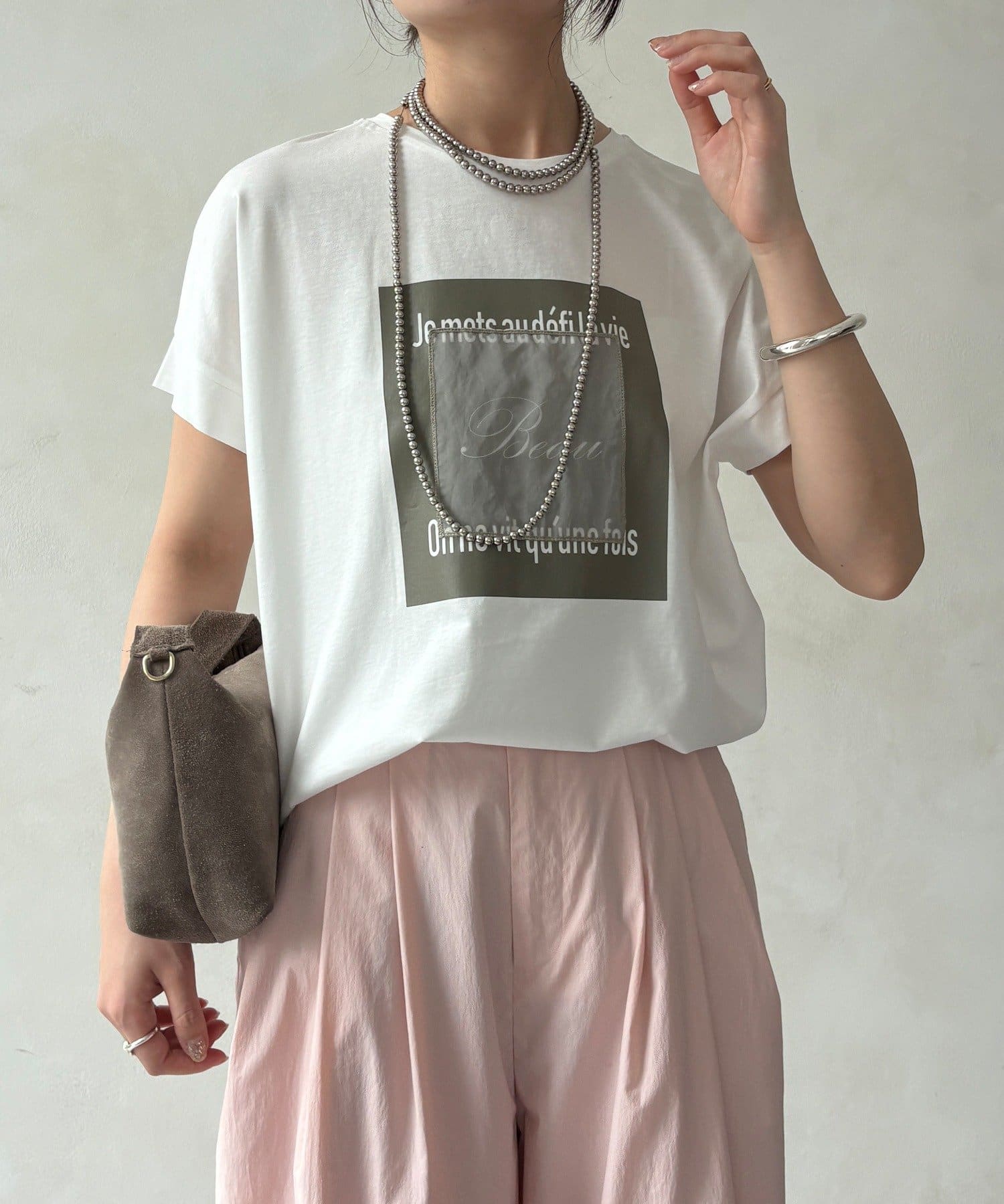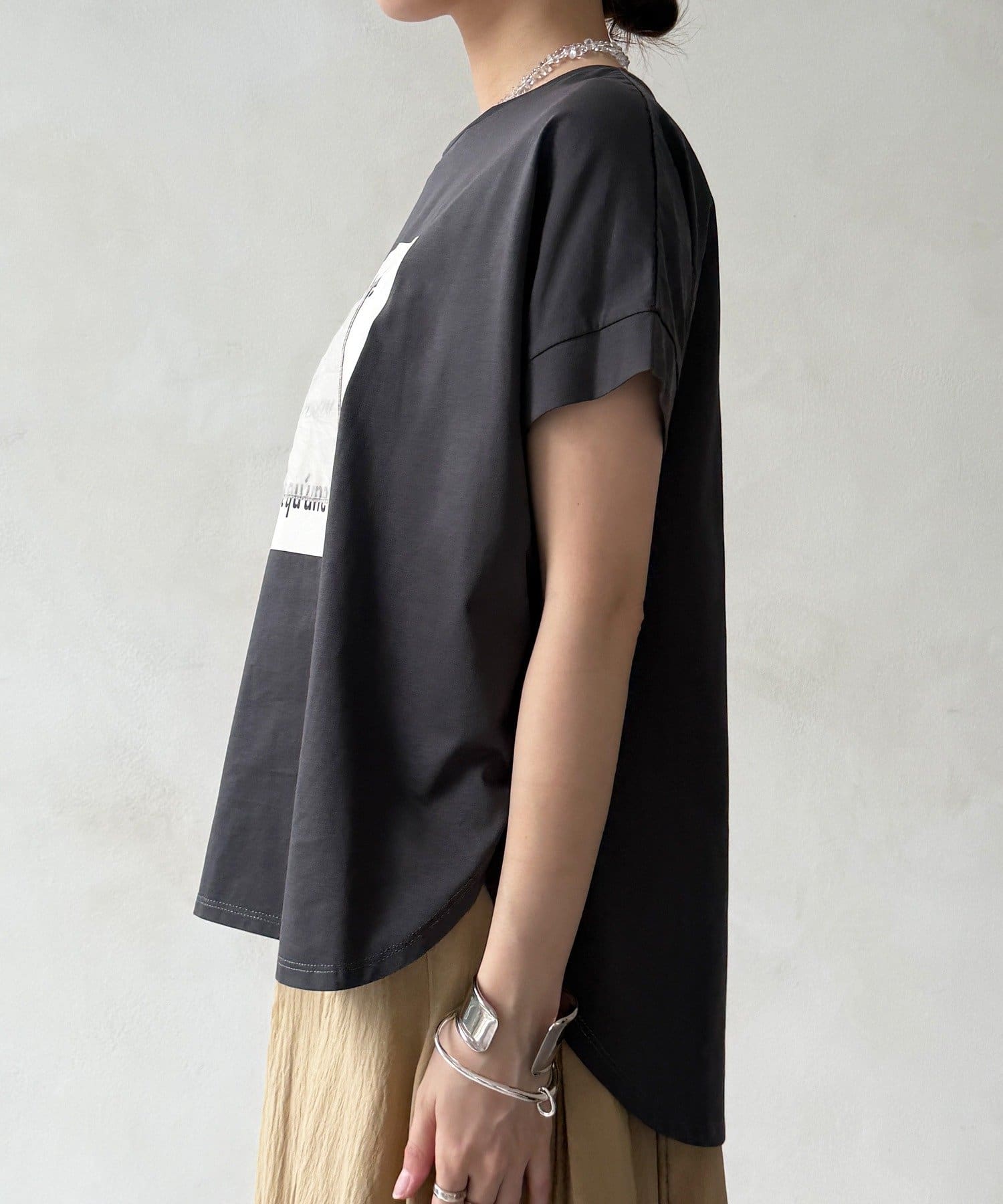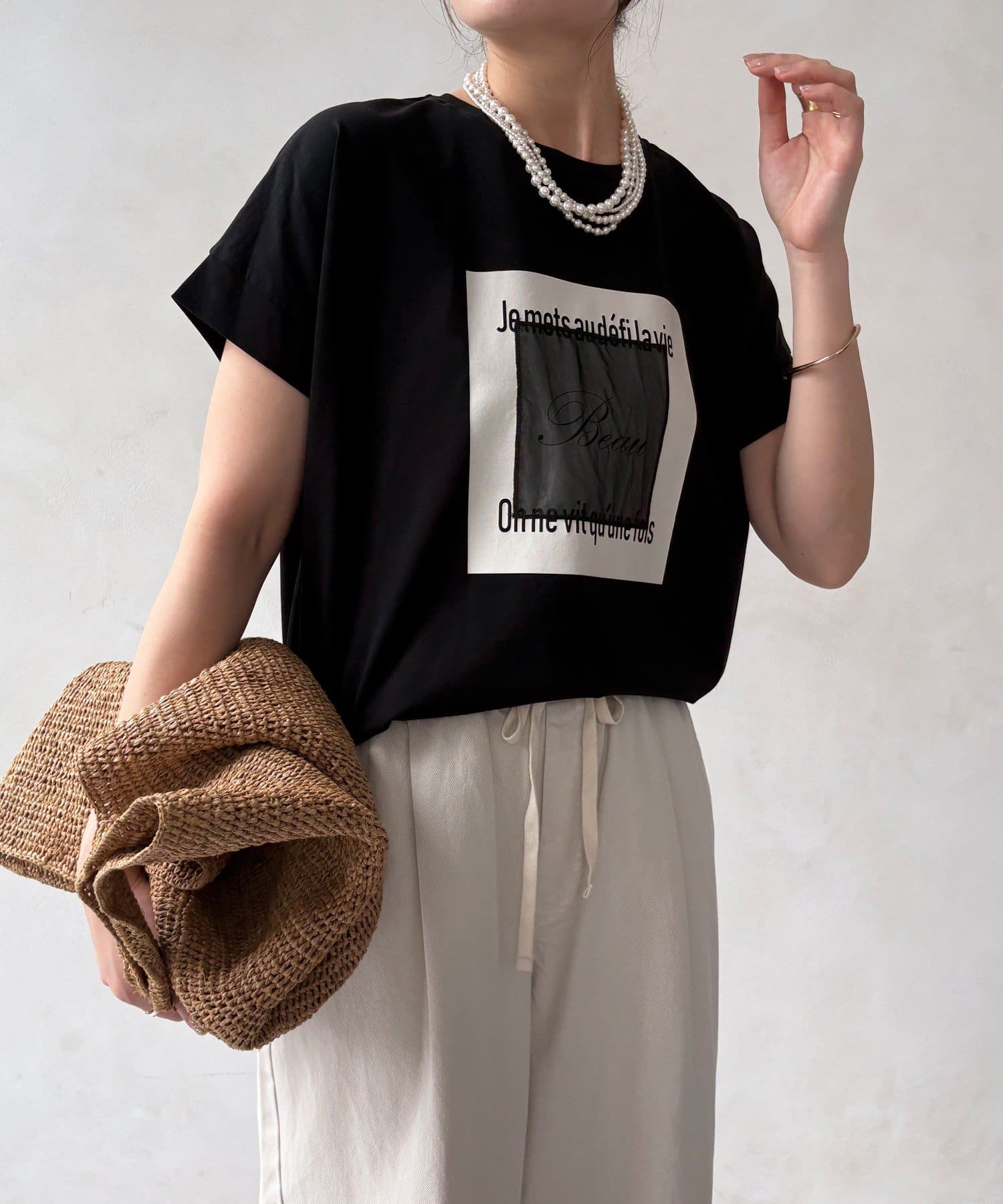 ほんのり透けるオーガンジー素材が印象的なロゴTEE。