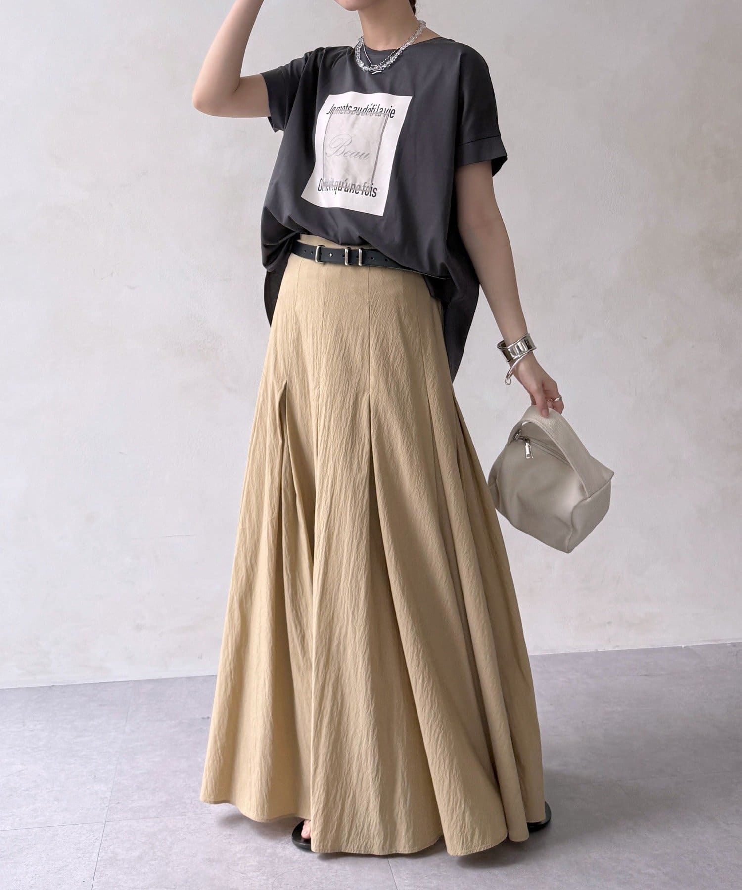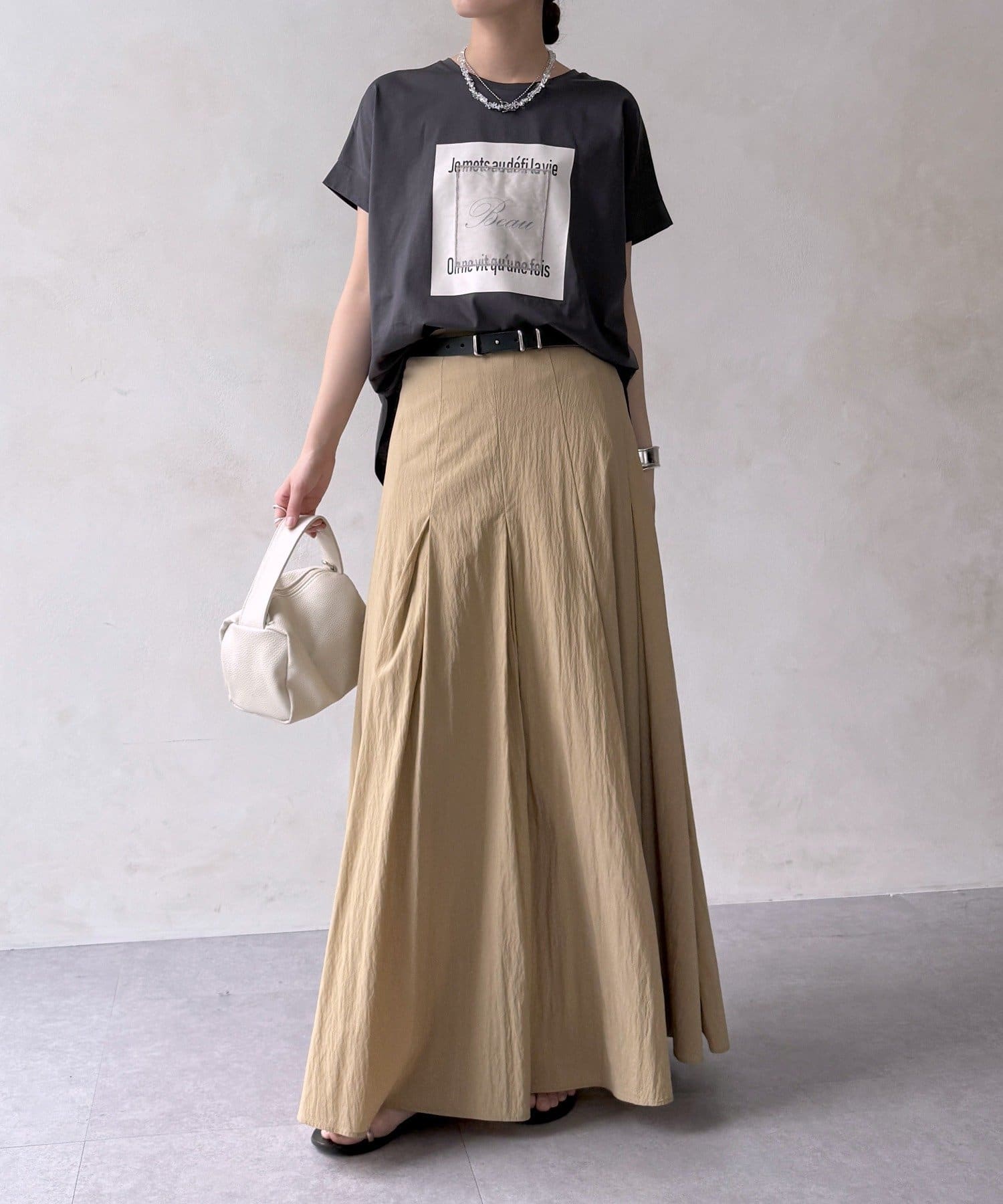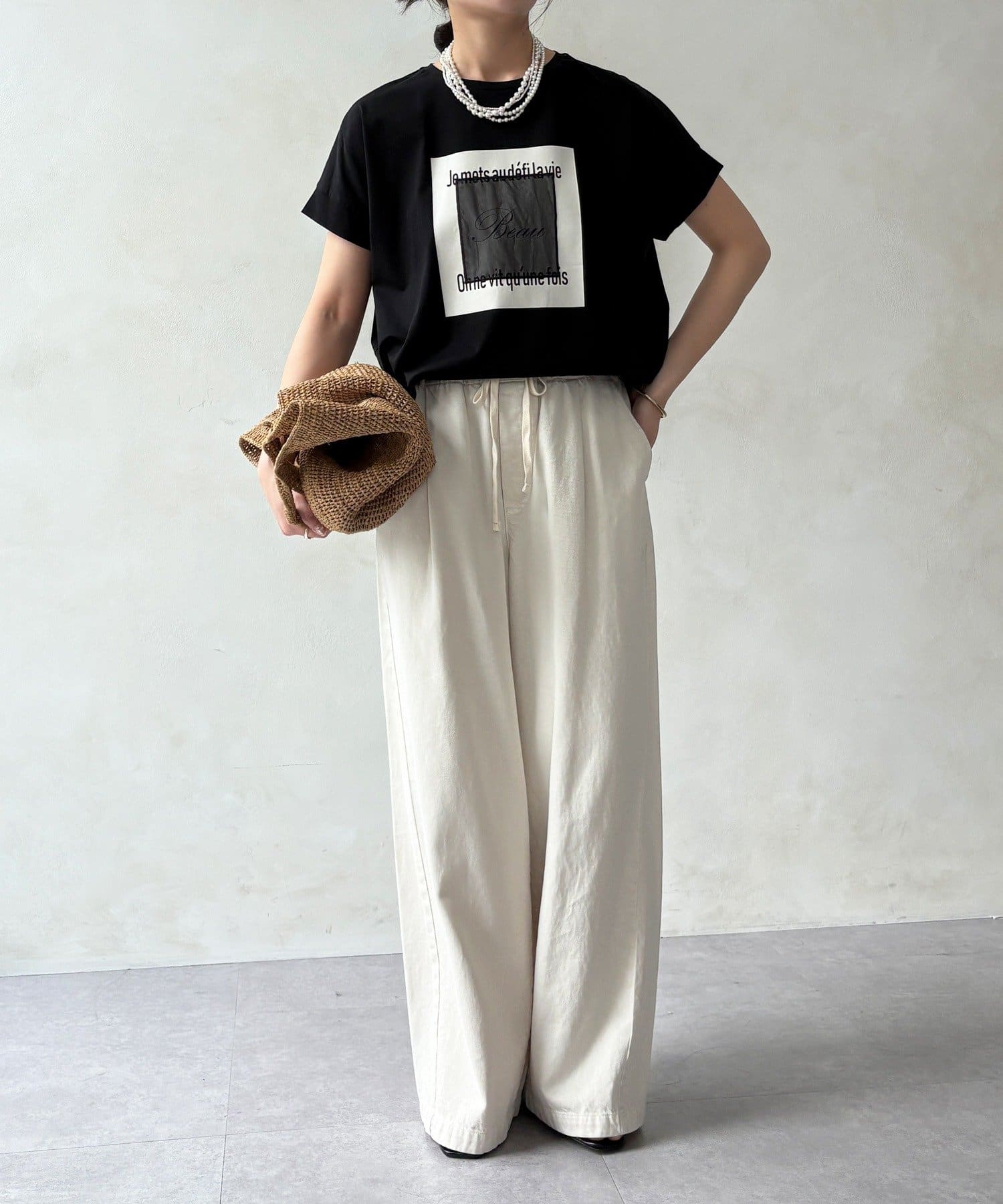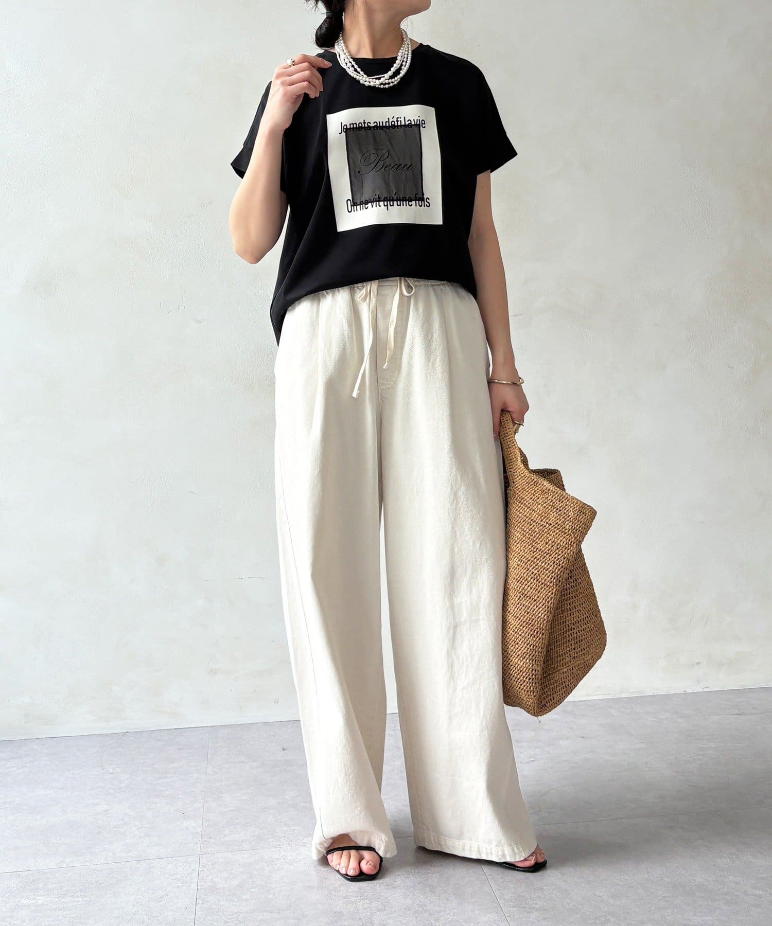ほんのり透けるオーガンジー素材が印象的なロゴTEE。