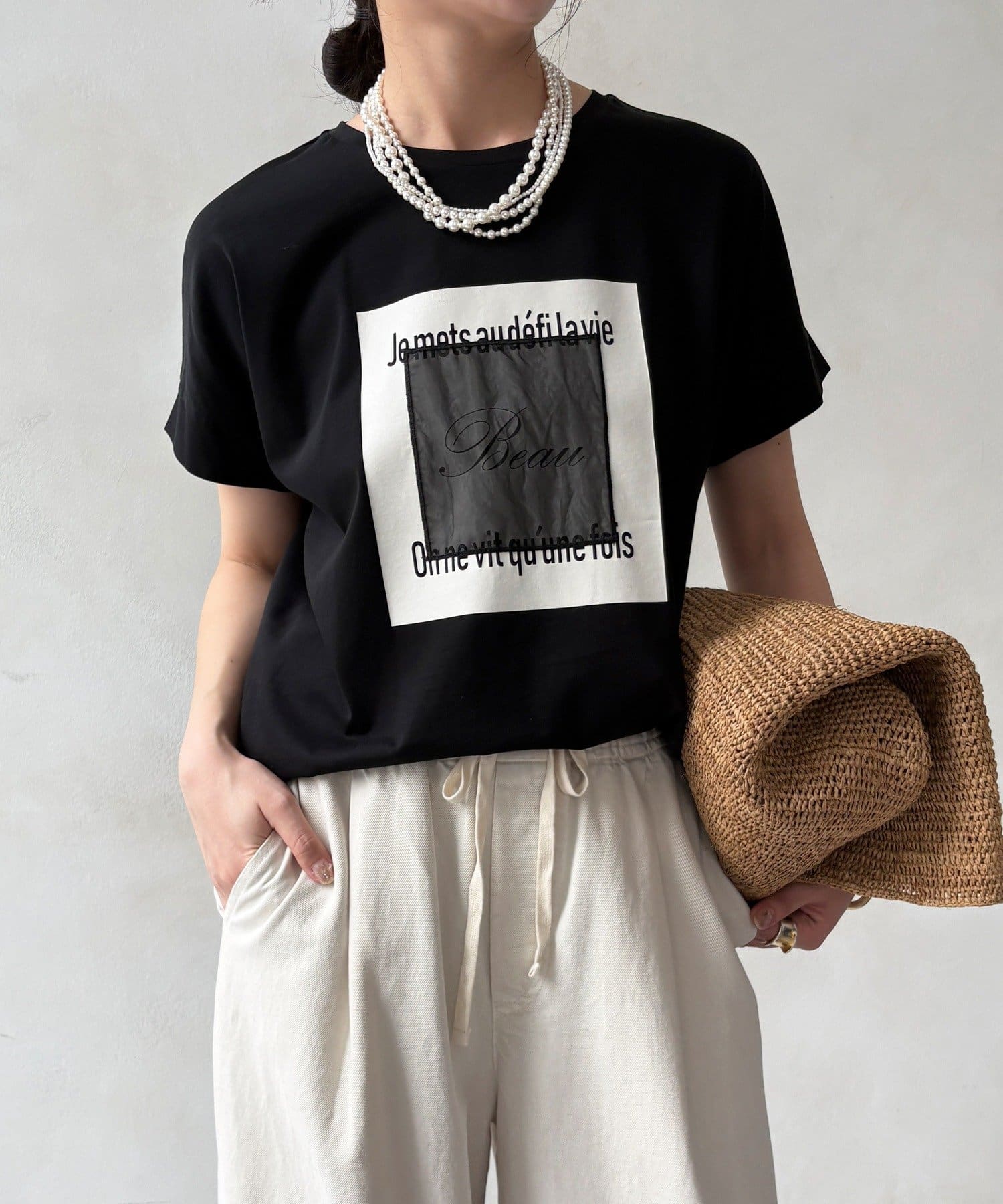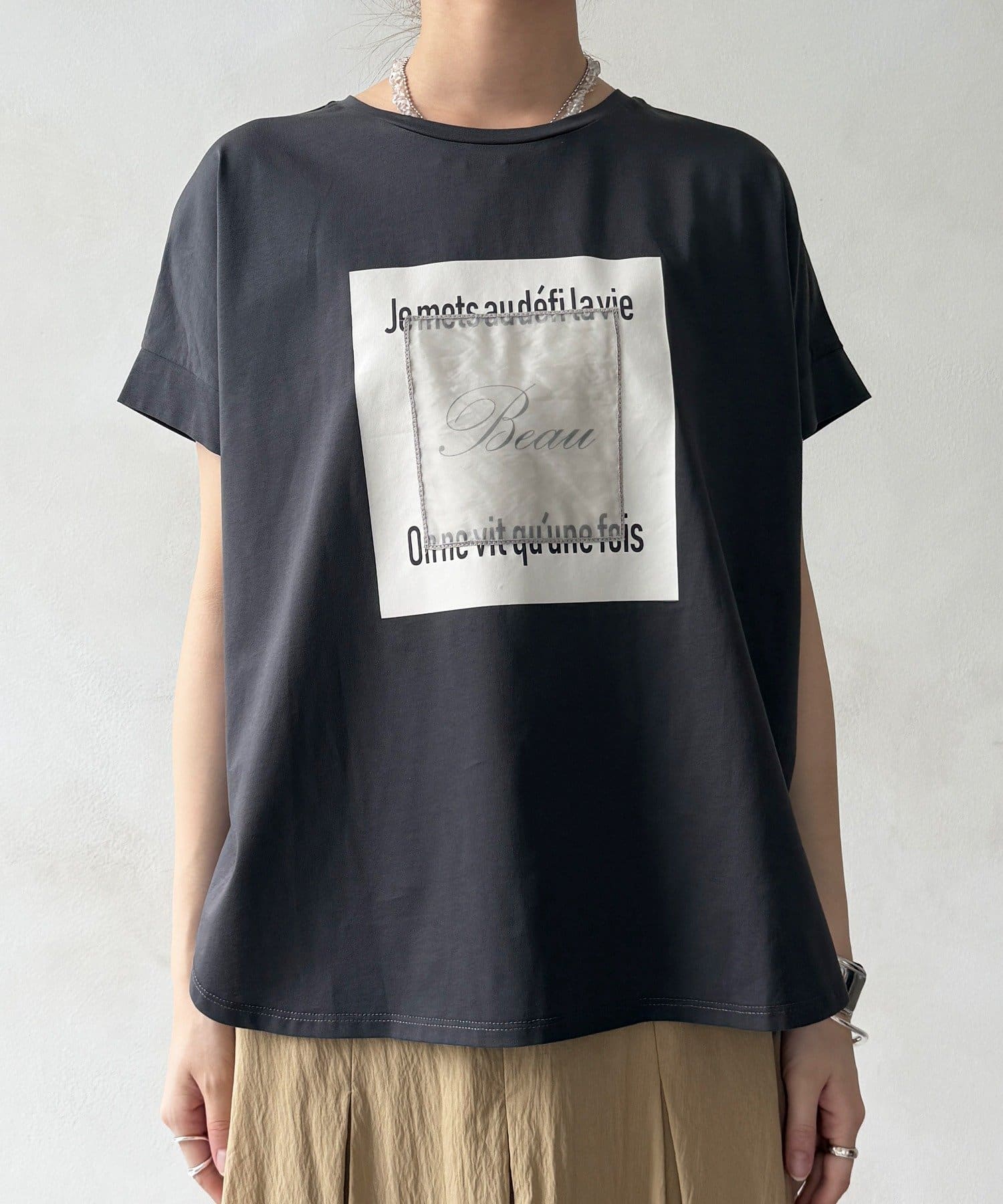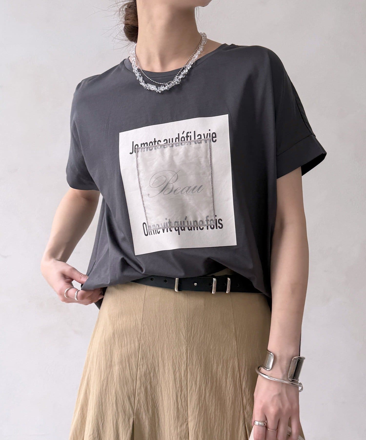 TOP > DOUDOU > レディース > トップス > Tシャツ/カットソー > 【WEB限定】BeauオーガンジーロゴTEE