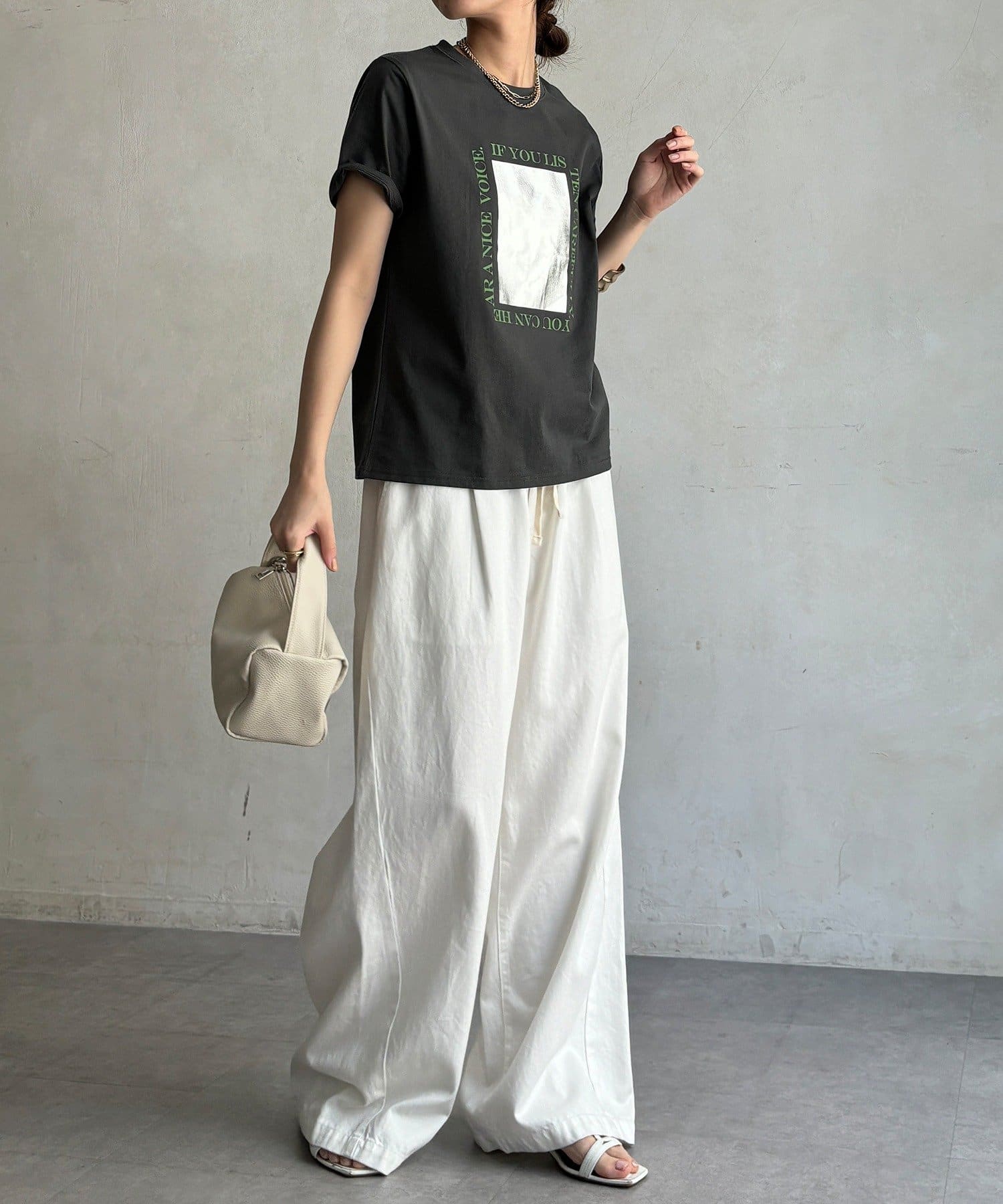 ・シンプルなボトムスと合わせるだけで手抜き感のないコーデに