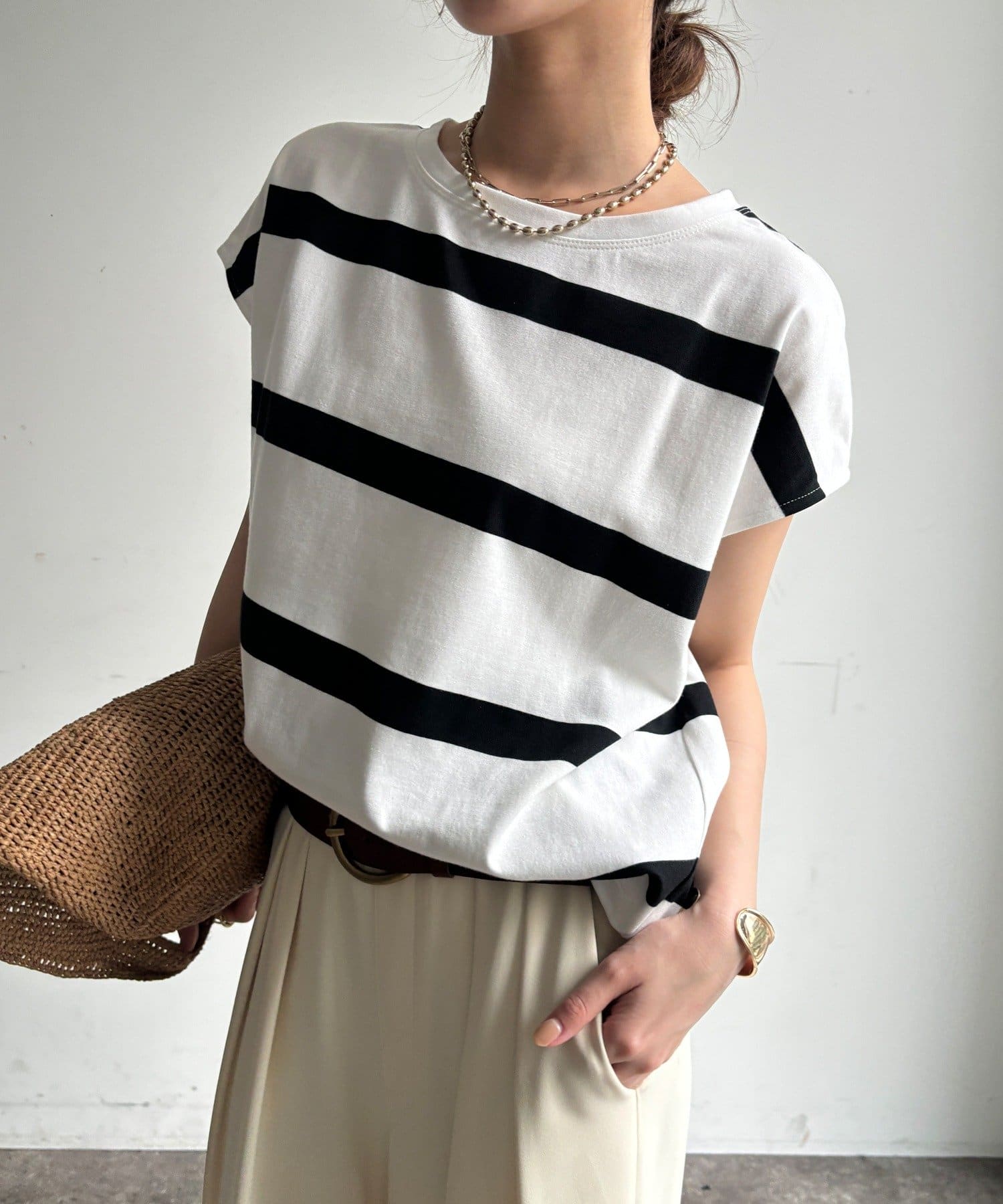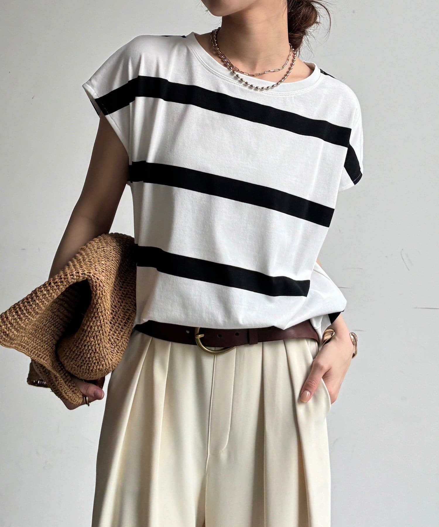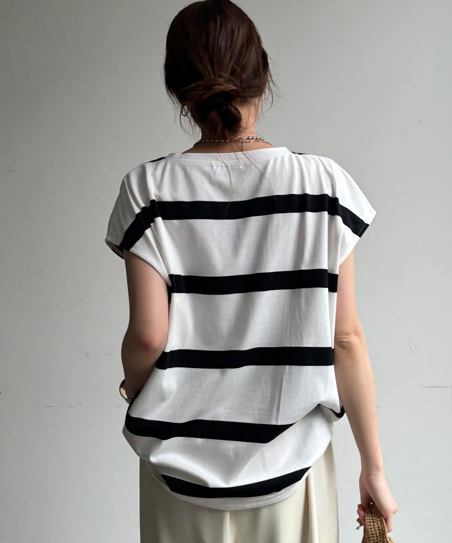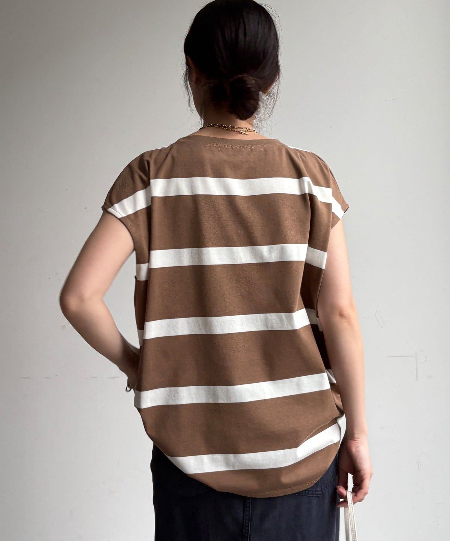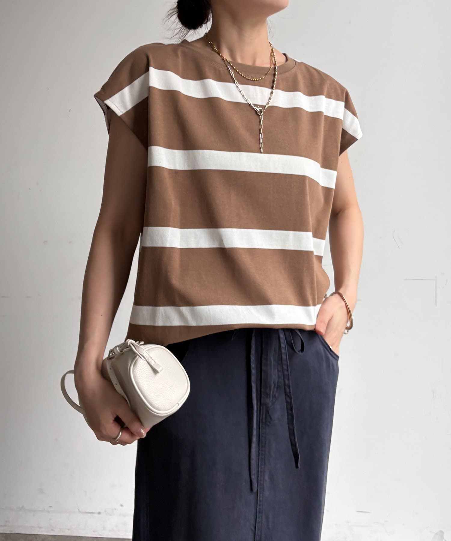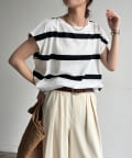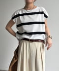 大人カジュアルに映えるボーダーフレンチスリーブTEE