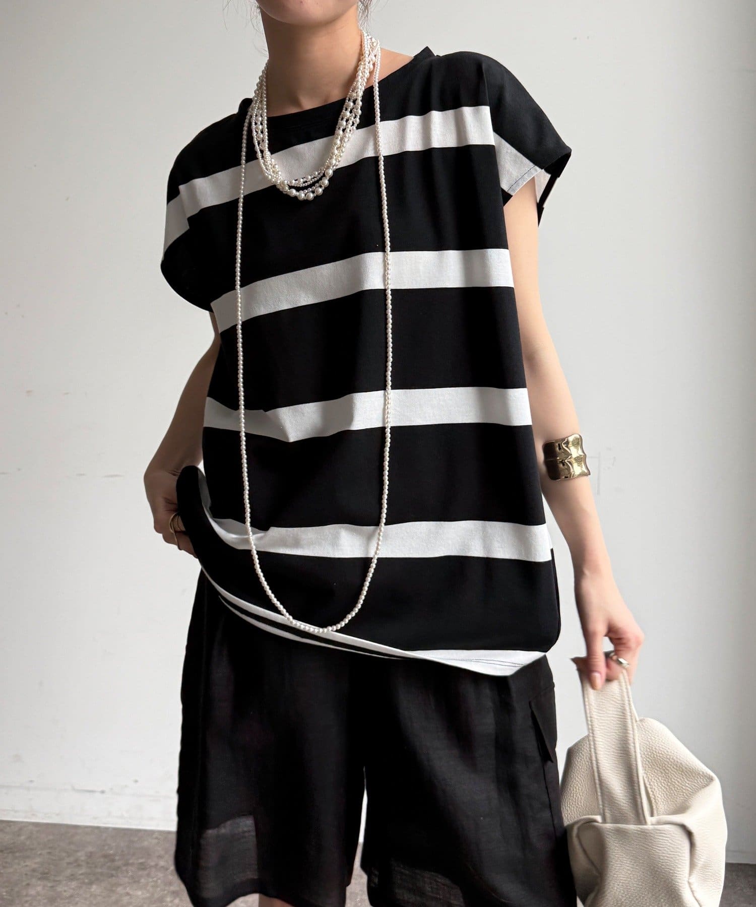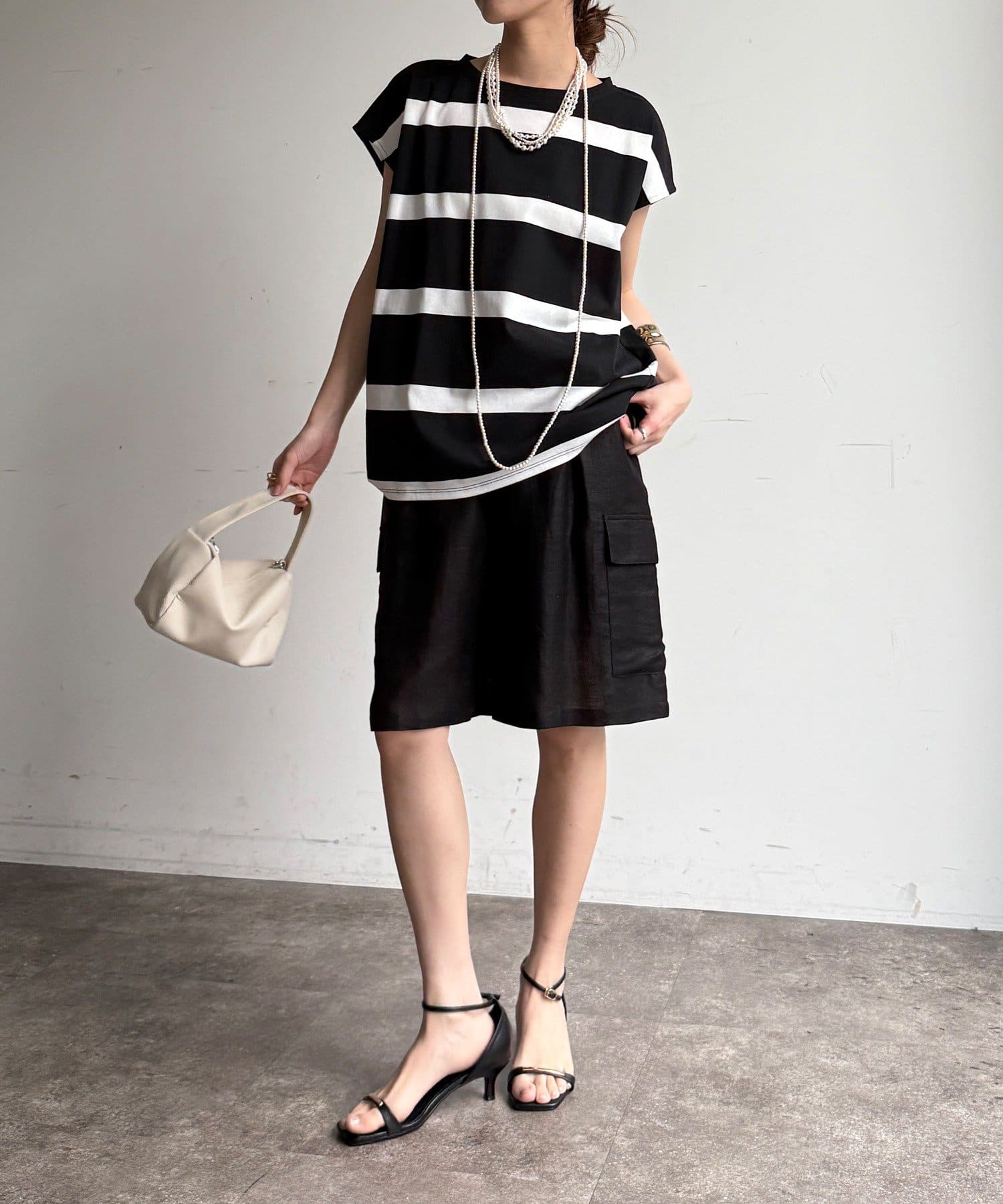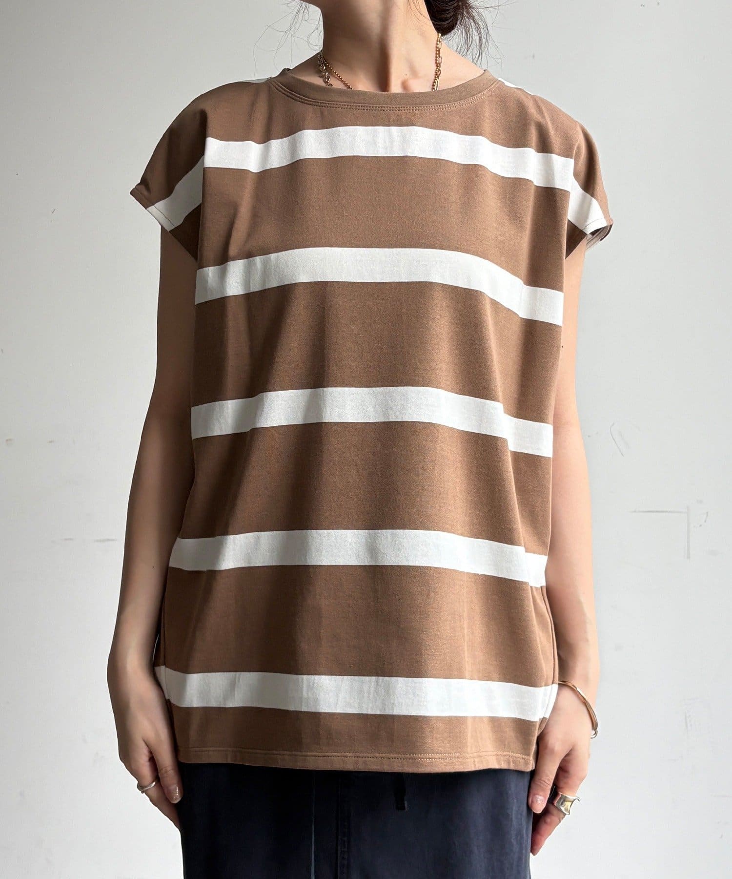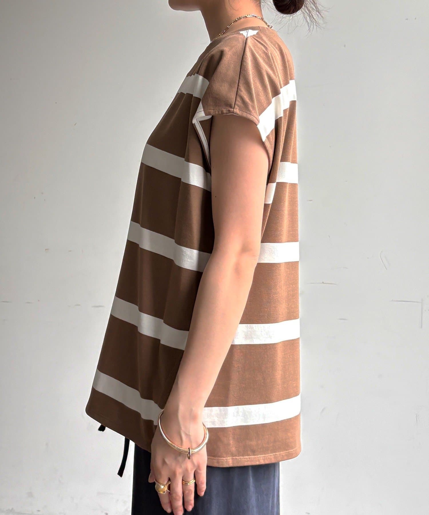 大人カジュアルに映えるボーダーフレンチスリーブTEE