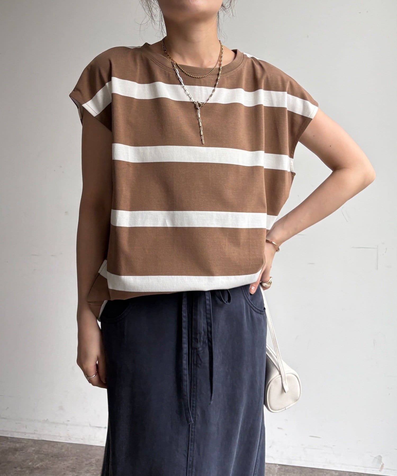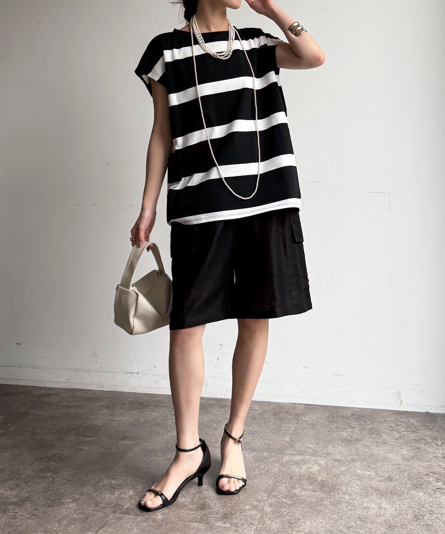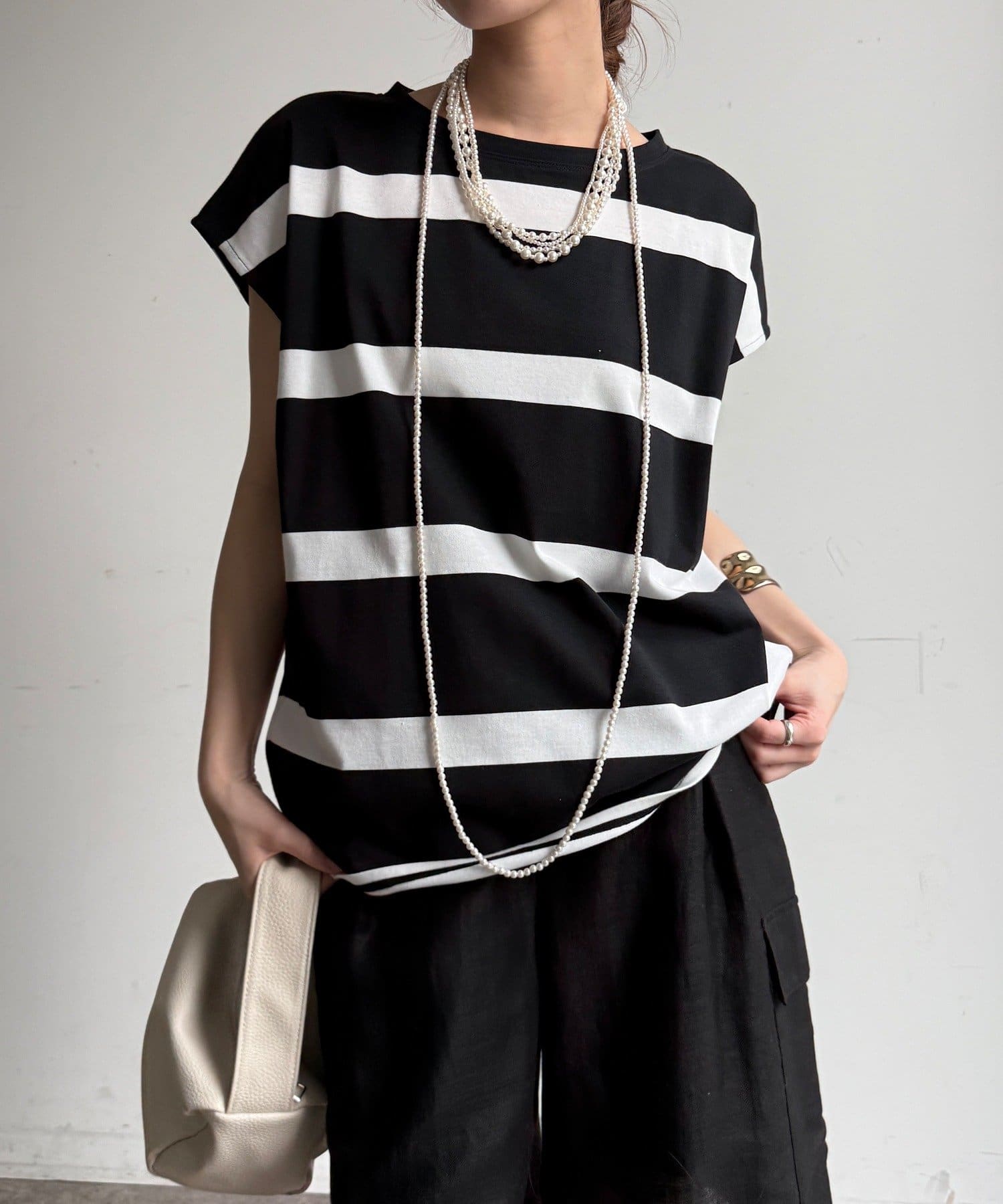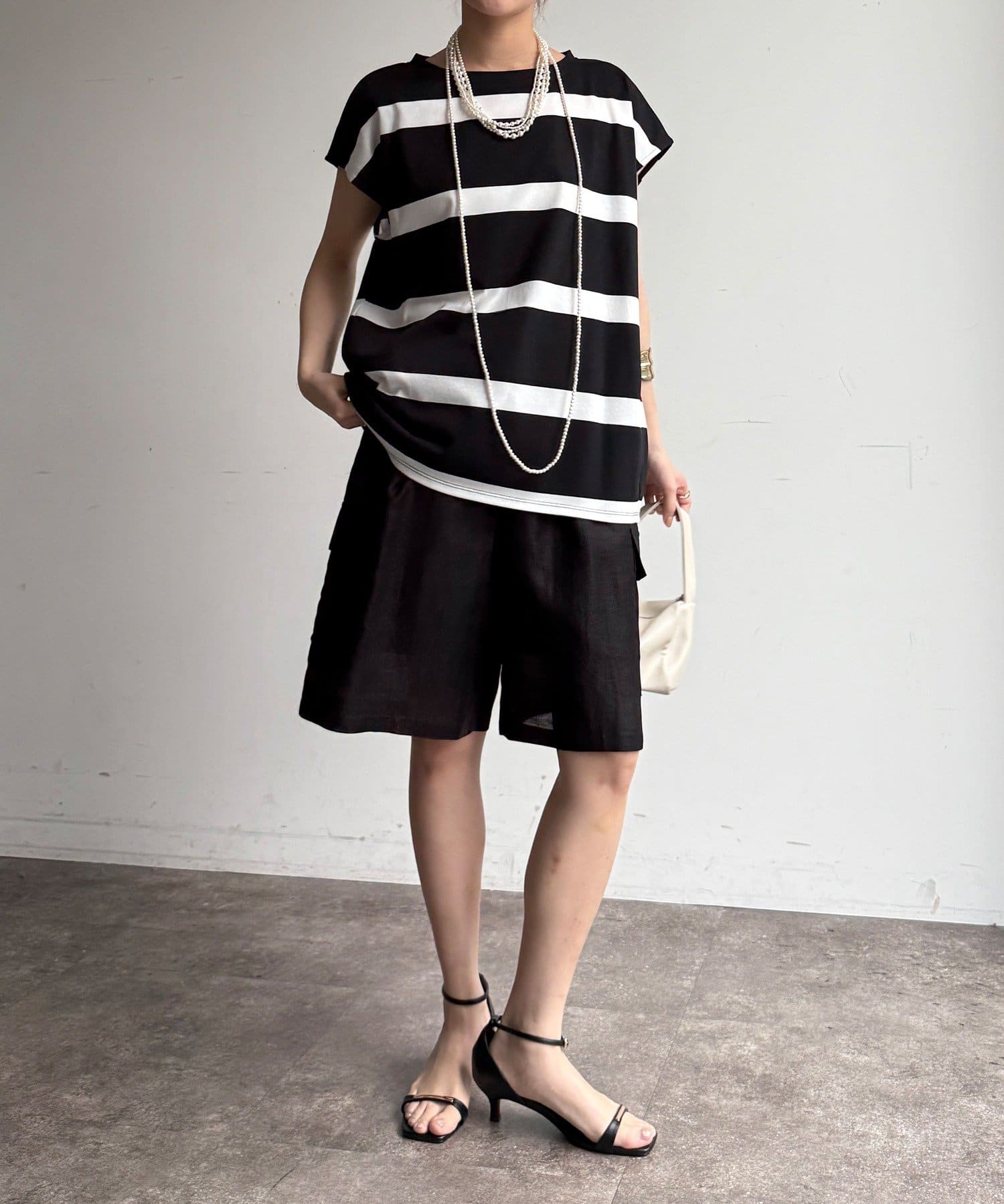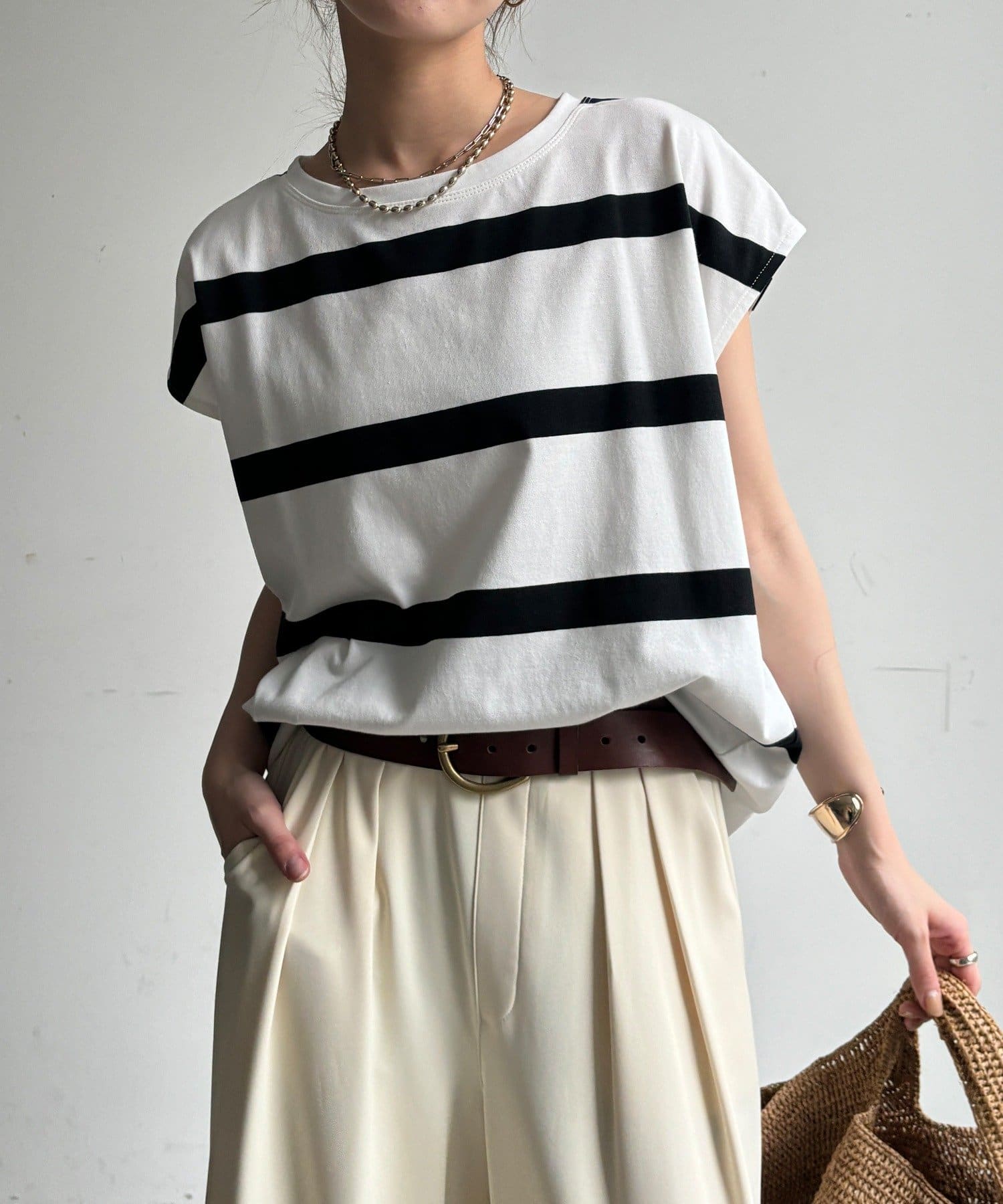 大人カジュアルに映えるボーダーフレンチスリーブTEE