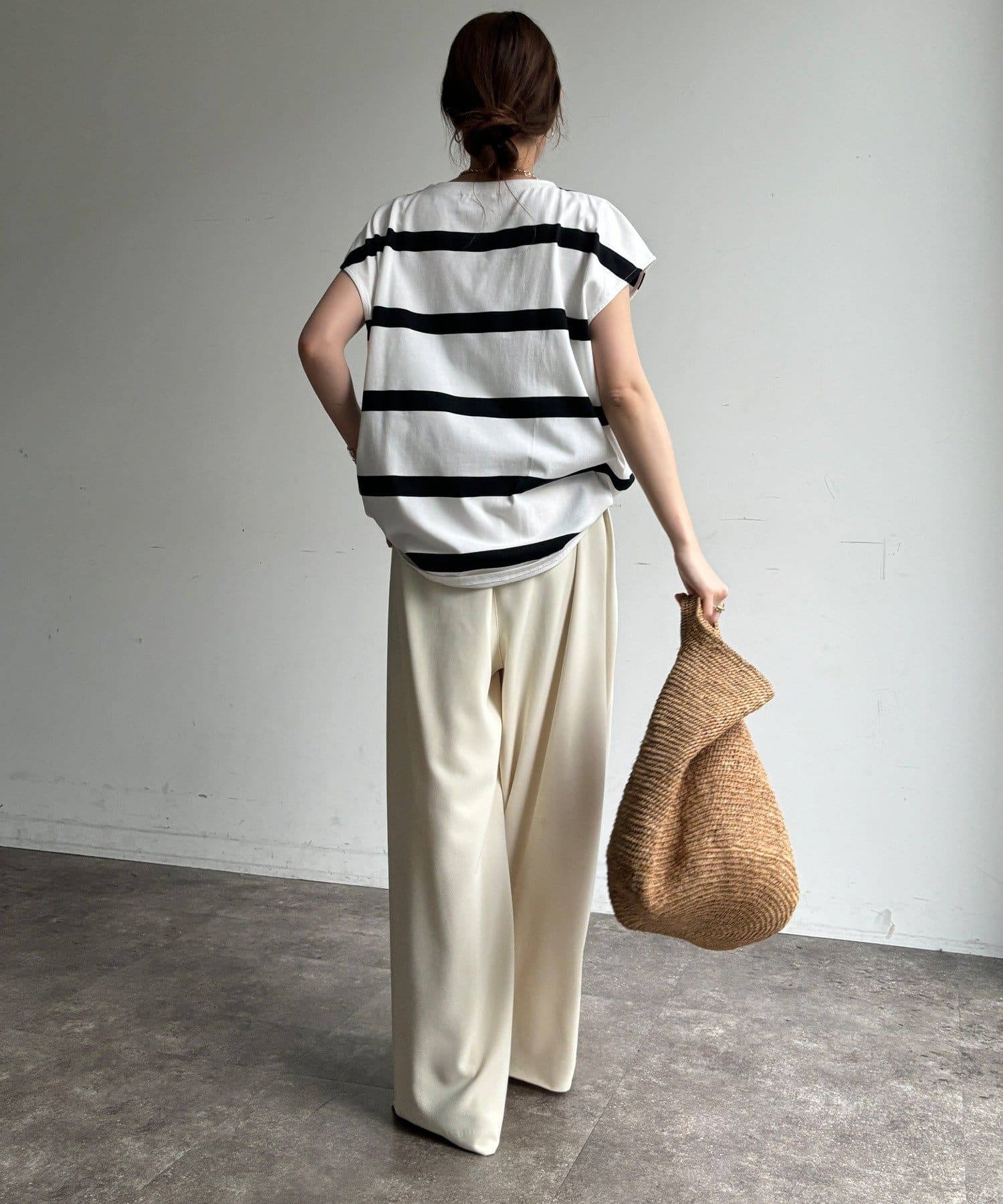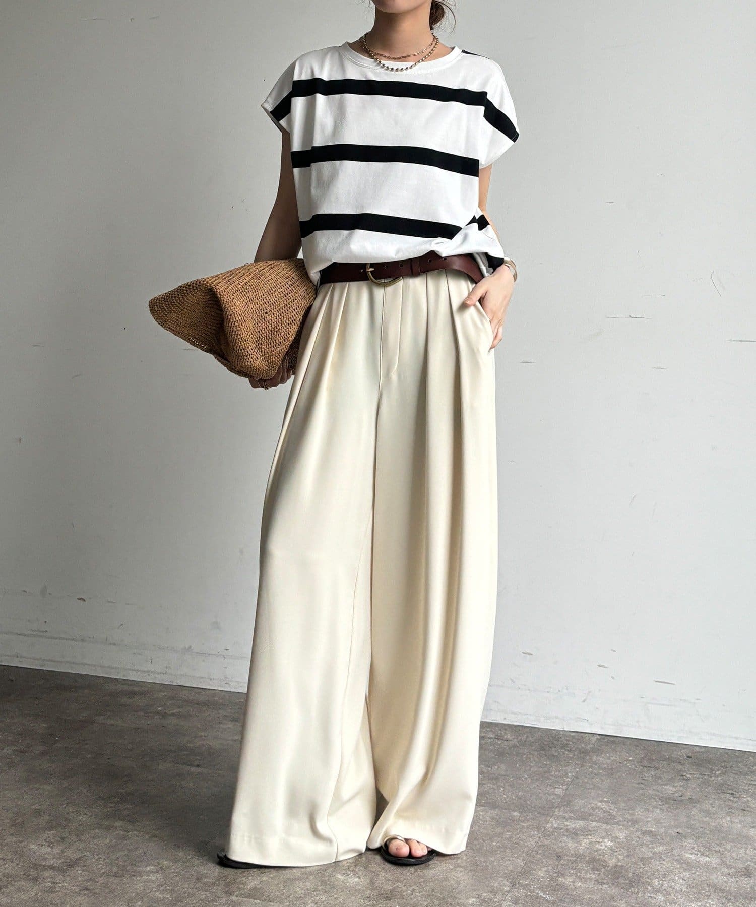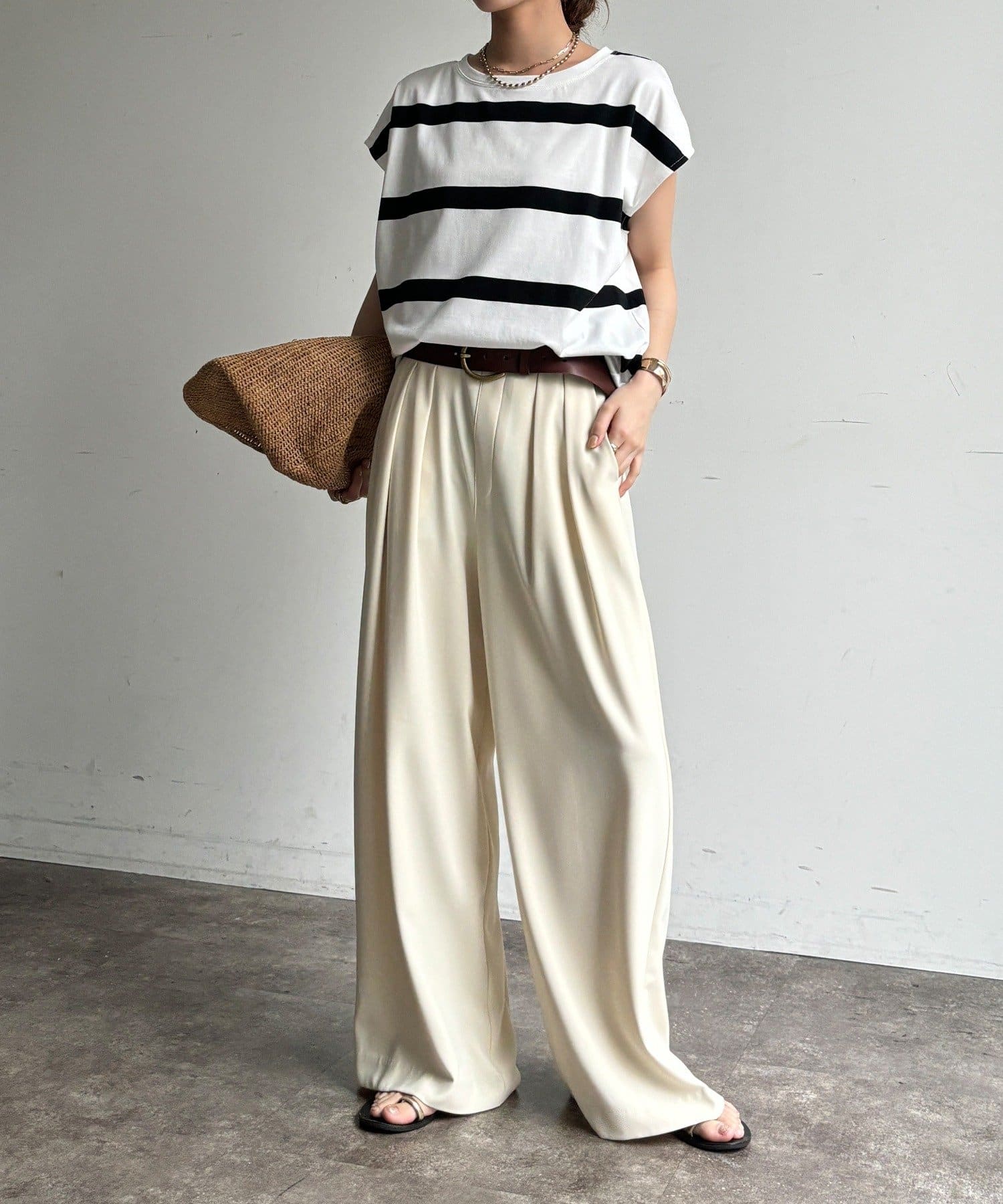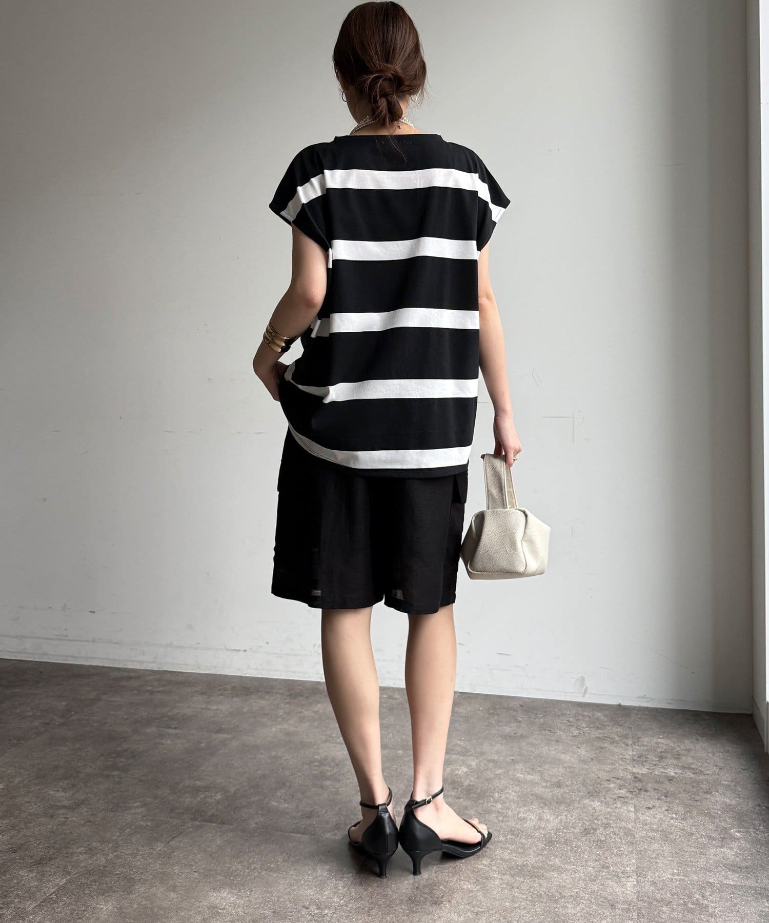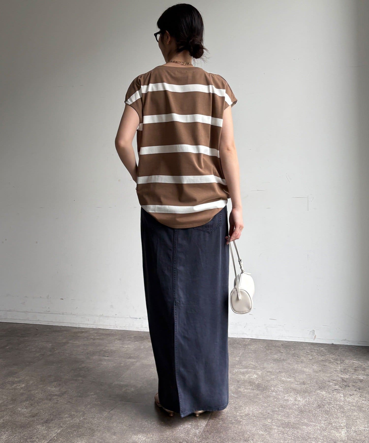 大人カジュアルに映えるボーダーフレンチスリーブTEE