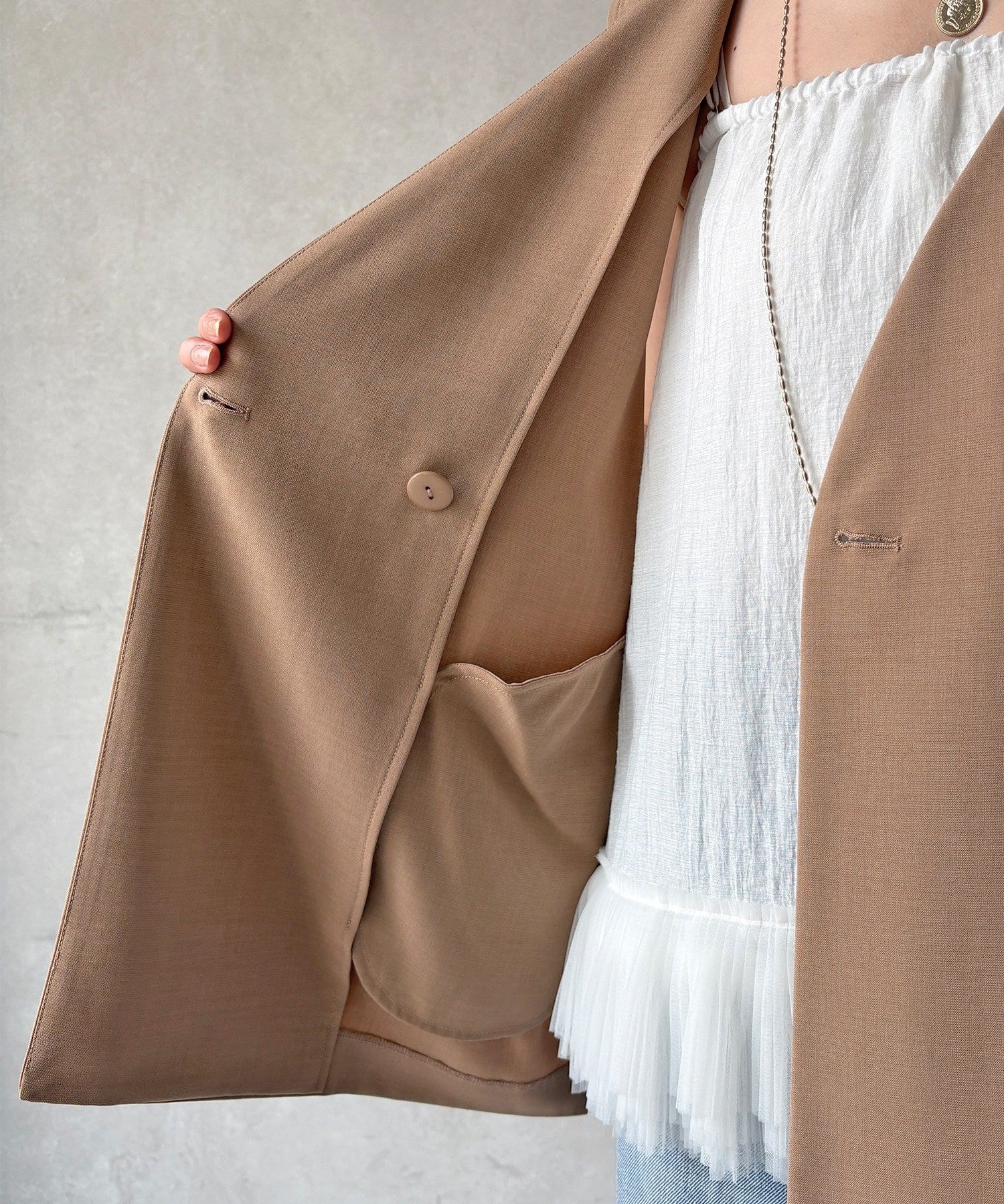 羽織るだけで洗練された印象を引き立てる一着。