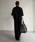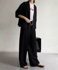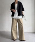 同素材のパンツと合わせれば、統一感のあるセットアップスタイルが完成。