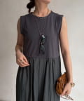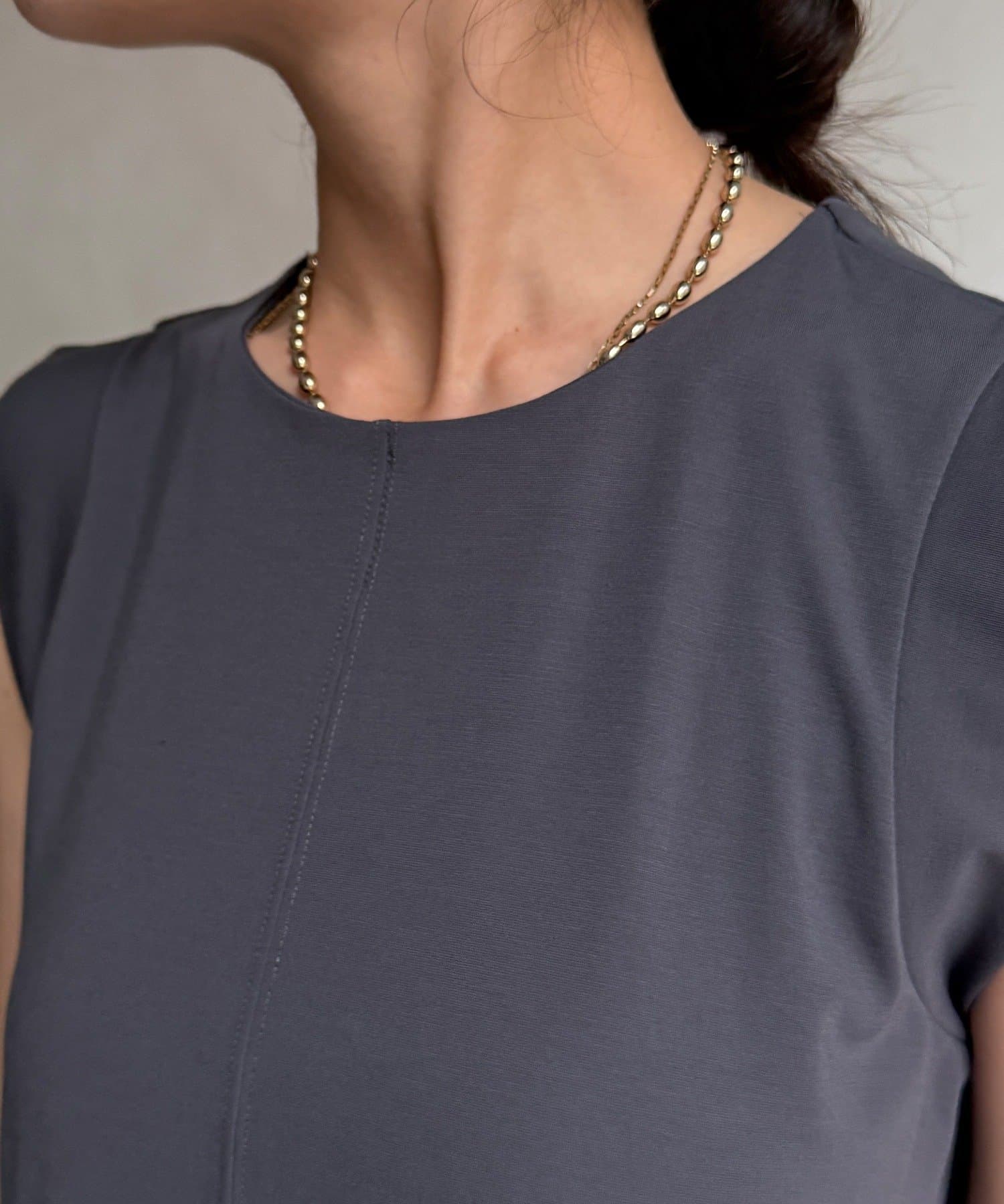 トップス部分は伸縮性のある素材で、パンツ部分はハリとシャリ感のある素材を採用。