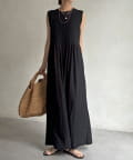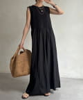 たっぷりとギャザーを寄せたワイドシルエットが体系を拾わずエレガントに広がります。