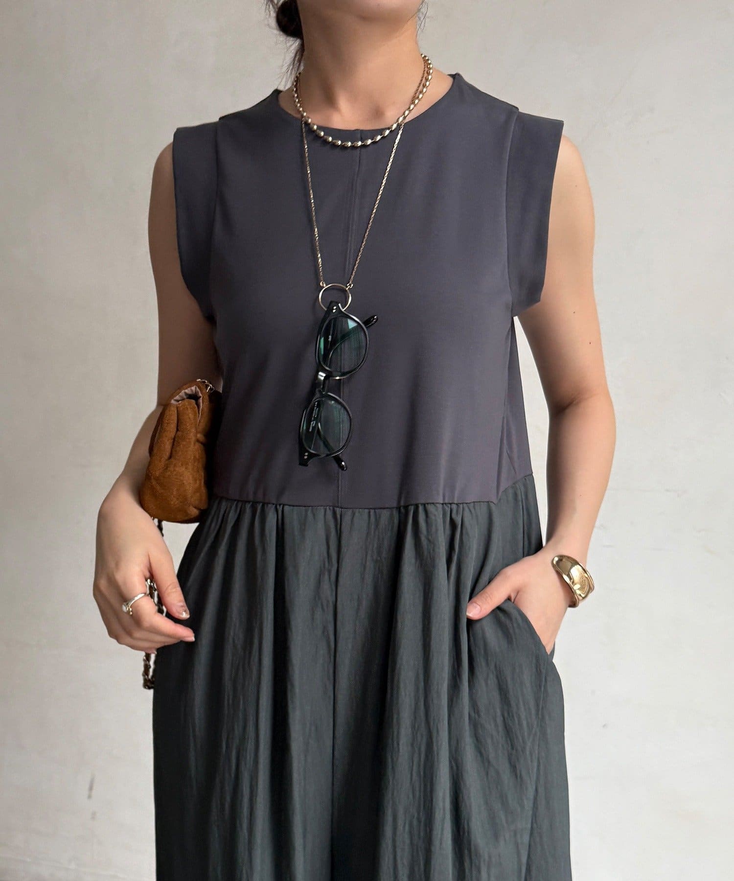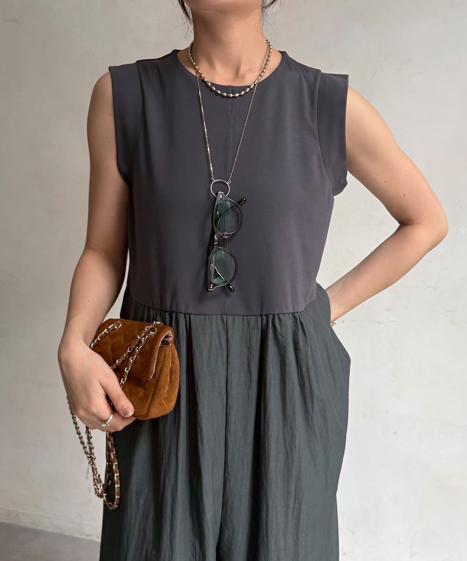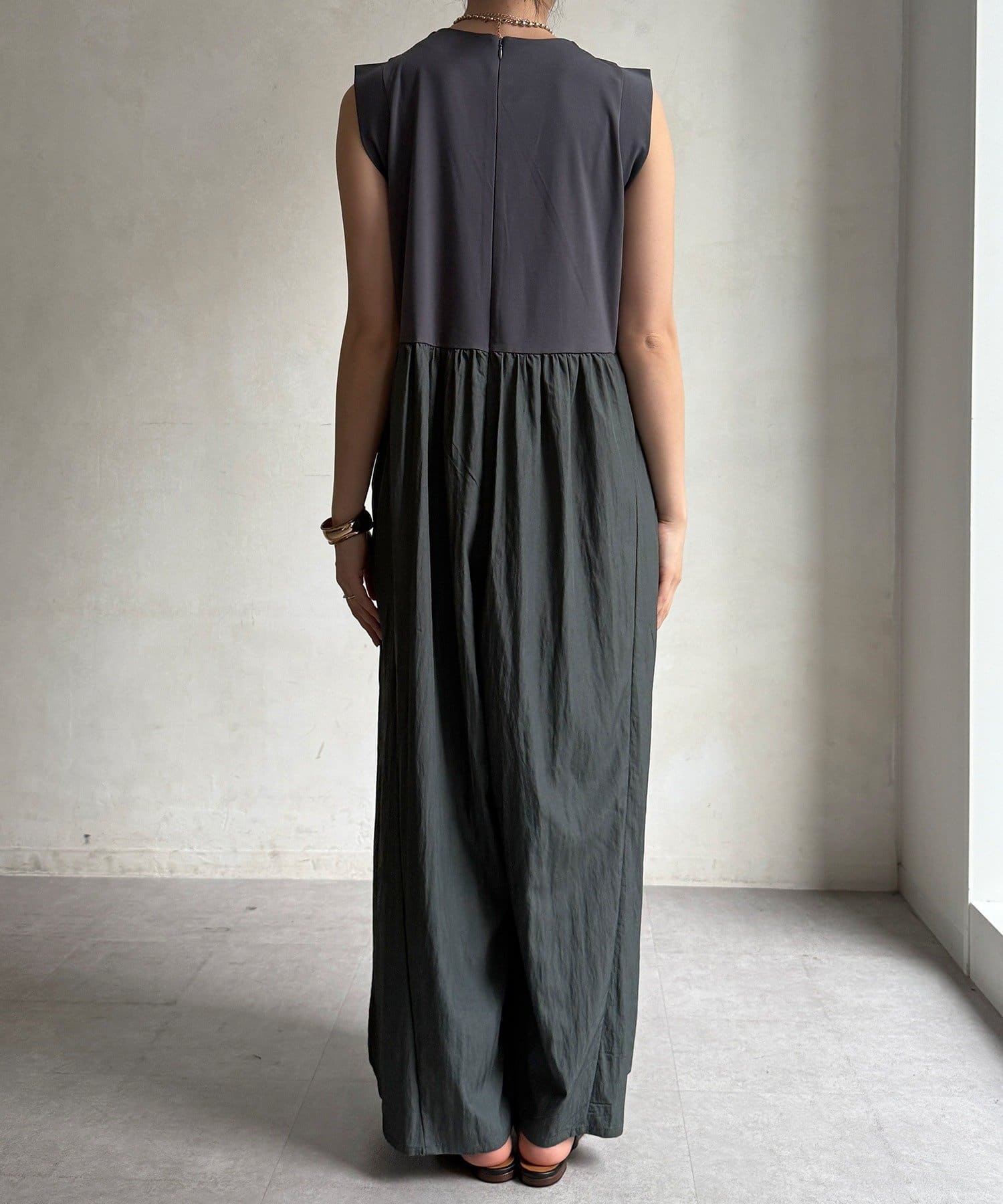 上下を異素材で切り替えたデザイン性のあるドッキングサロペットが登場。