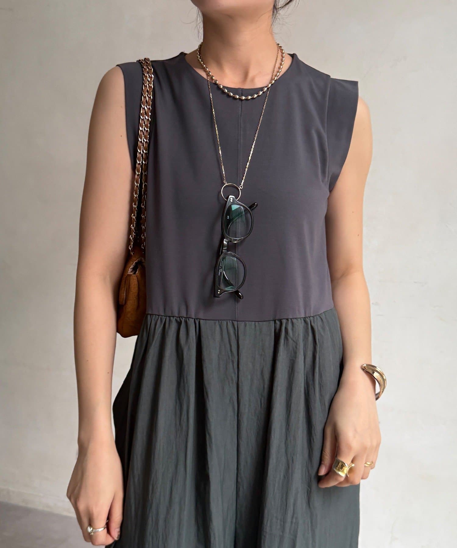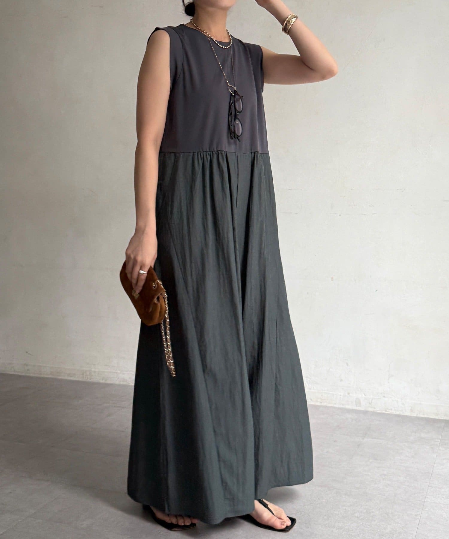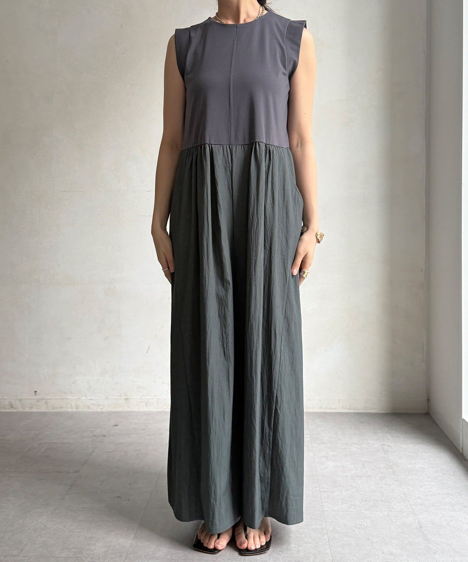 上下を異素材で切り替えたデザイン性のあるドッキングサロペットが登場。