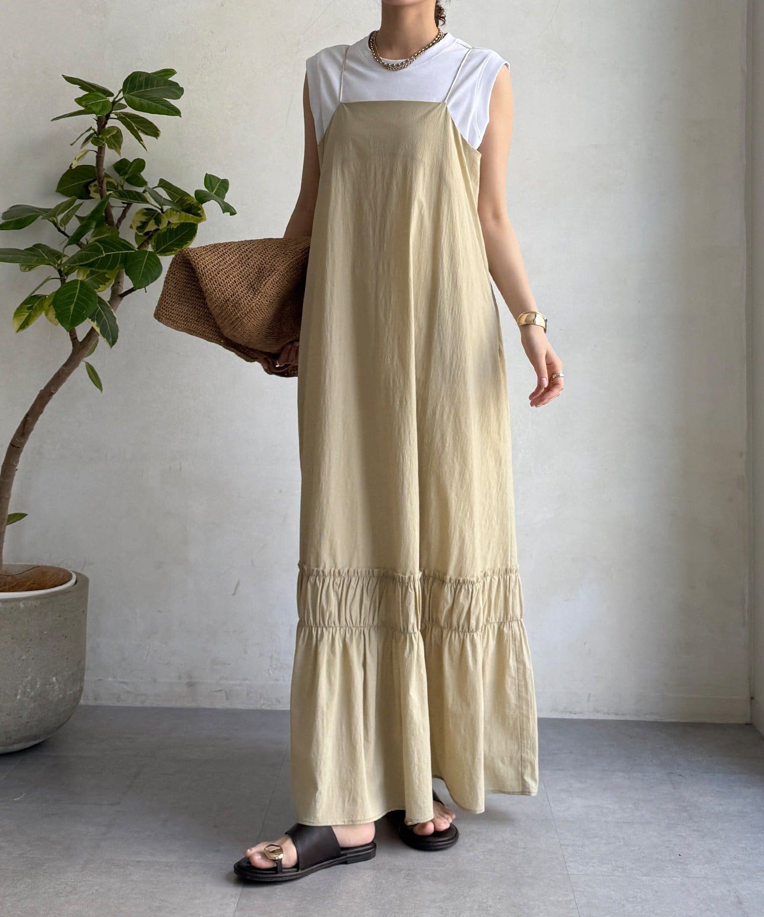 【インフルエンサー SAKURA企画】裾ギャザー切替キャミワンピース