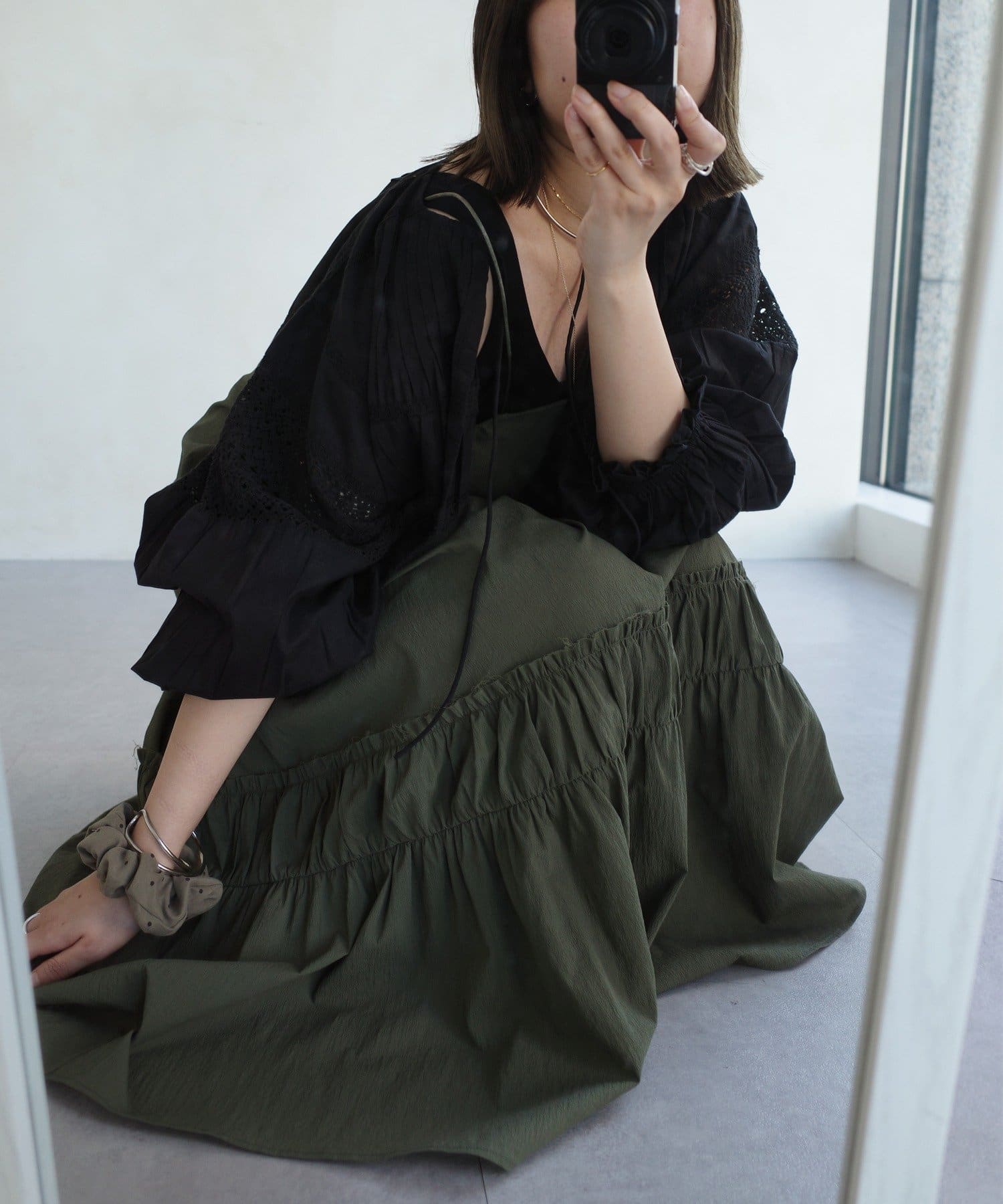 • DOUDOU(ドゥドゥ) 【インフルエンサー SAKURA企画】裾ギャザー切替キャミワンピース