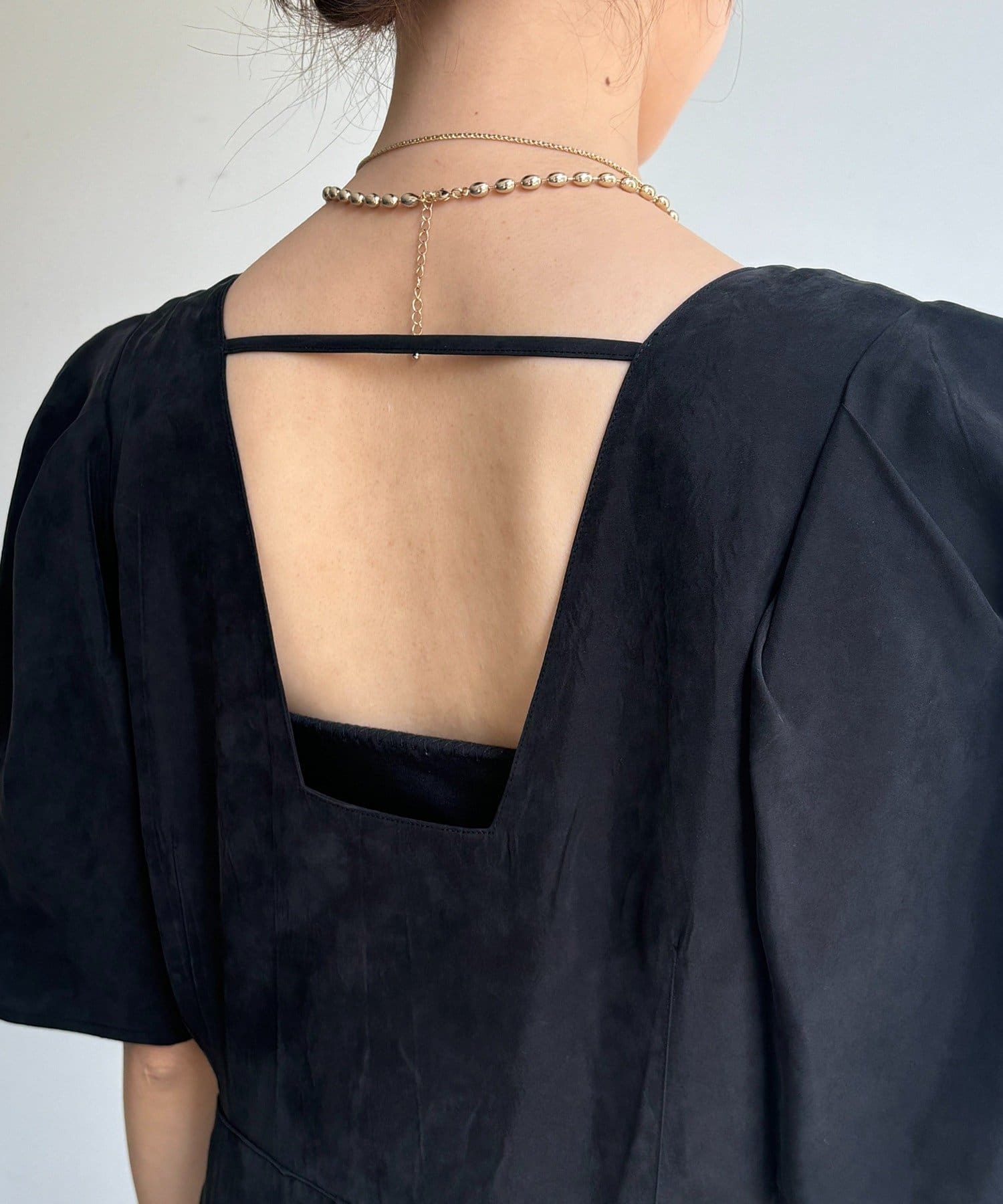 デザインのポイントは、女性らしさを引き立てる深めのVネックライン。