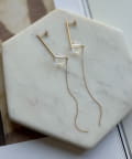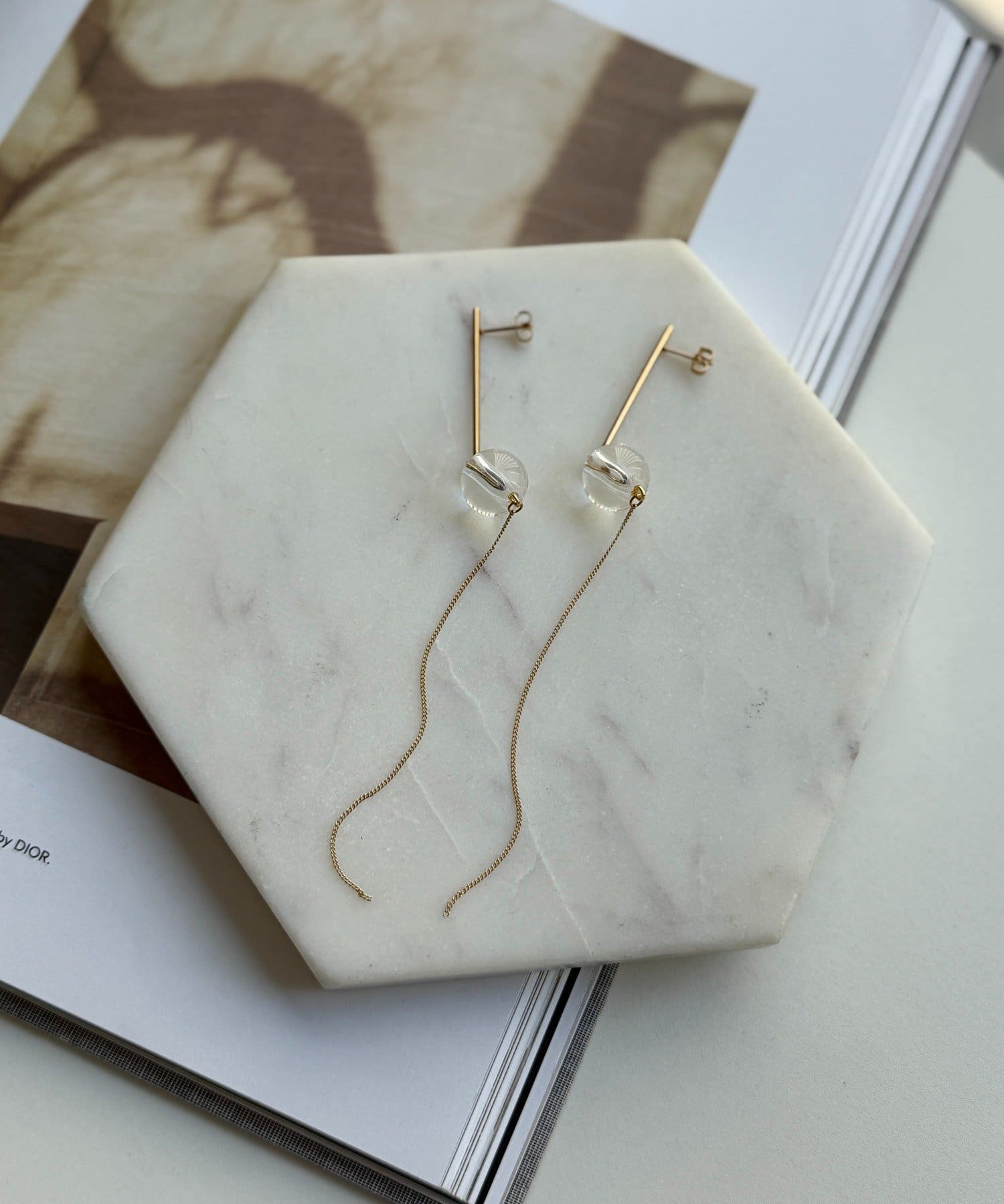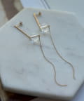 繊細なラインと透明感のあるモチーフが印象的なロングピアス。