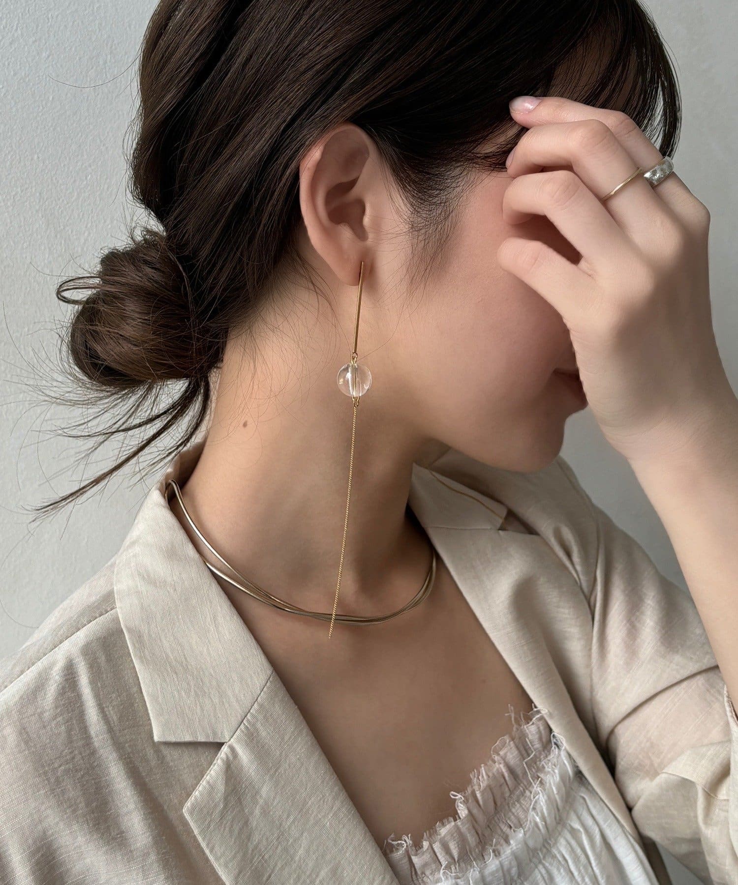 耳元からすっと縦に落ちる華奢なシルエットが、顔まわりをすっきりと見せ、女性らしい抜け感を演出します。シ