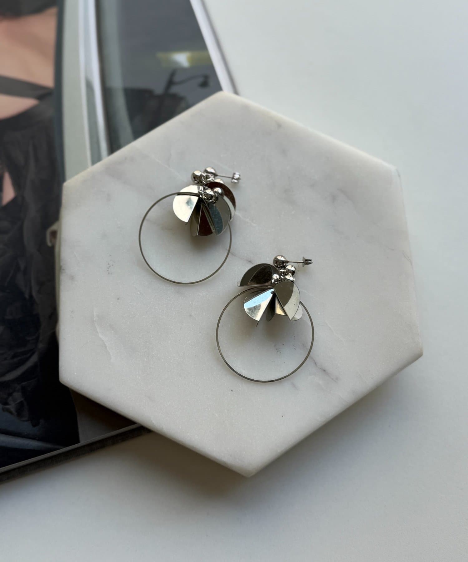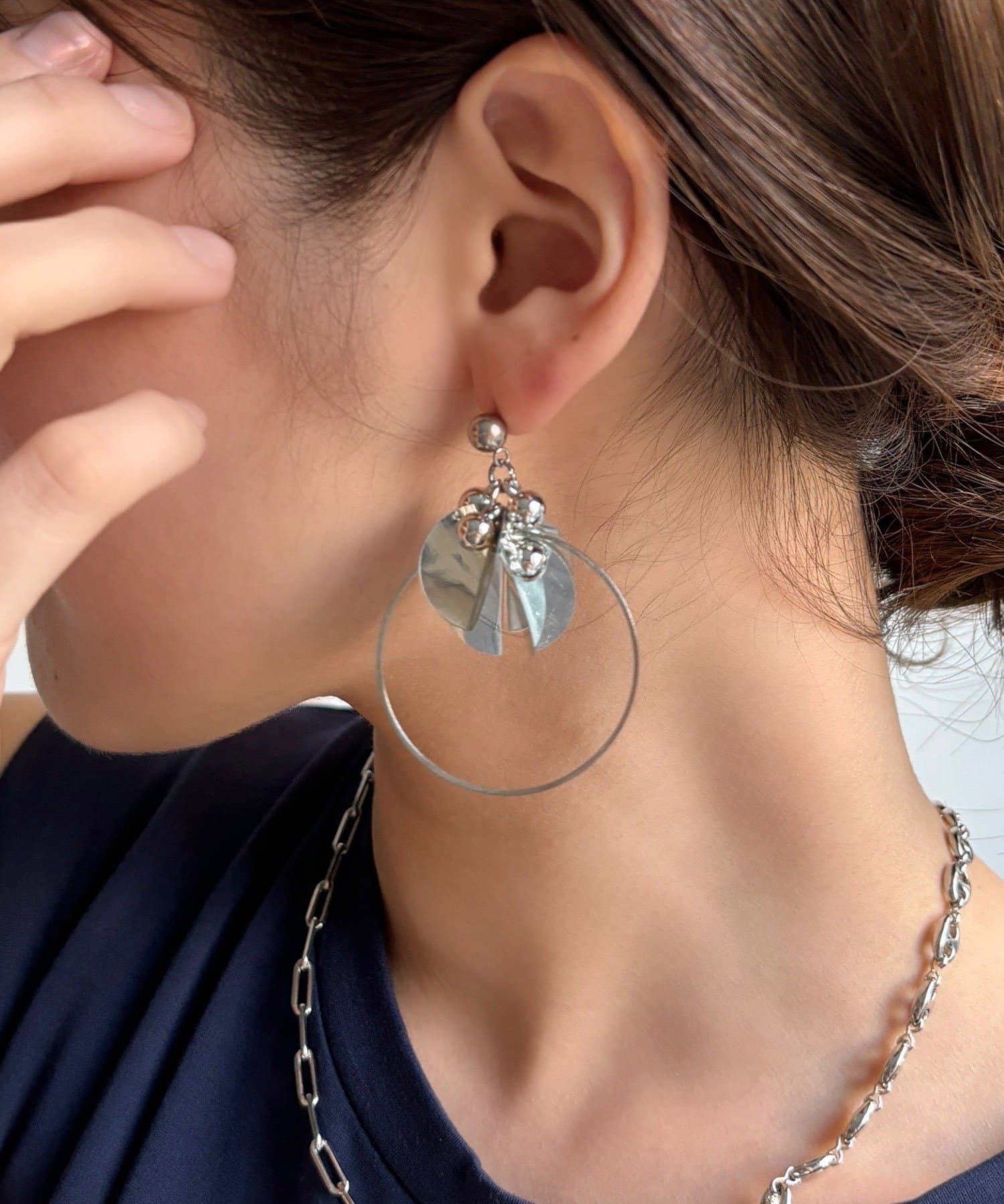 軽やかなフープに、動くたびに揺れるメタルモチーフを組み合わせたデザインが、耳元に印象的なアクセントをプラスしてくれるアイテムです。