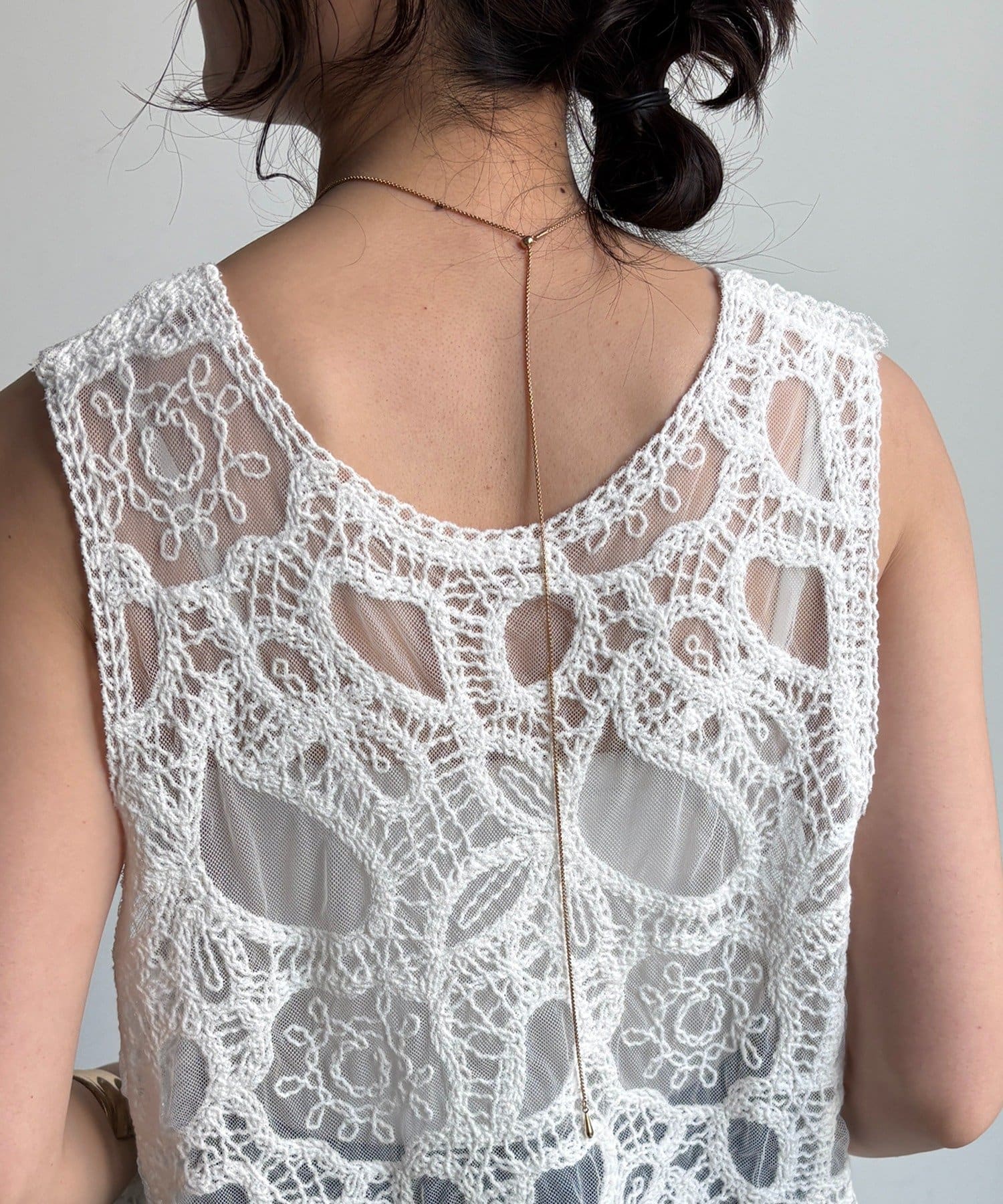華奢なチェーンは肌になじみやすく、女性らしいやわらかな印象に。