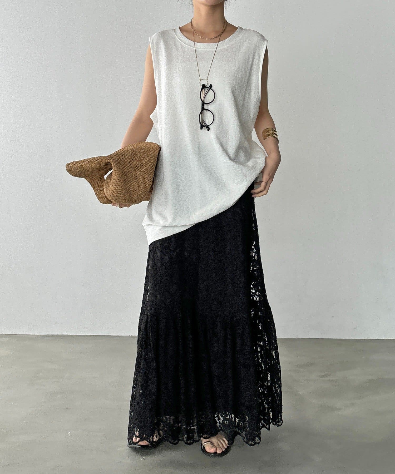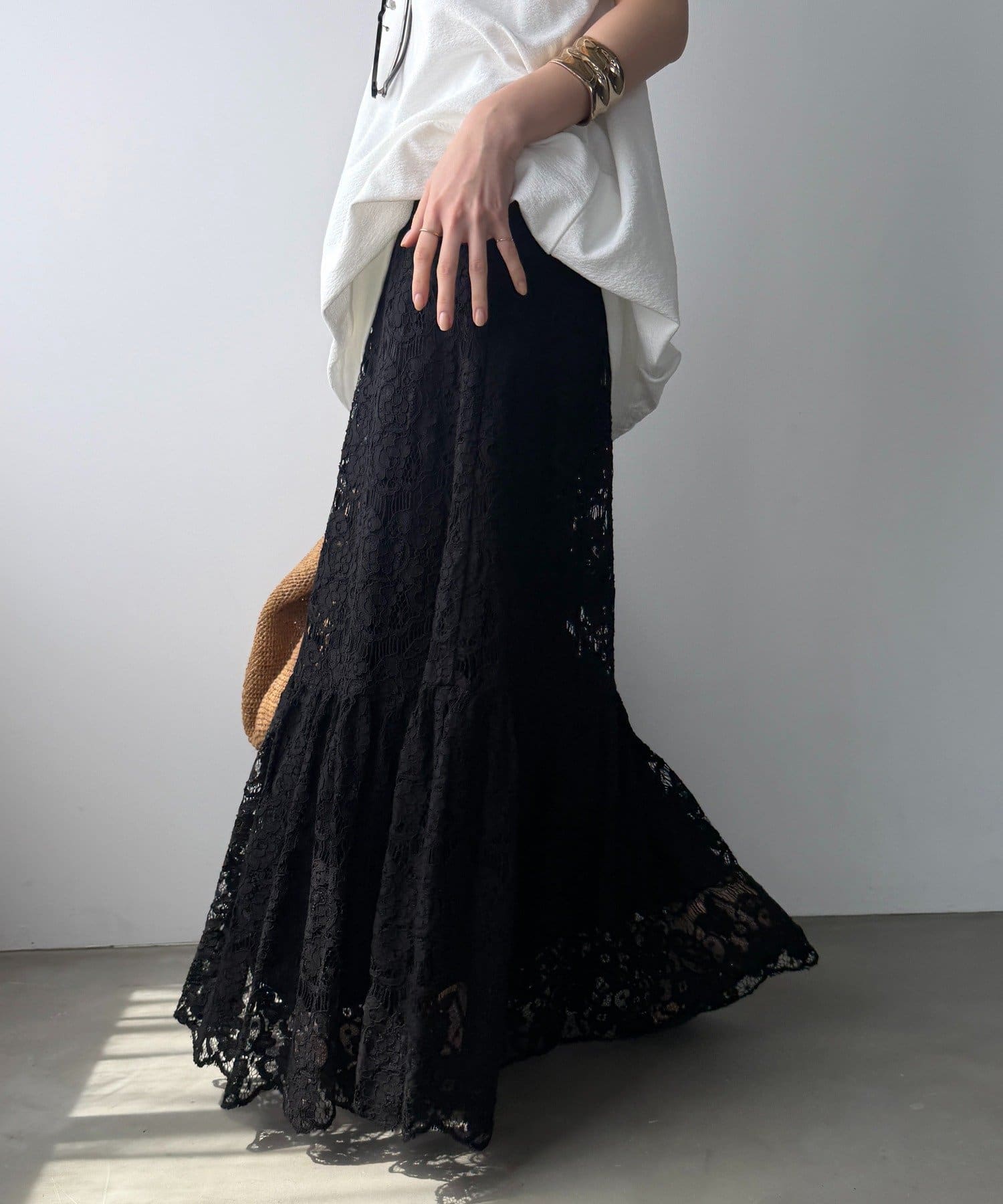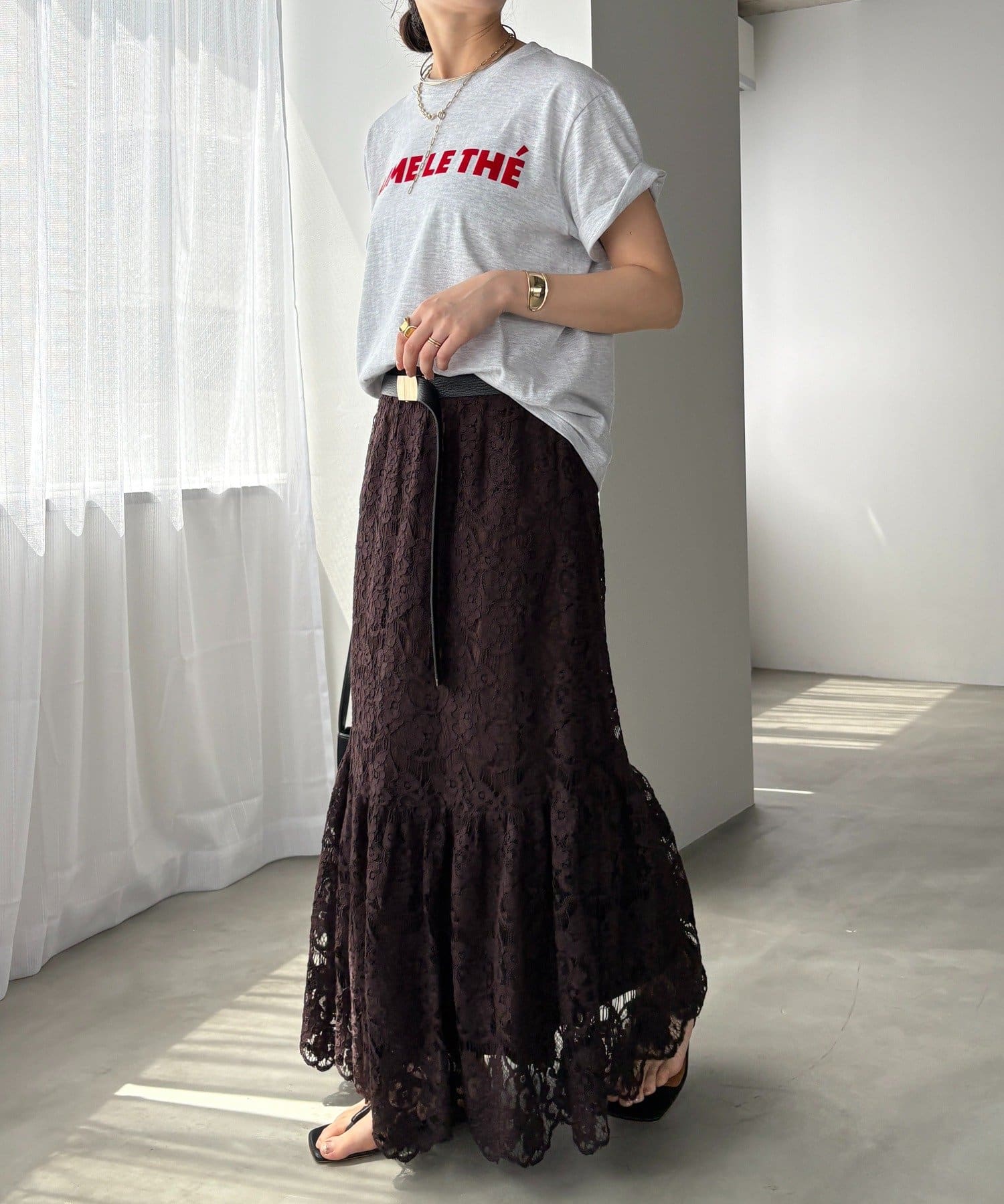 甘くなりすぎないレース柄で、カジュアルなアイテムとも合わせやすく、気軽に取り入れていただけますよ。