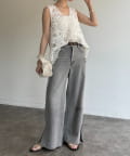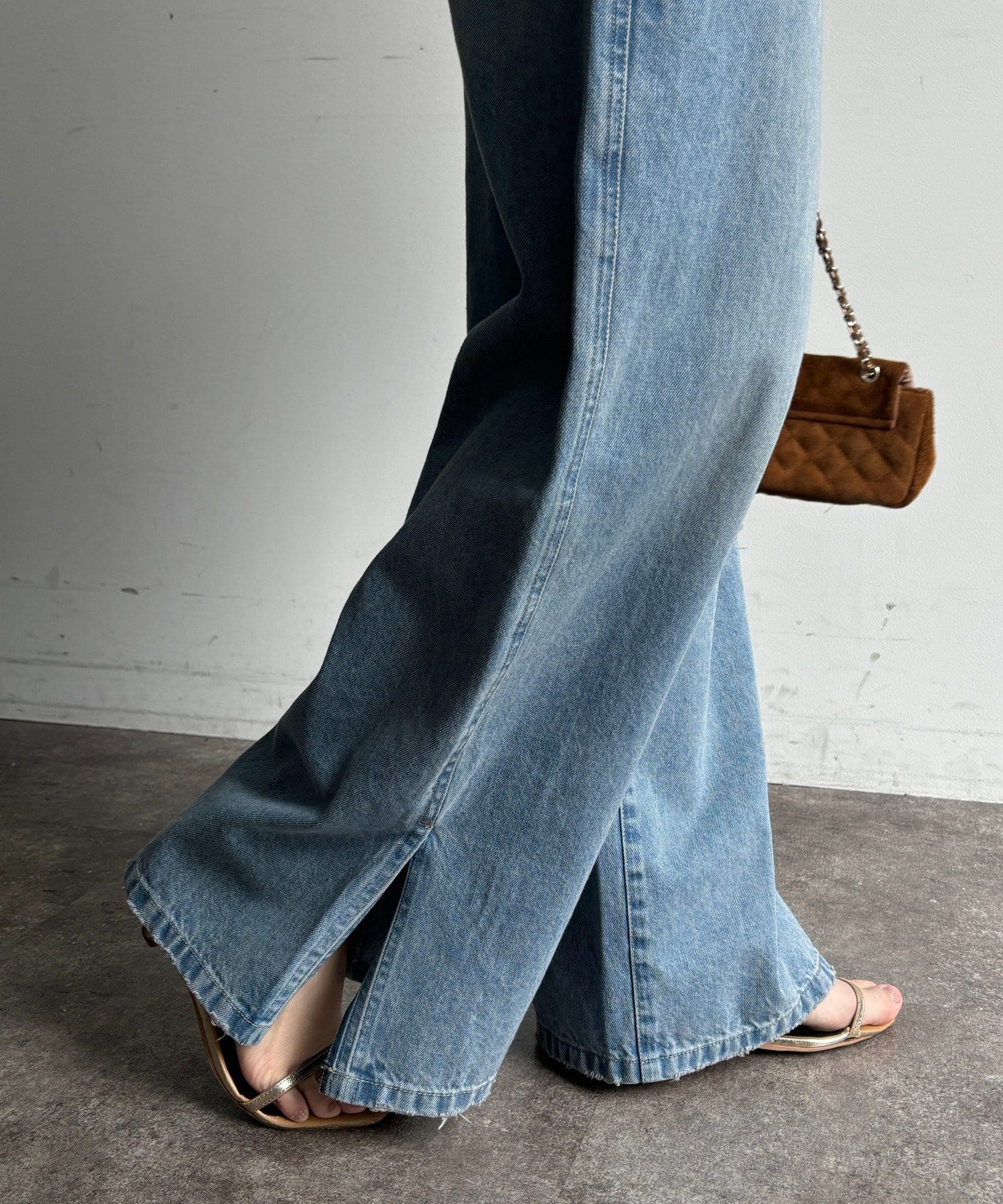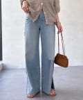 さらに裾部分にはスリットデザインをプラス。歩くたびにさりげなく足元が覗き、軽やかな印象に!