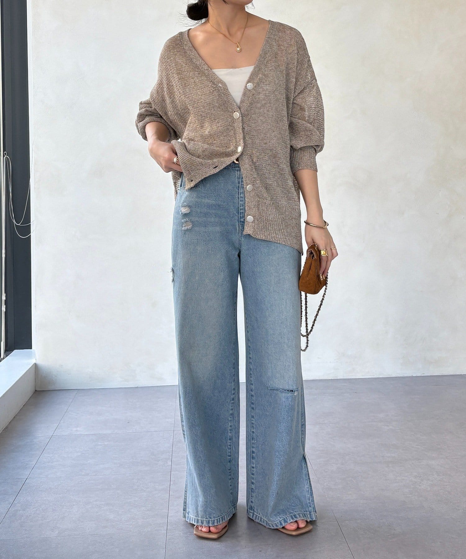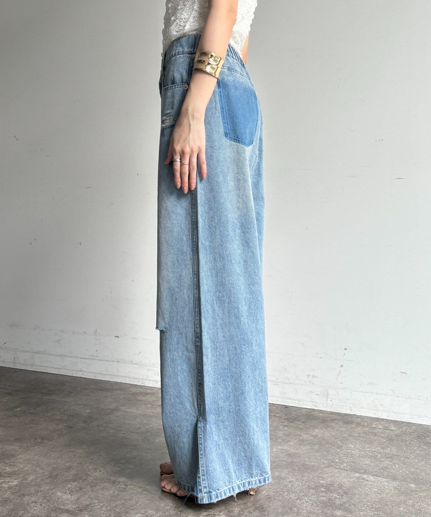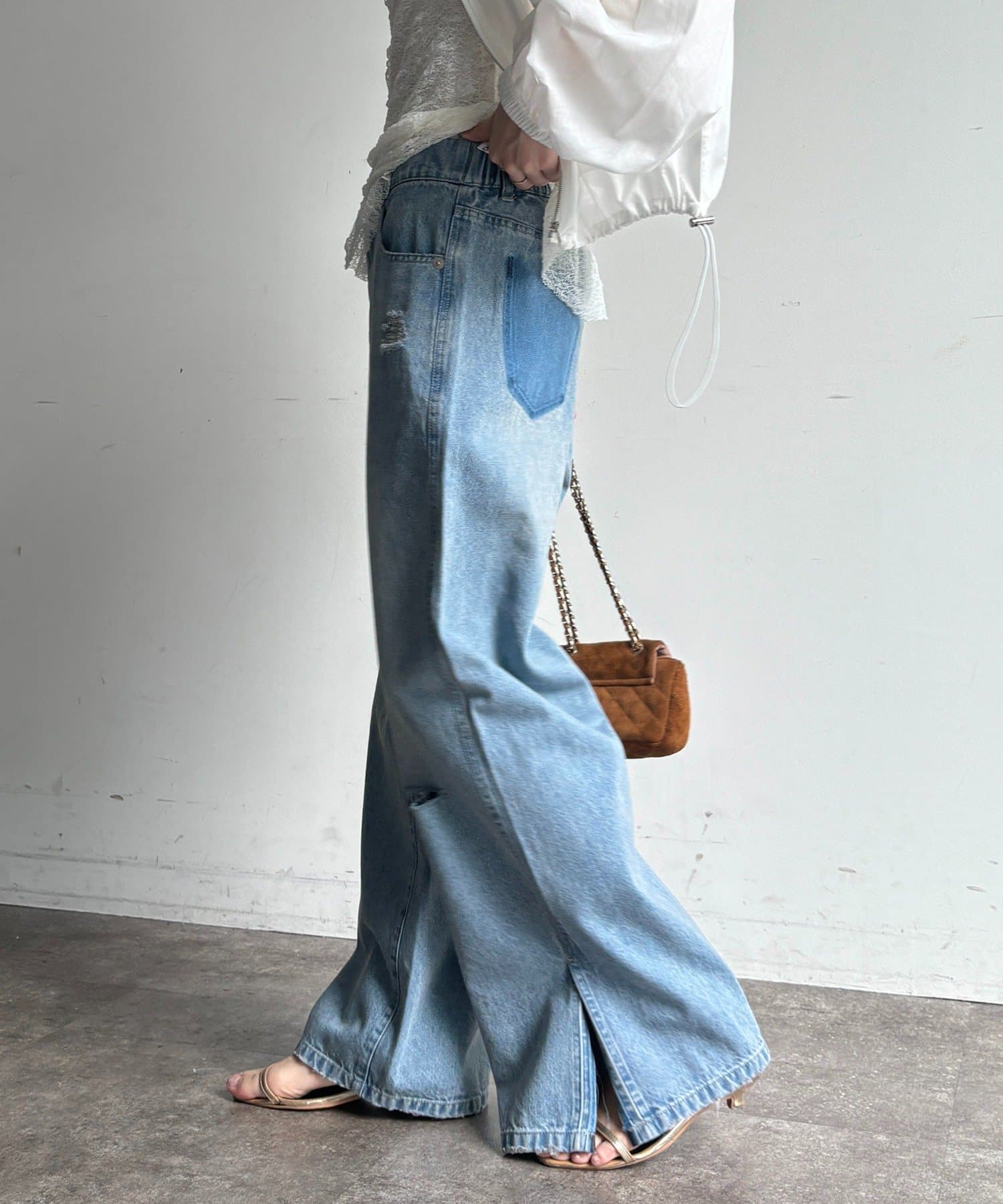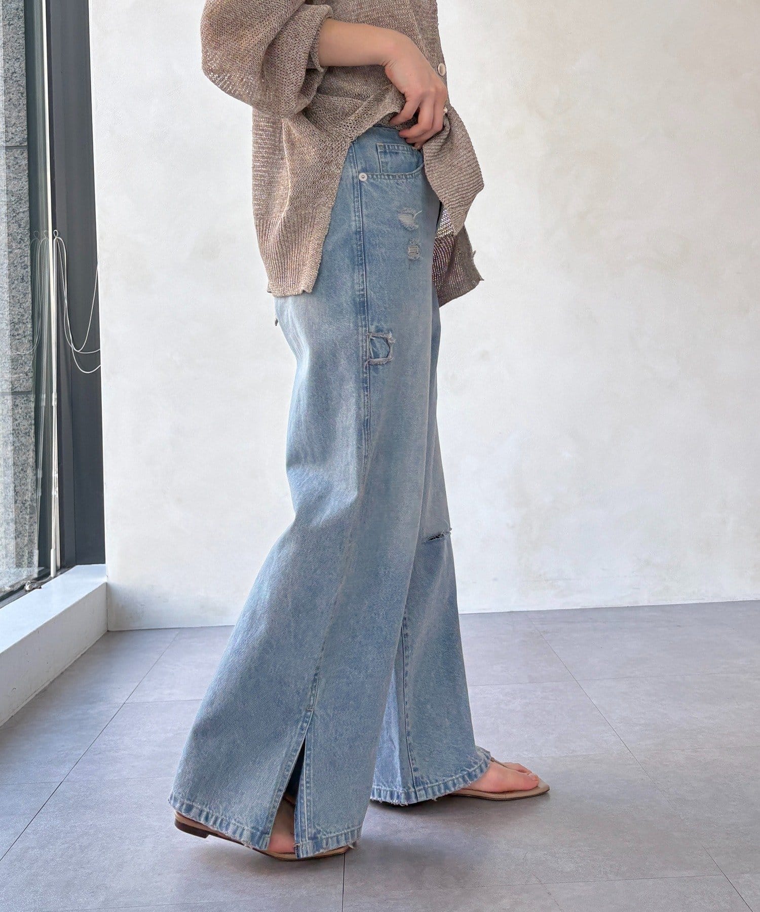 • DOUDOU(ドゥドゥ) ミドルオンスダメージスリットデニム