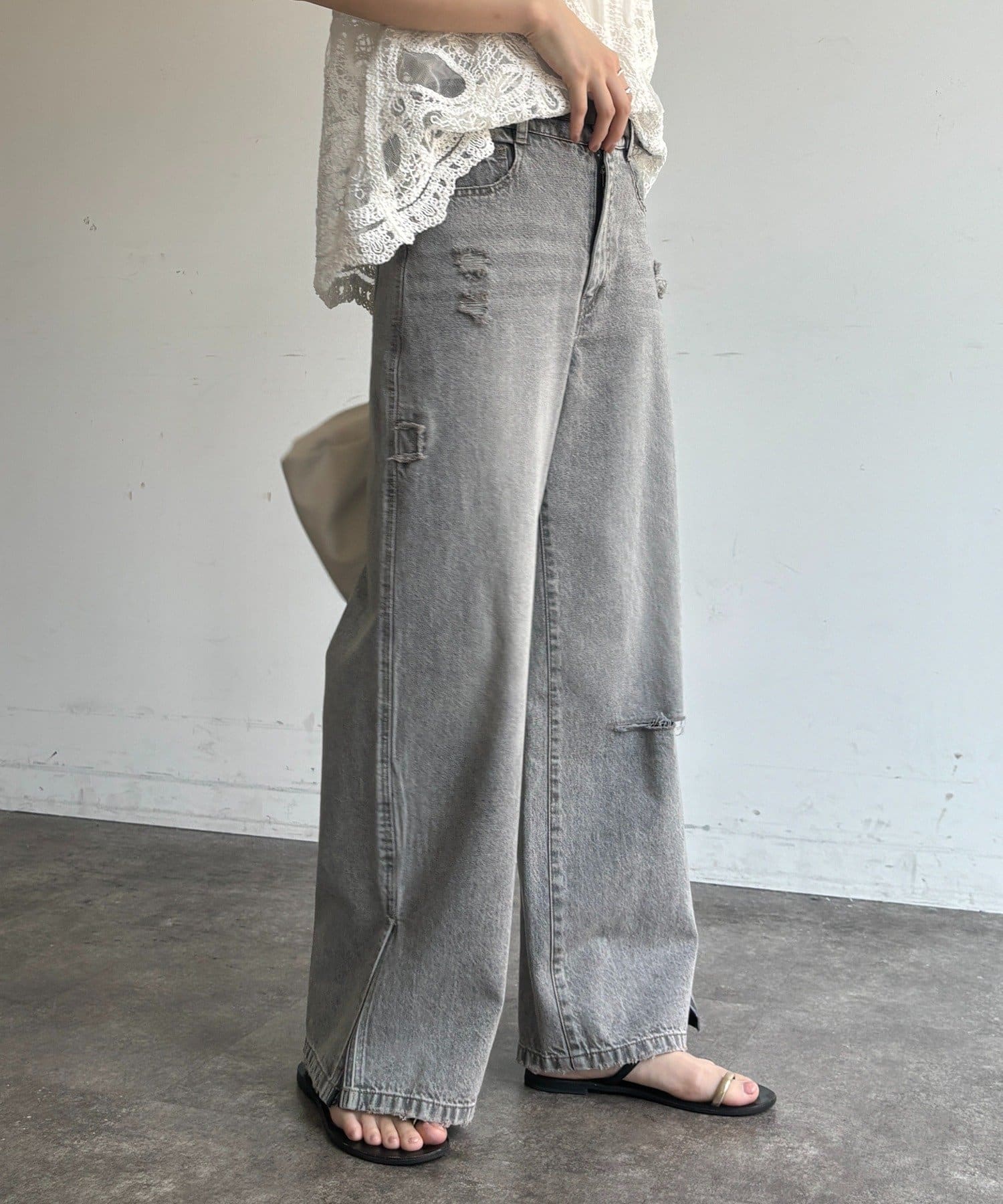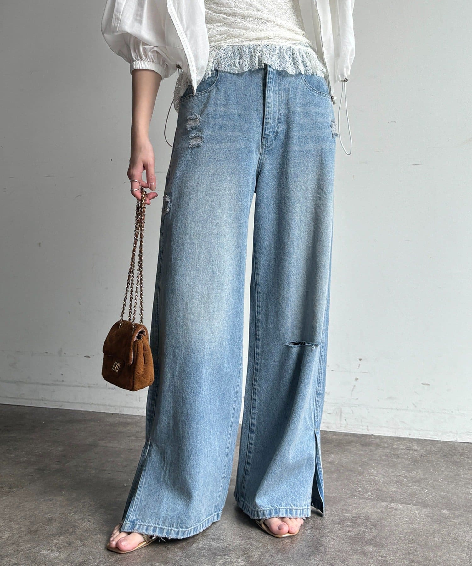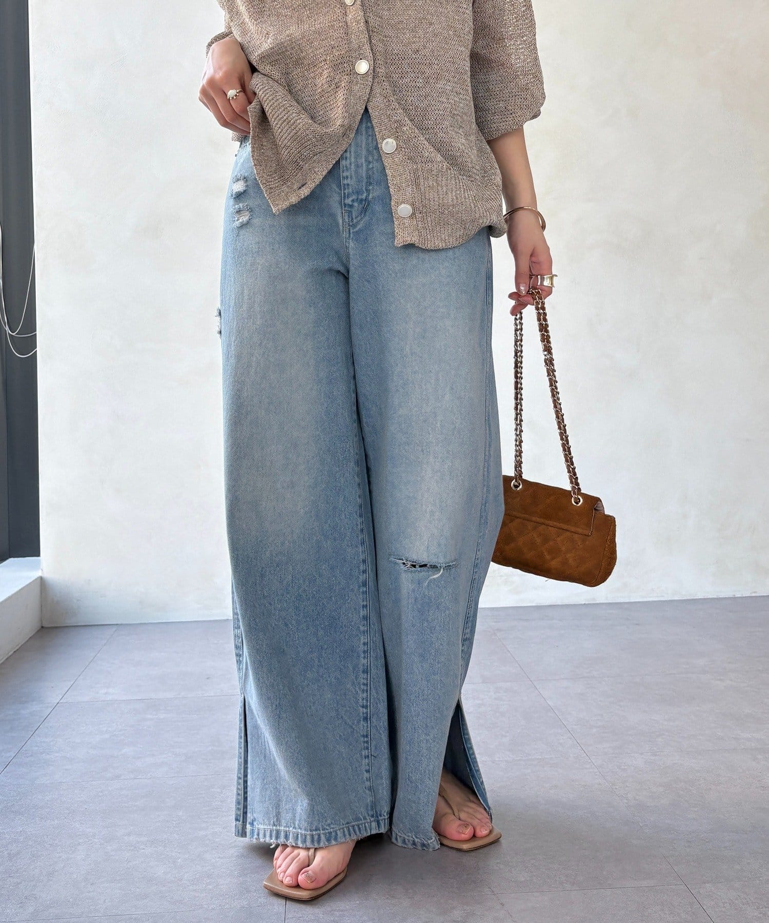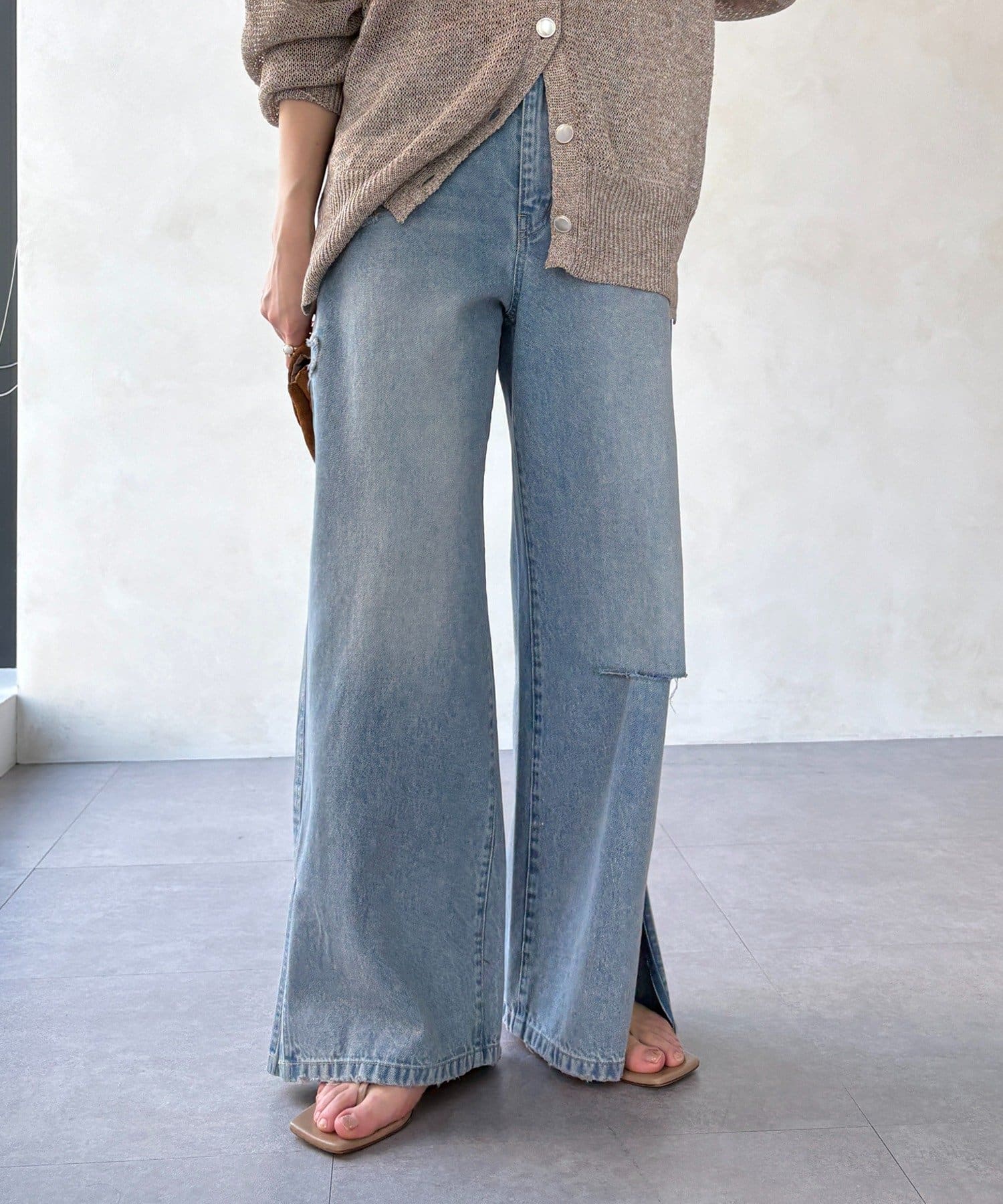 TOP > DOUDOU > レディース > パンツ > デニムパンツ > ミドルオンスダメージスリットデニム