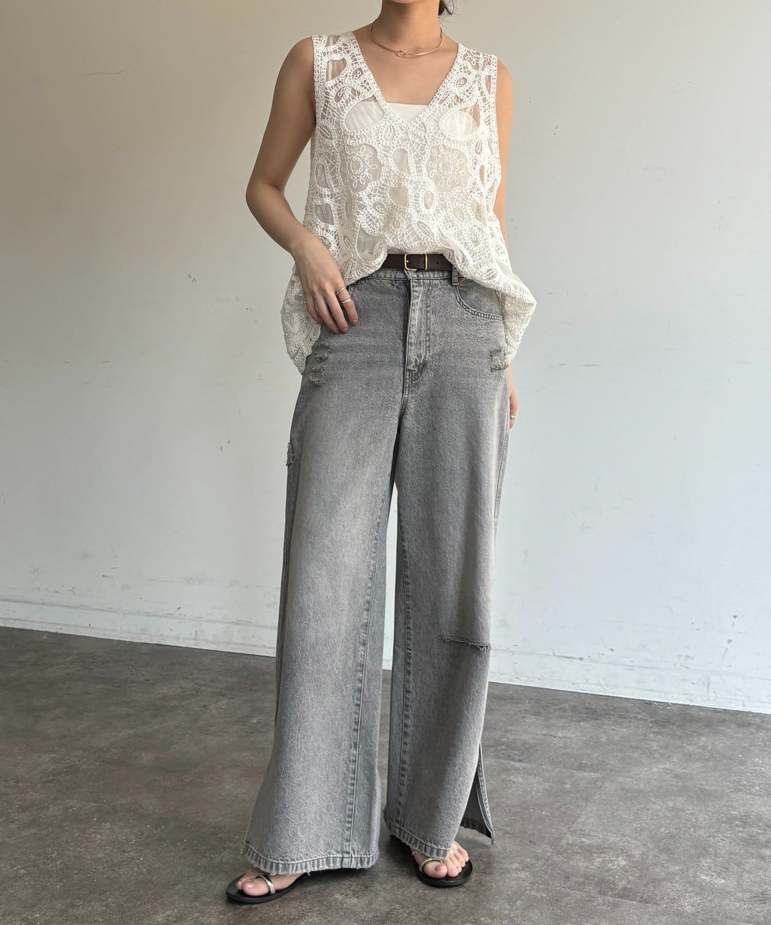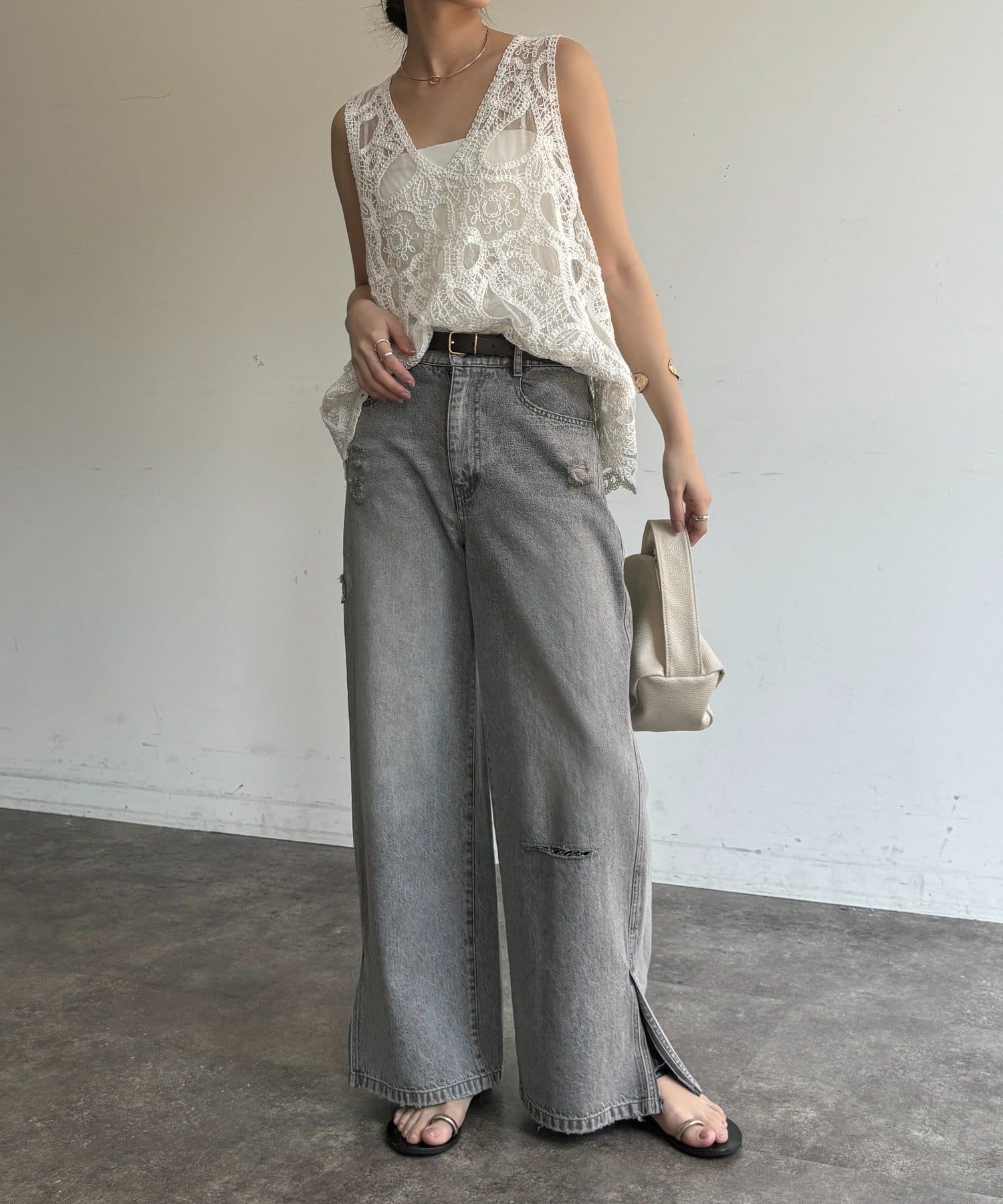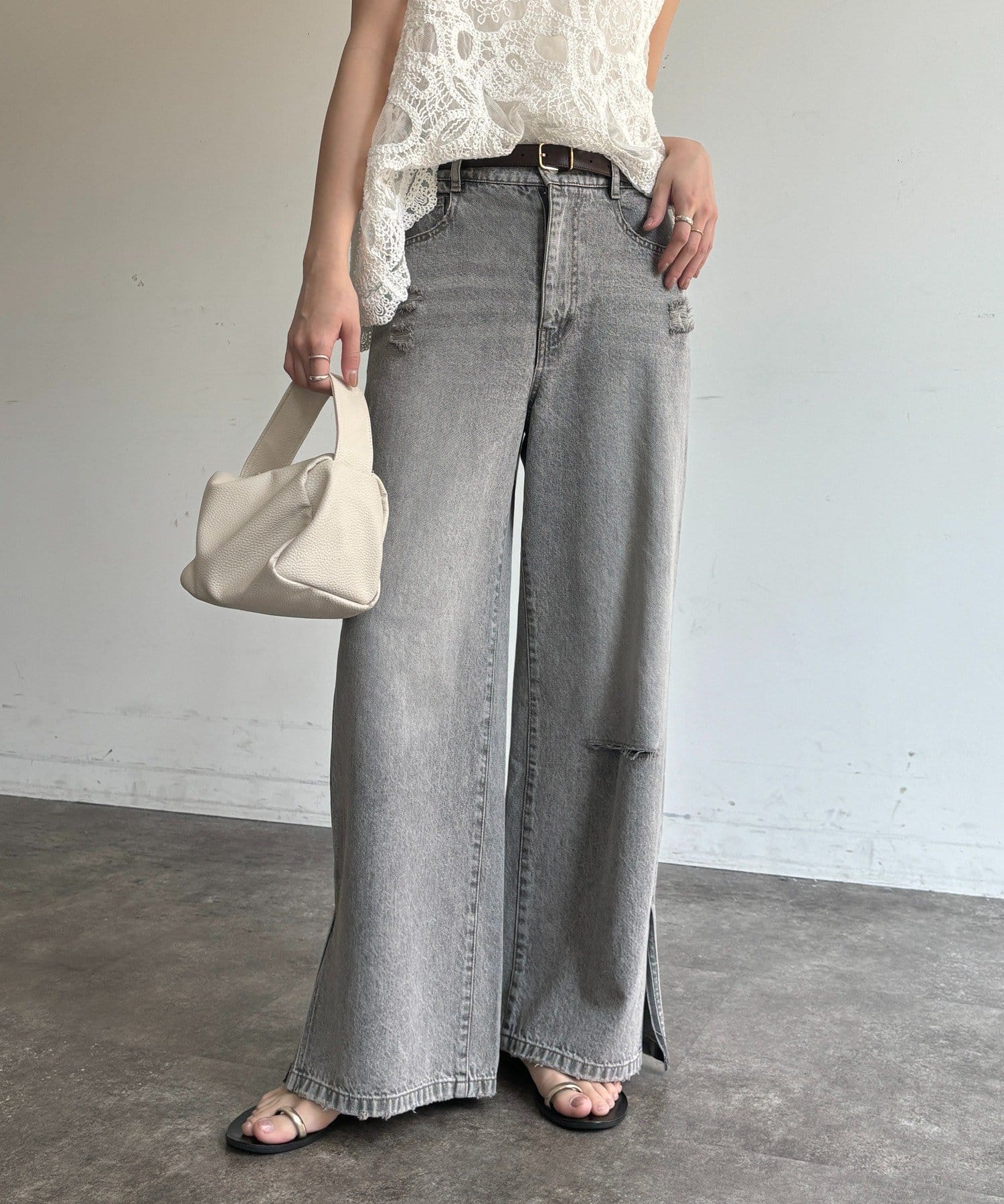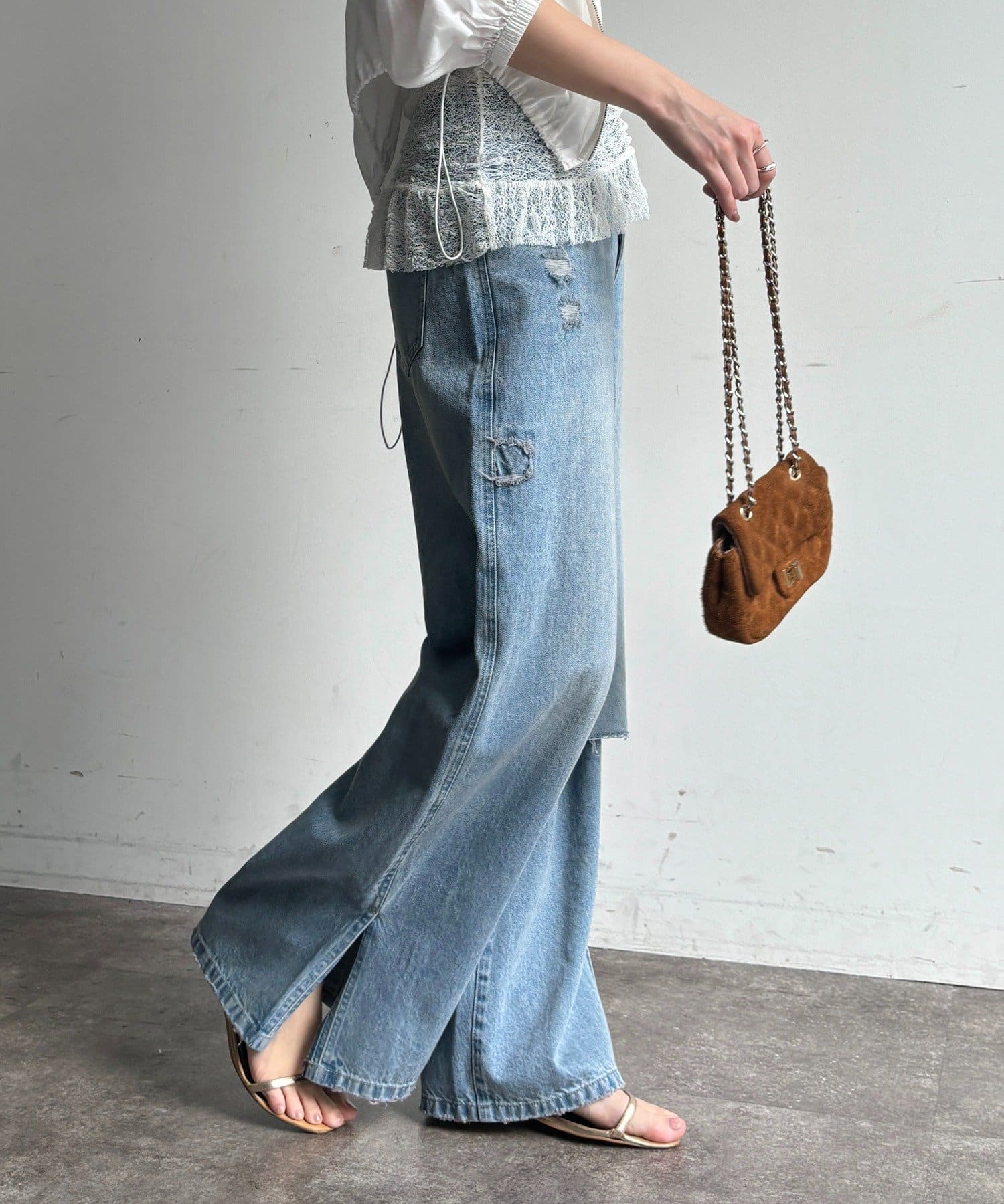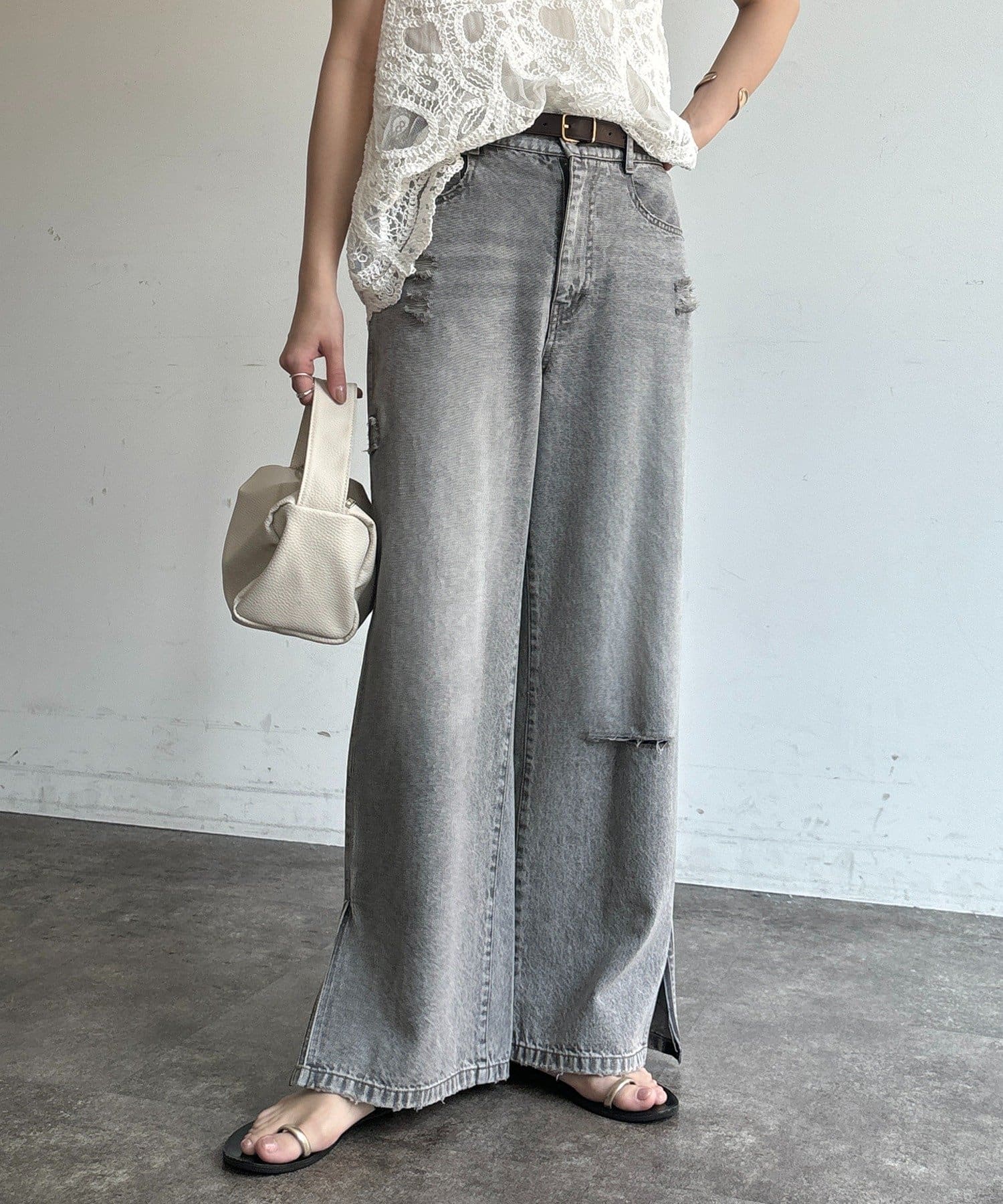 TOP > DOUDOU > レディース > パンツ > デニムパンツ > ミドルオンスダメージスリットデニム