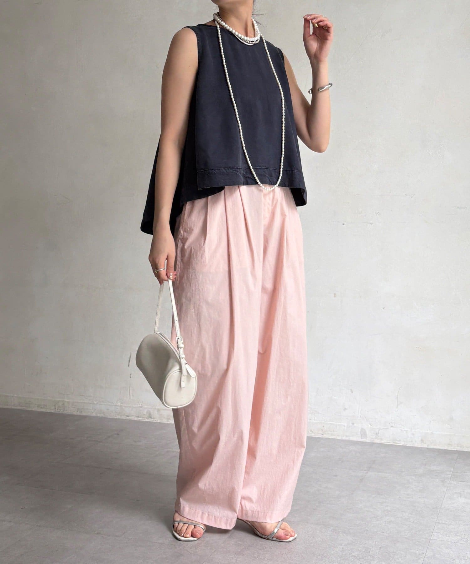 カジュアルながらも、リヨセル素材を使用した落ち感のある素材で上品さをアピール。