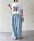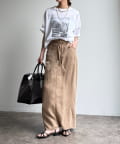 主張しすぎないプリントが大人の装いにも馴染みやすく、カジュアルながらも洗練された雰囲気を演出します。