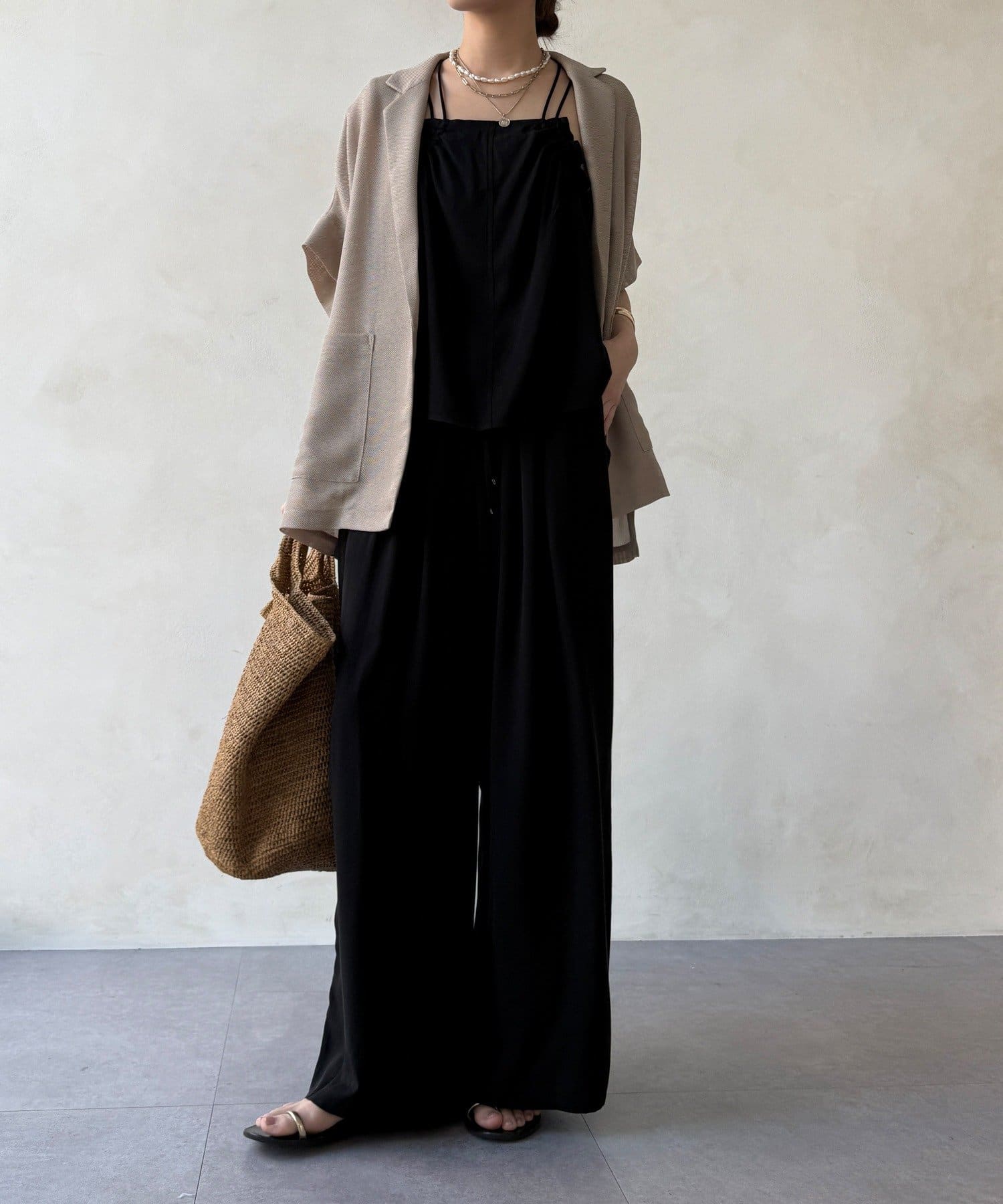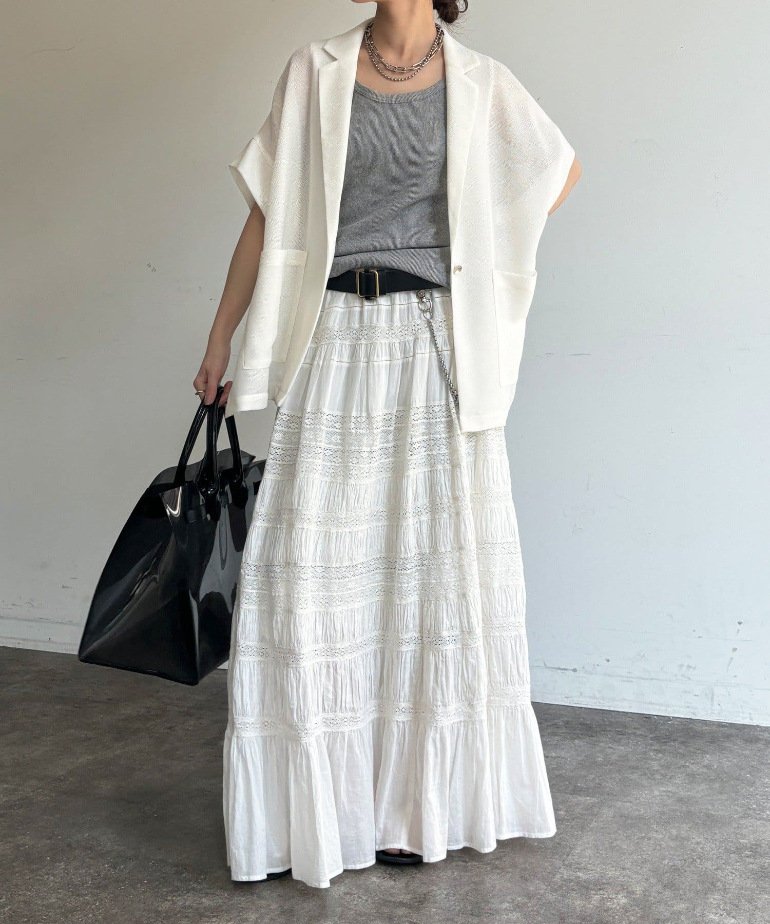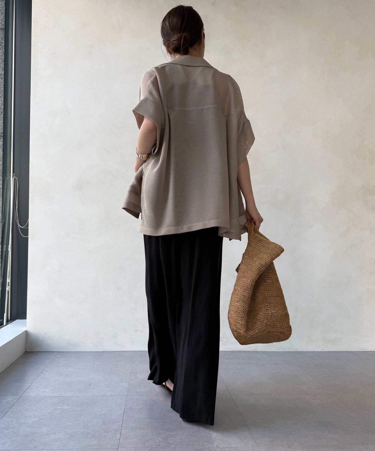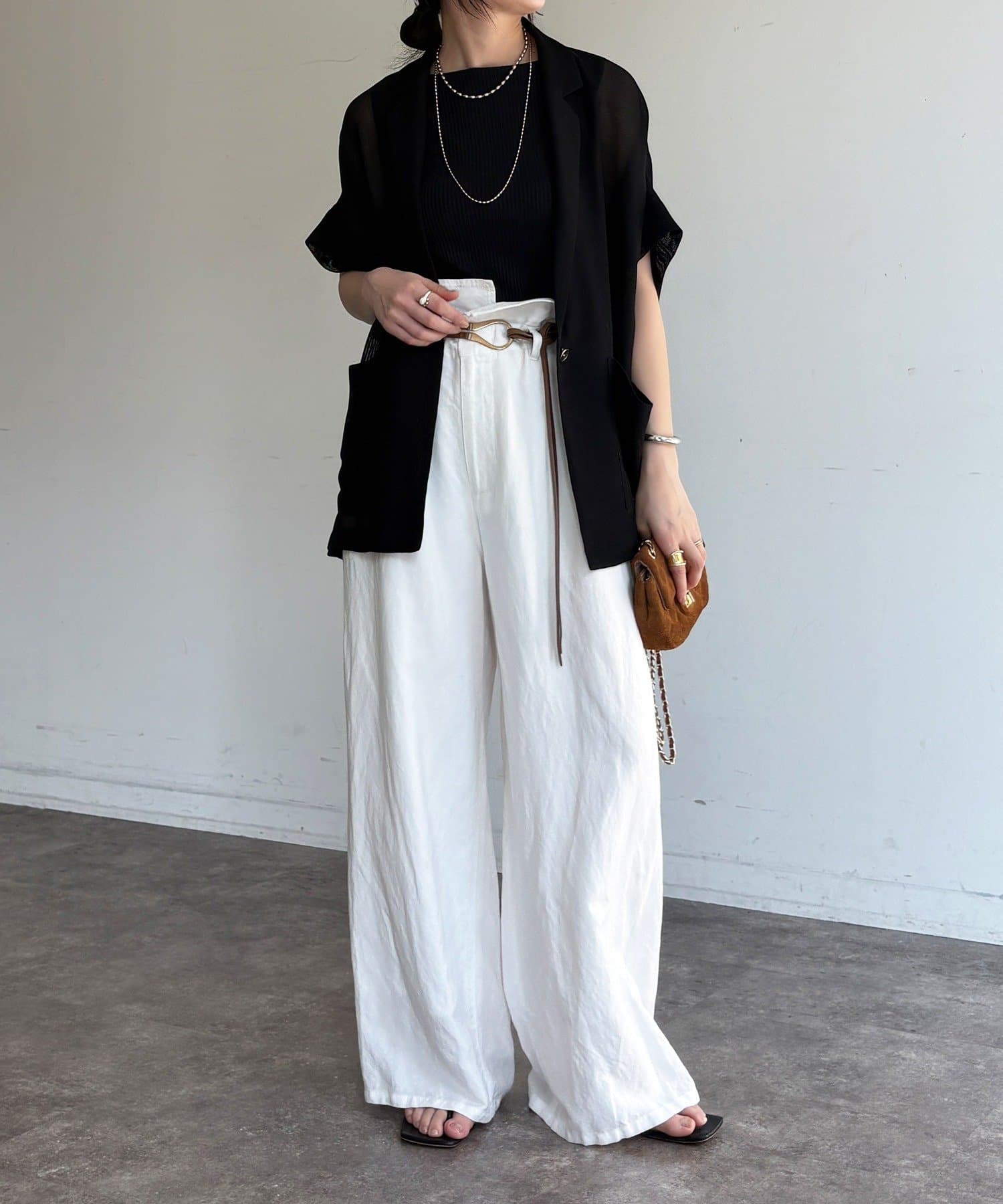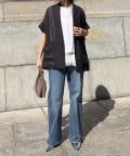 適度なゆったりしたサイズ感が、二の腕や腰回りをスマートに◎