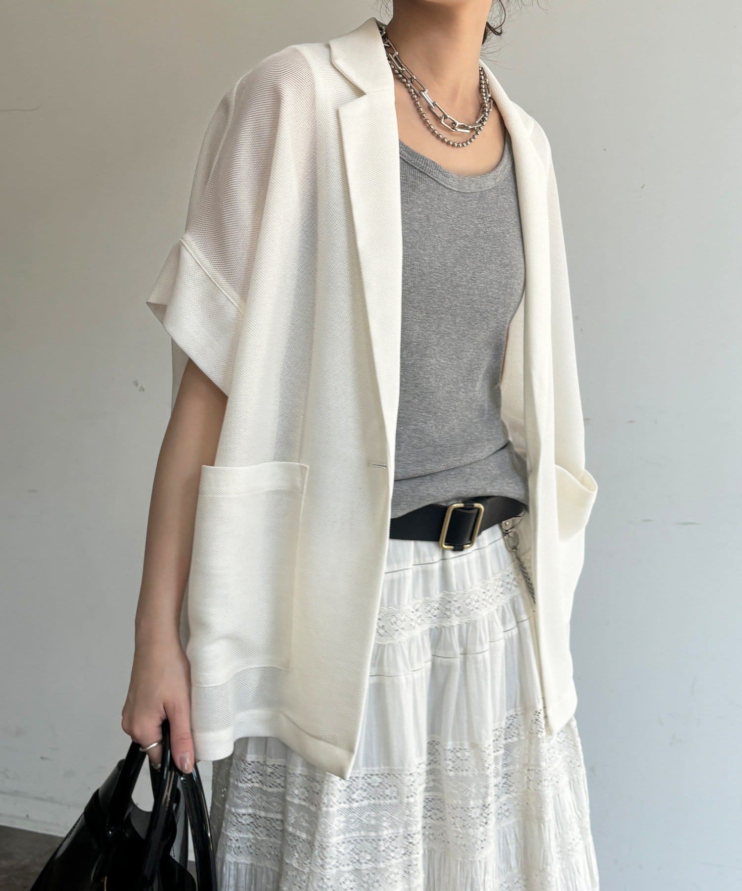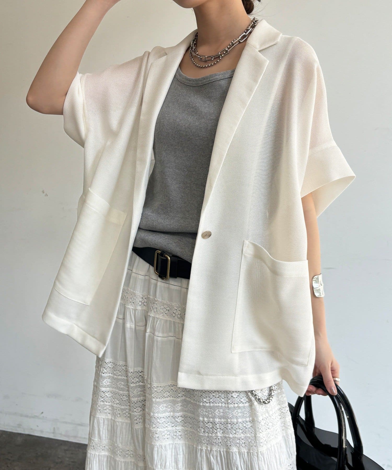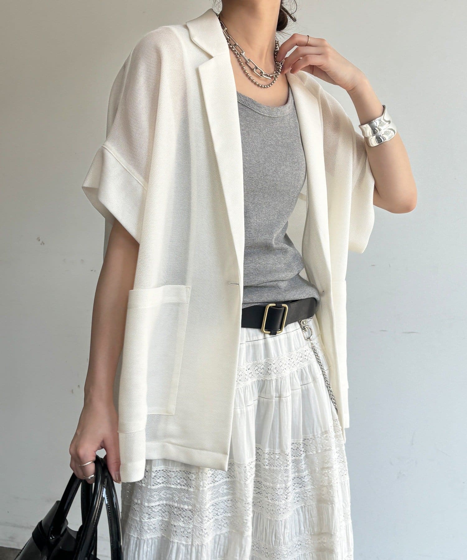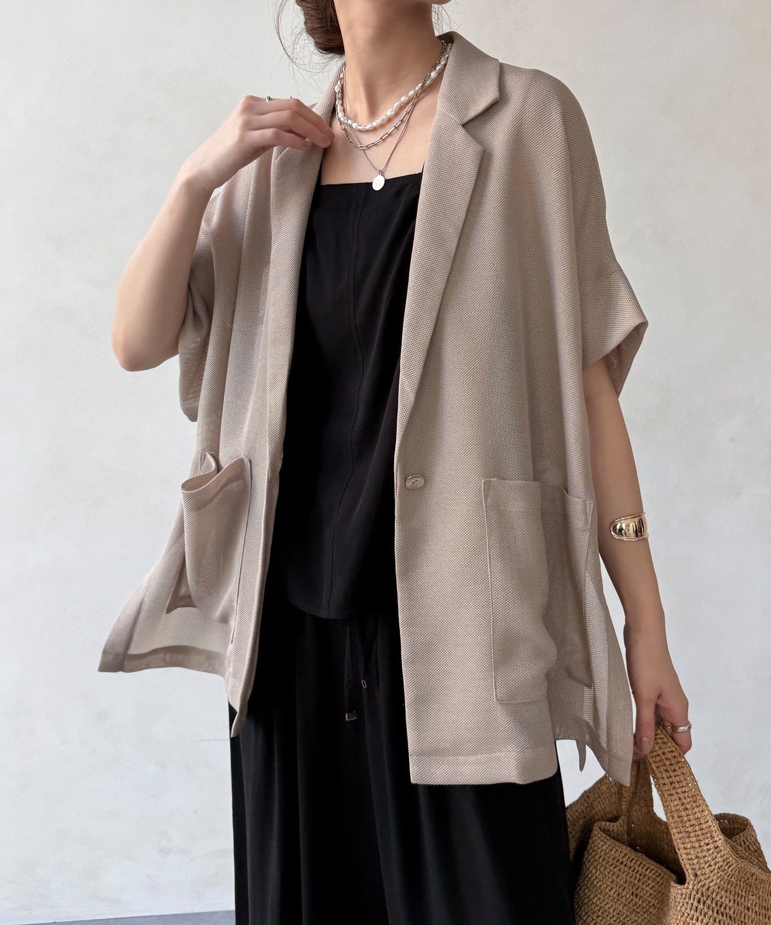 大人の抜け感を演出するメッシュジャケット。