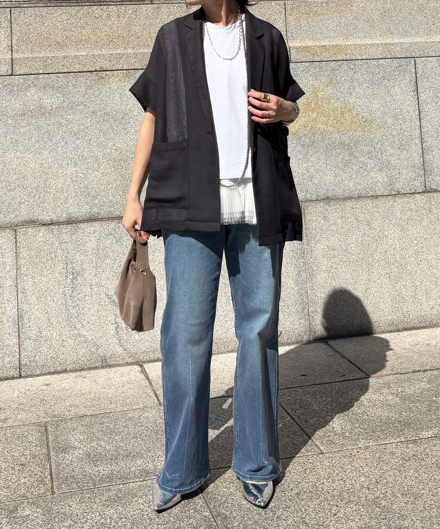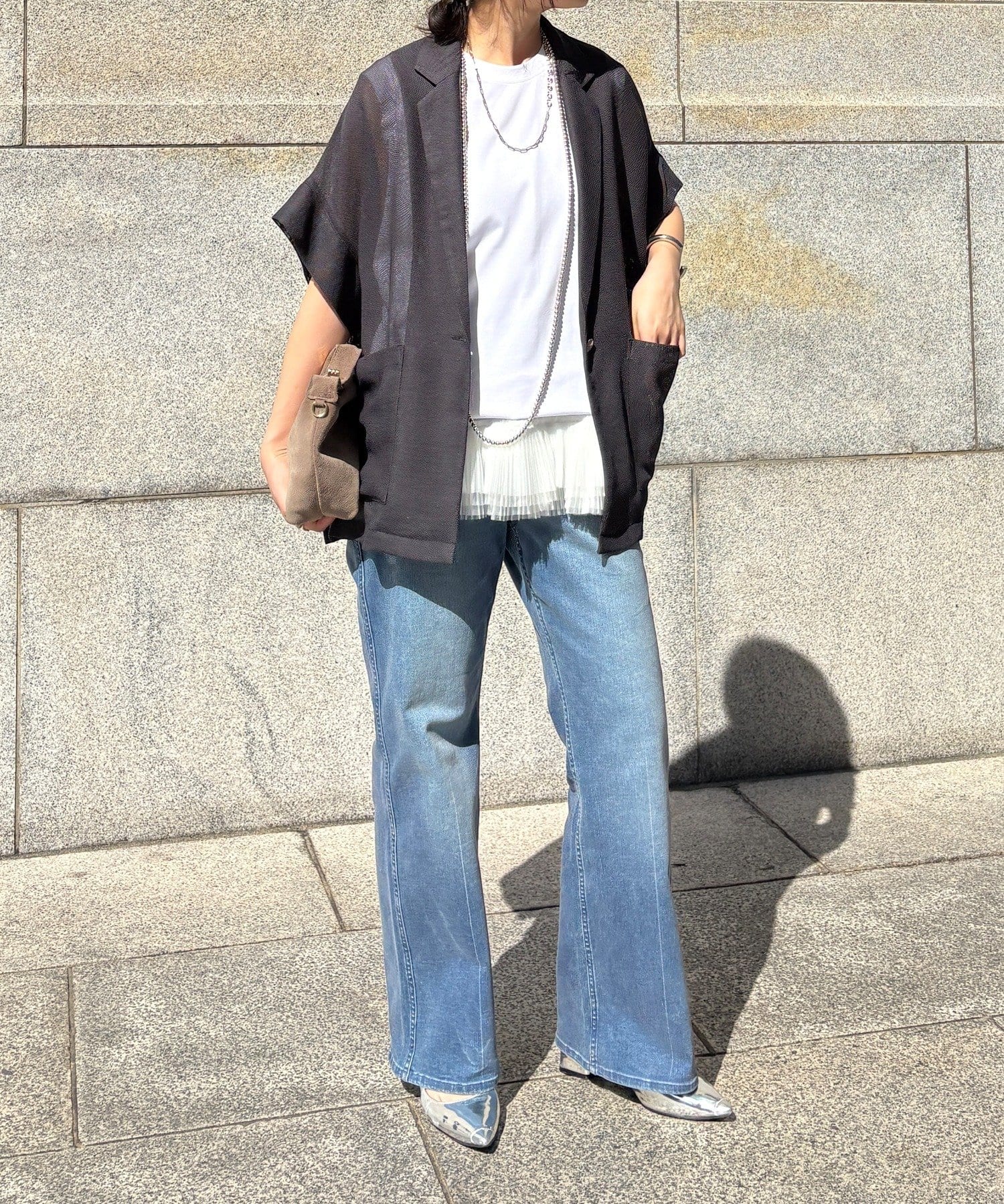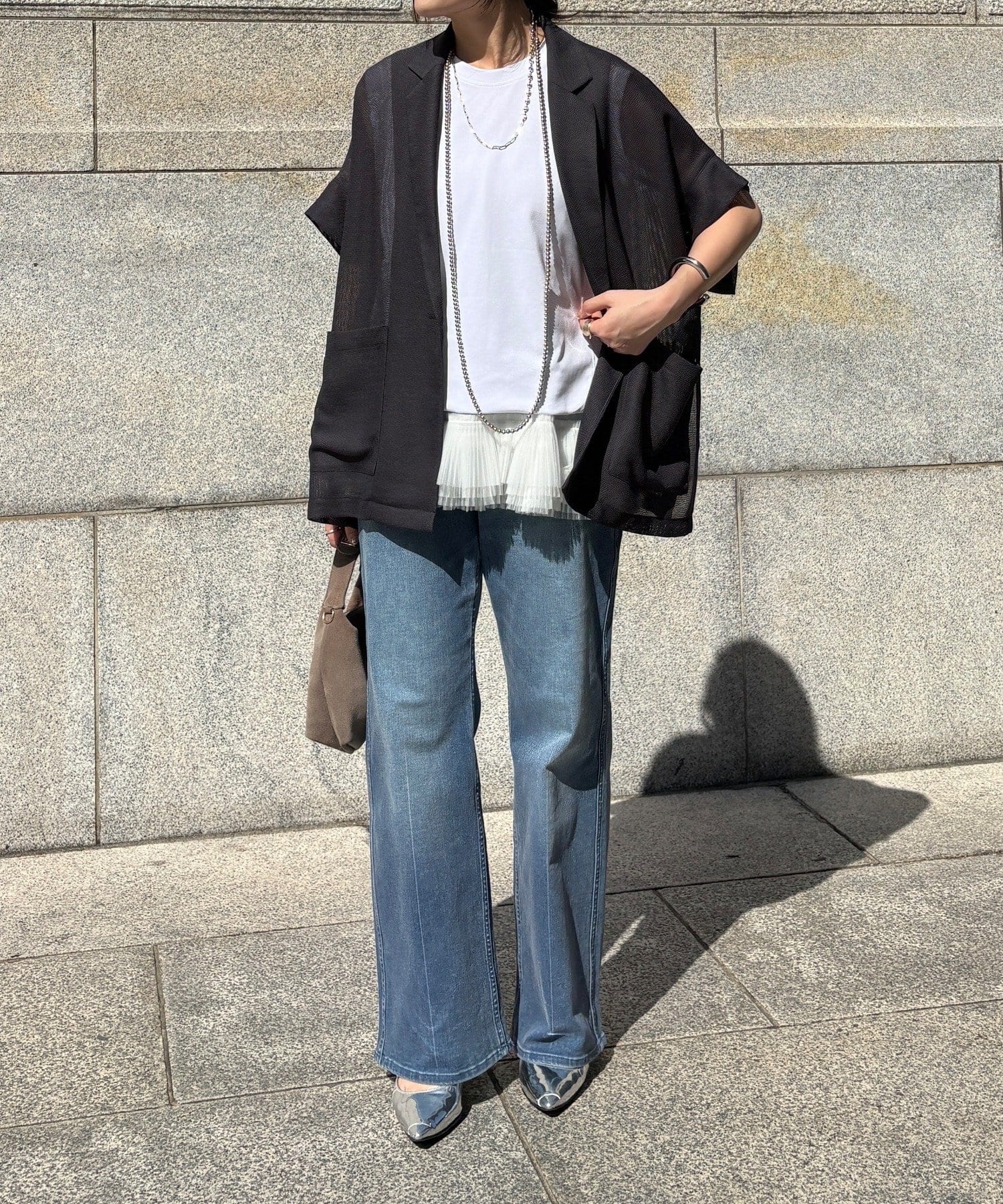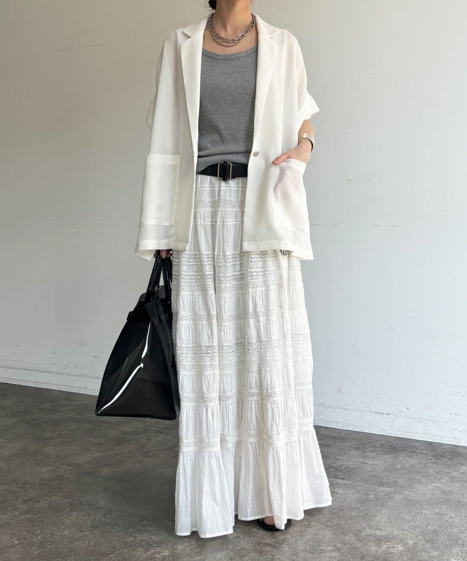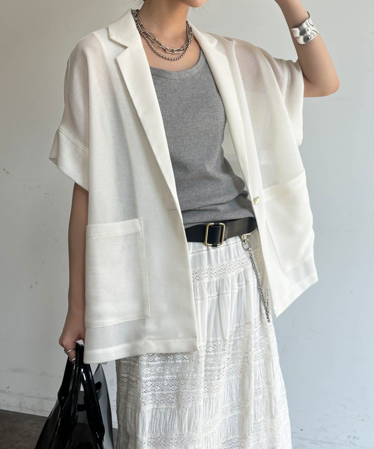 大人の抜け感を演出するメッシュジャケット。