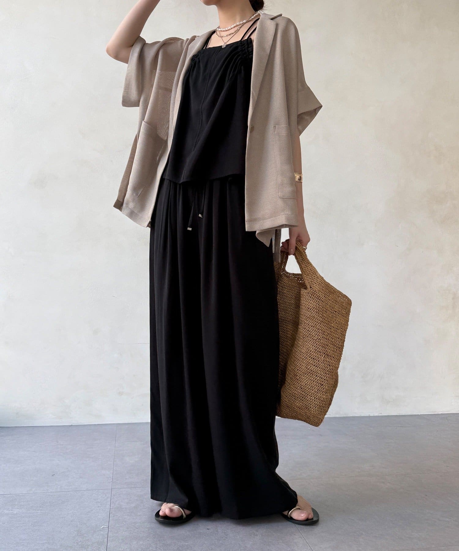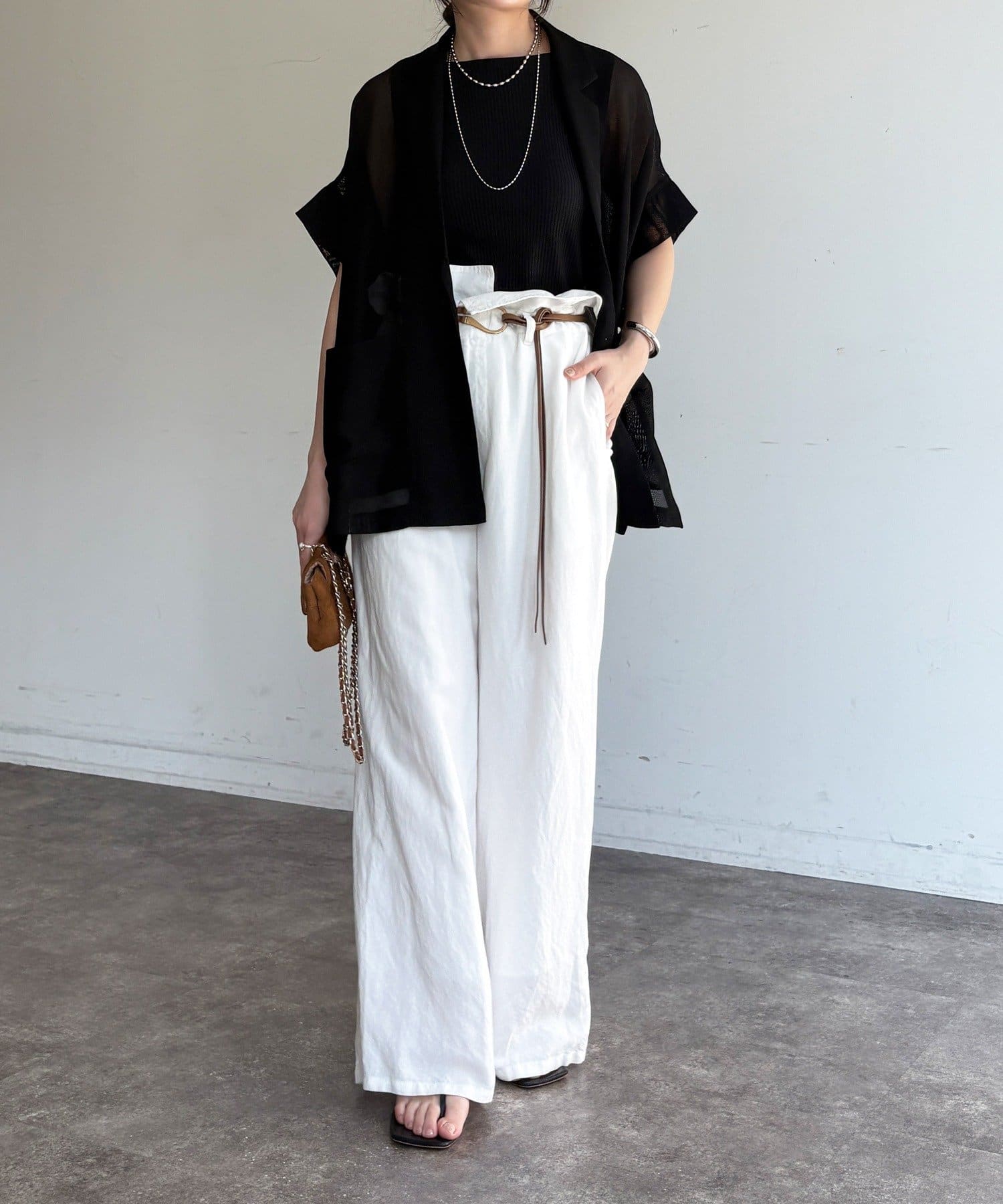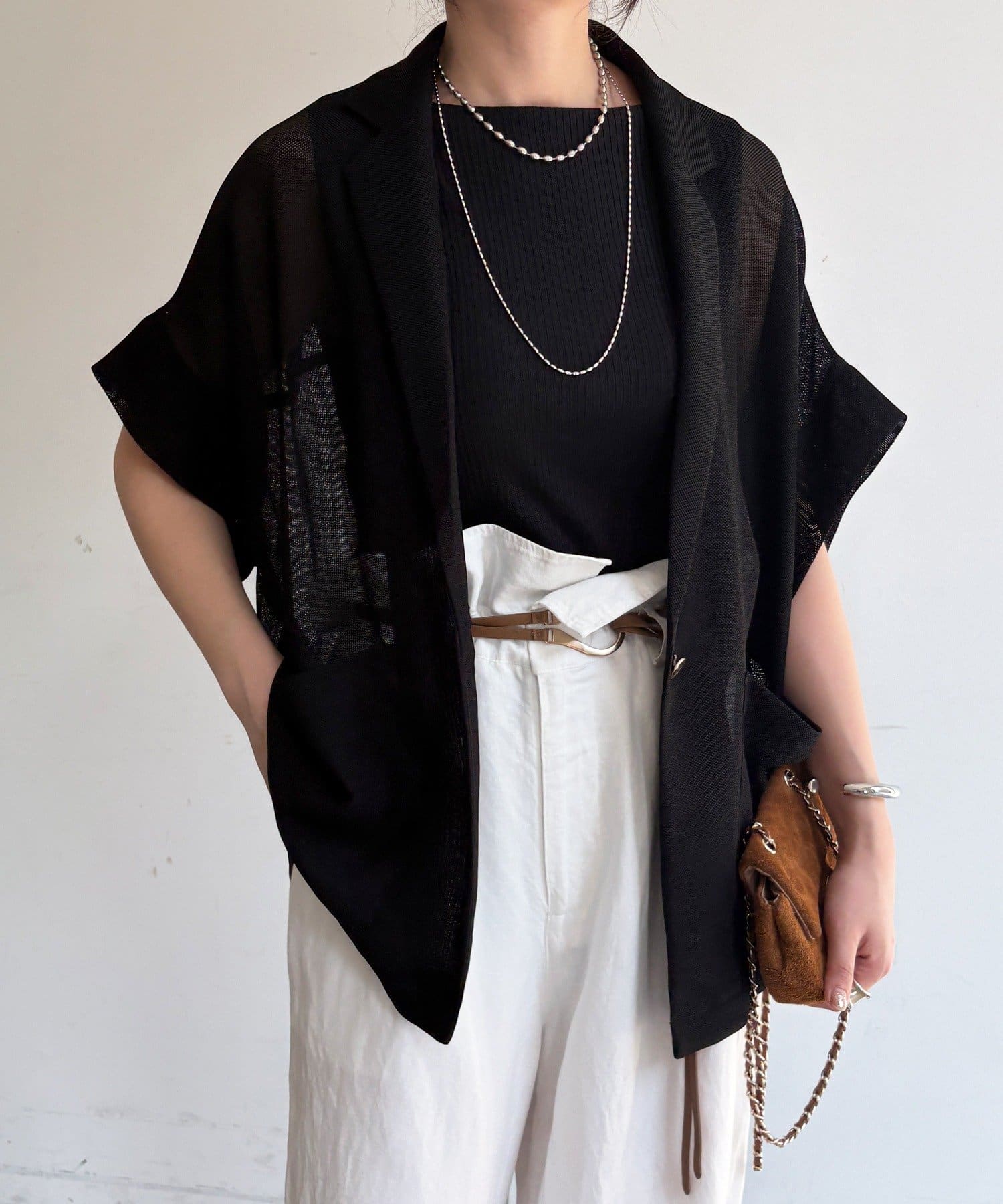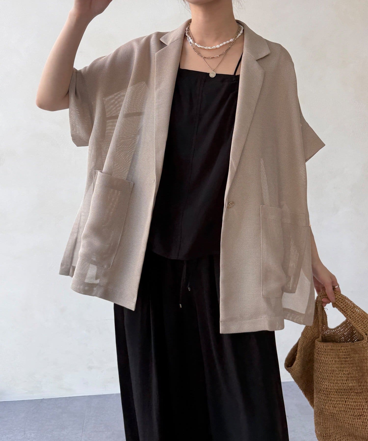 ほどよく透けるメッシュ素材が、真夏でも涼しげな印象に。