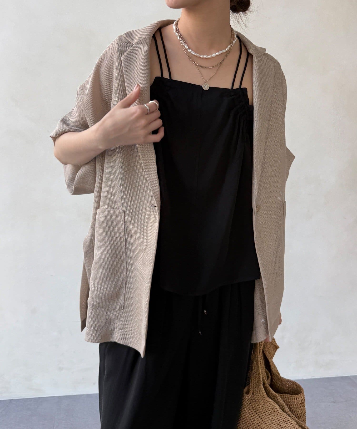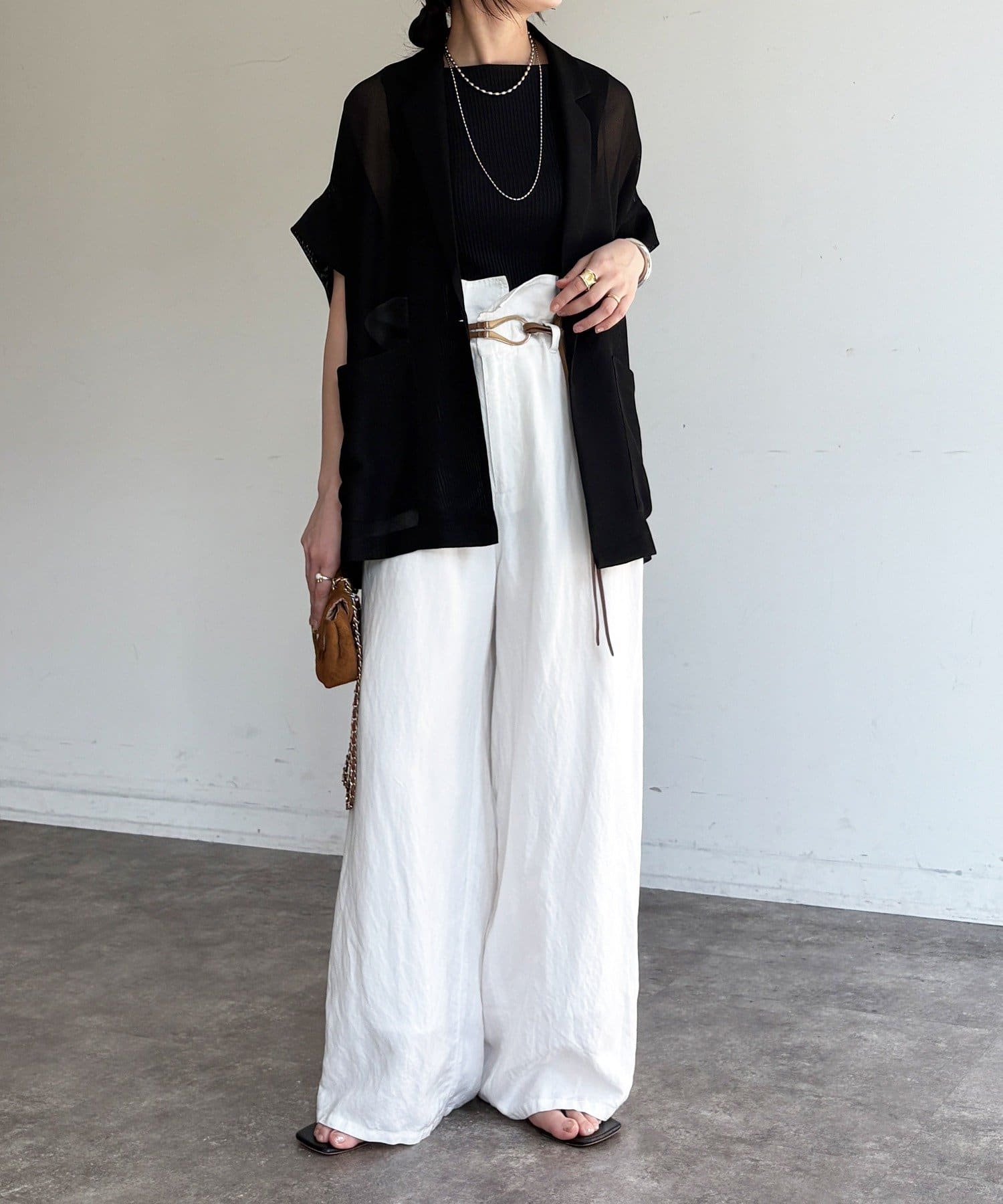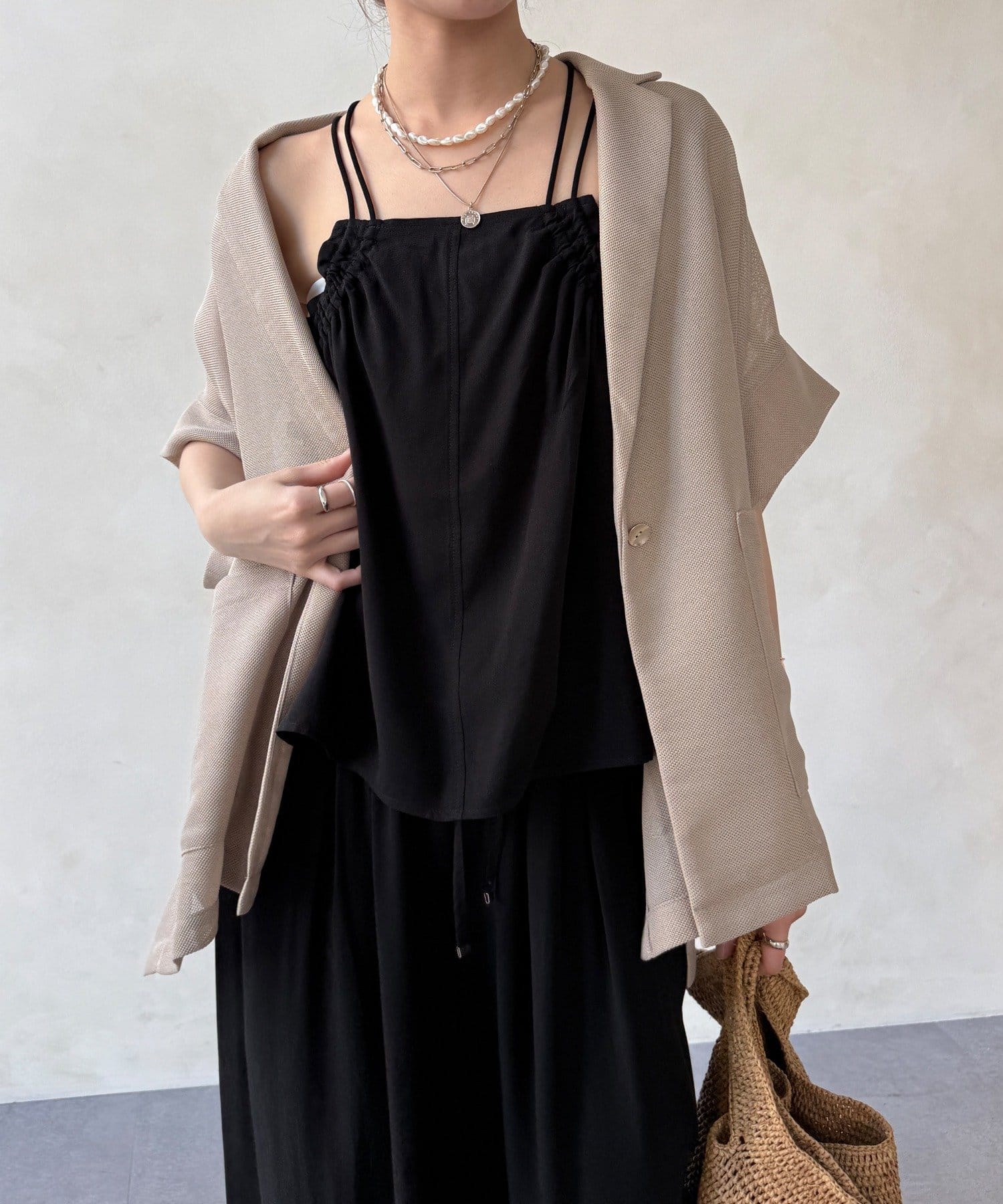 ほどよく透けるメッシュ素材が、真夏でも涼しげな印象に。