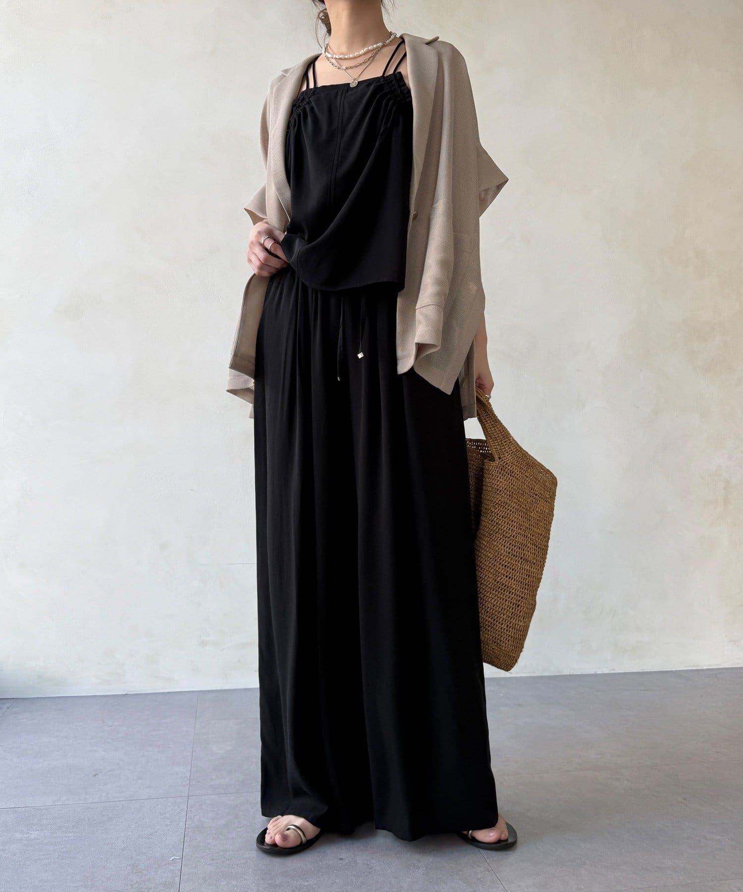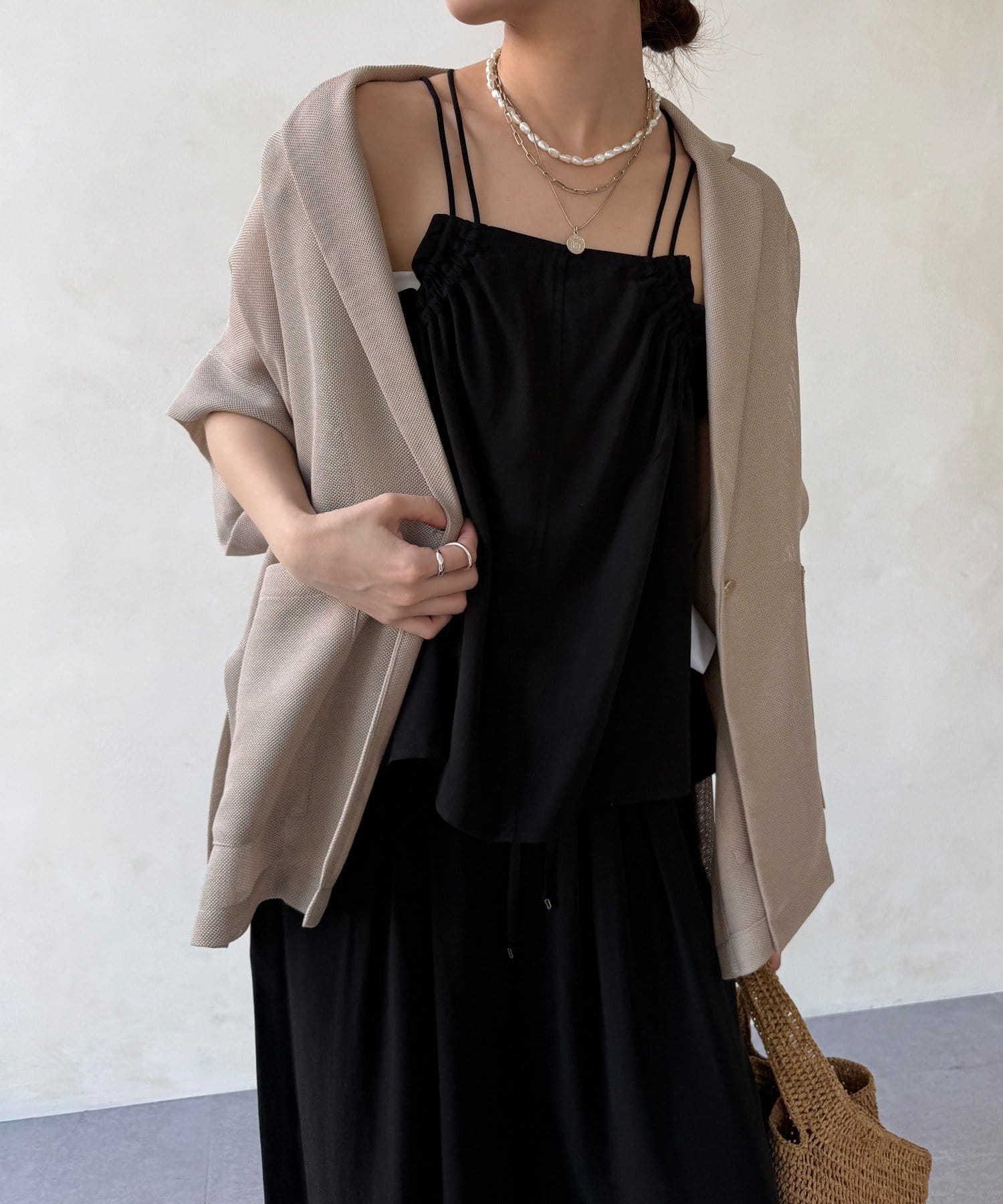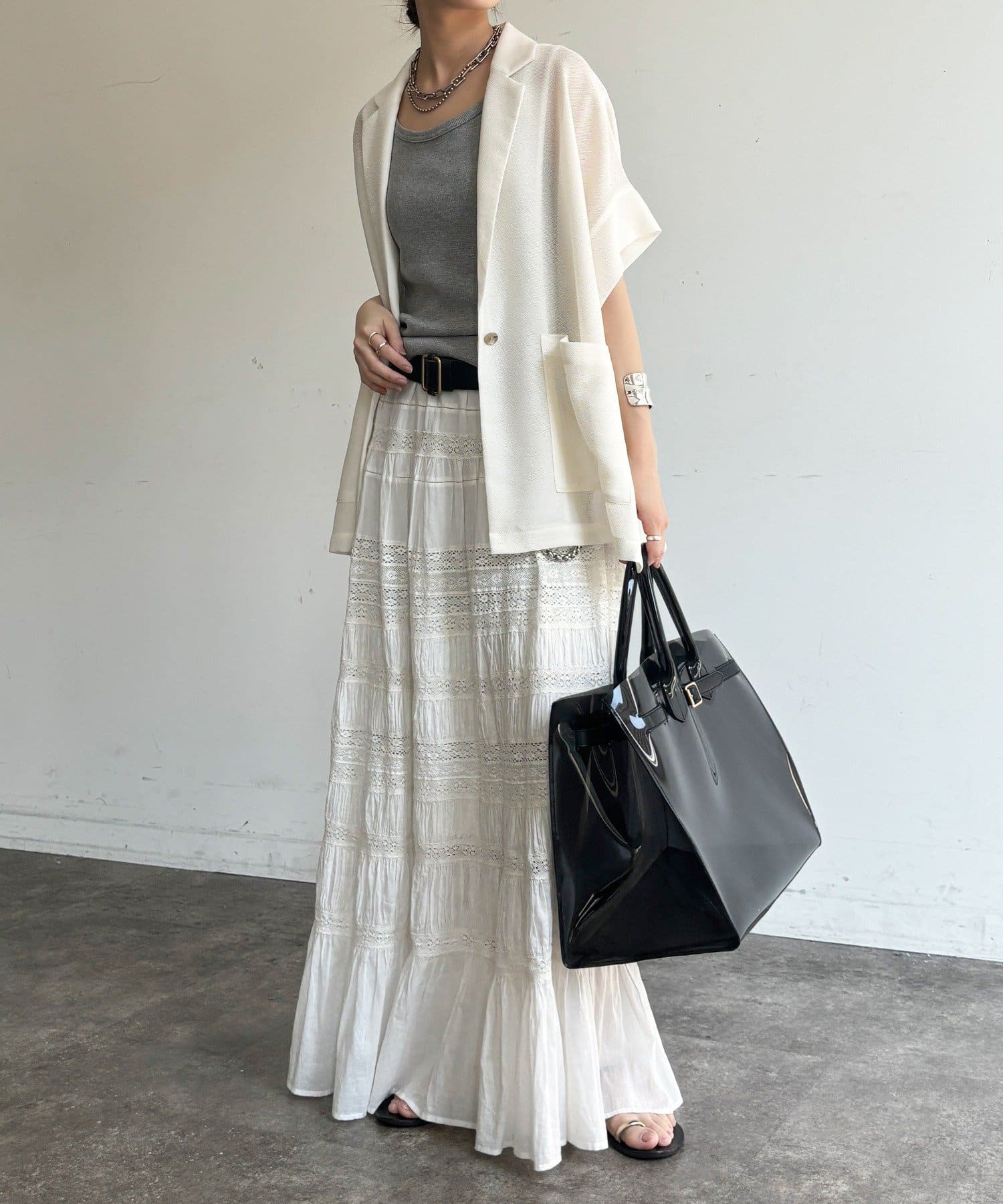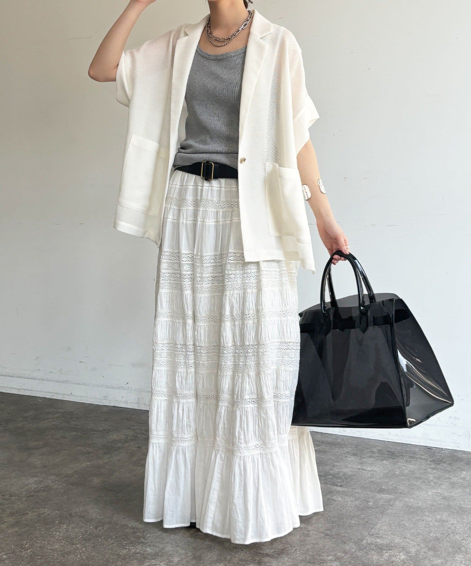 ほどよく透けるメッシュ素材が、真夏でも涼しげな印象に。