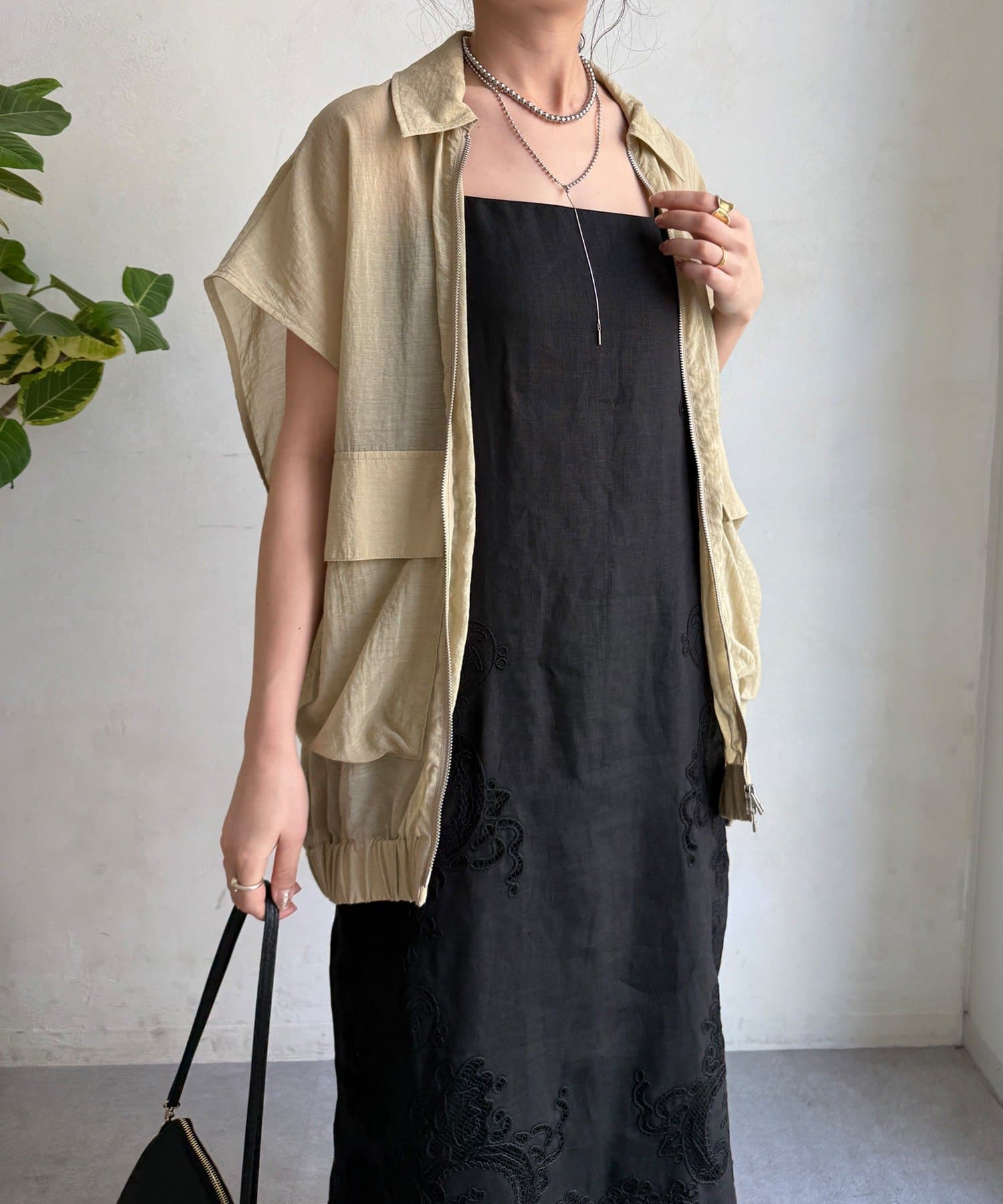肩紐で長さの調節ができるため、デニムやスラックスを裾から覗かせたレイヤードスタイルも自在に楽しめますよ〇