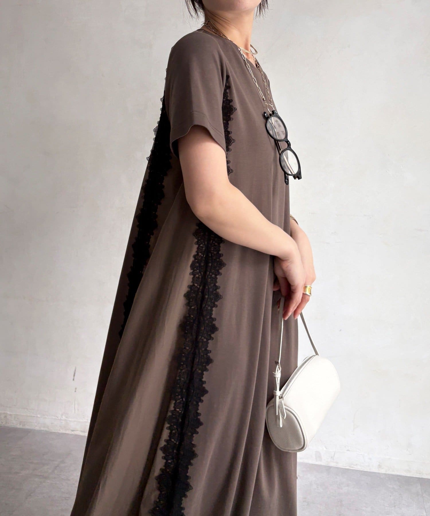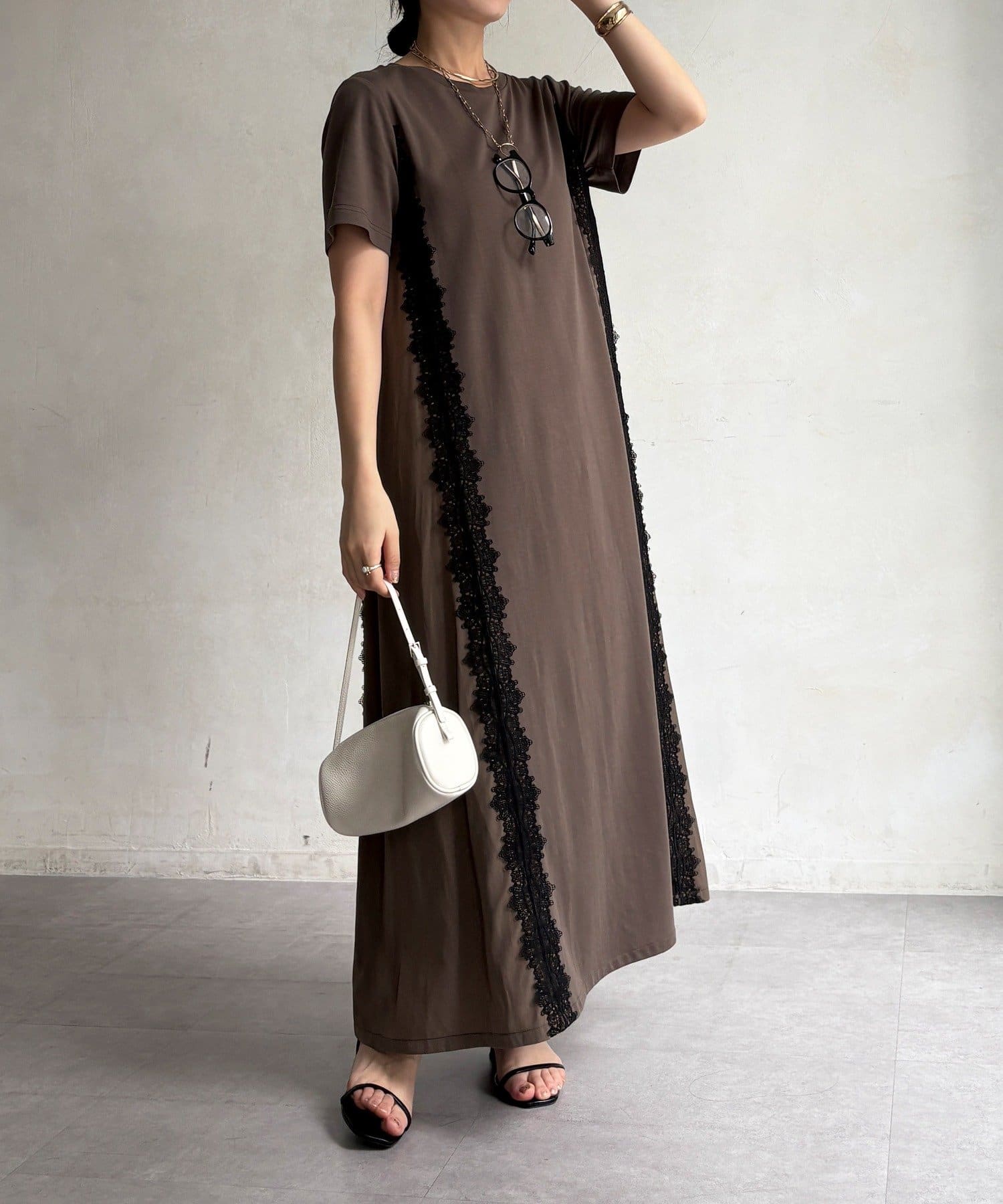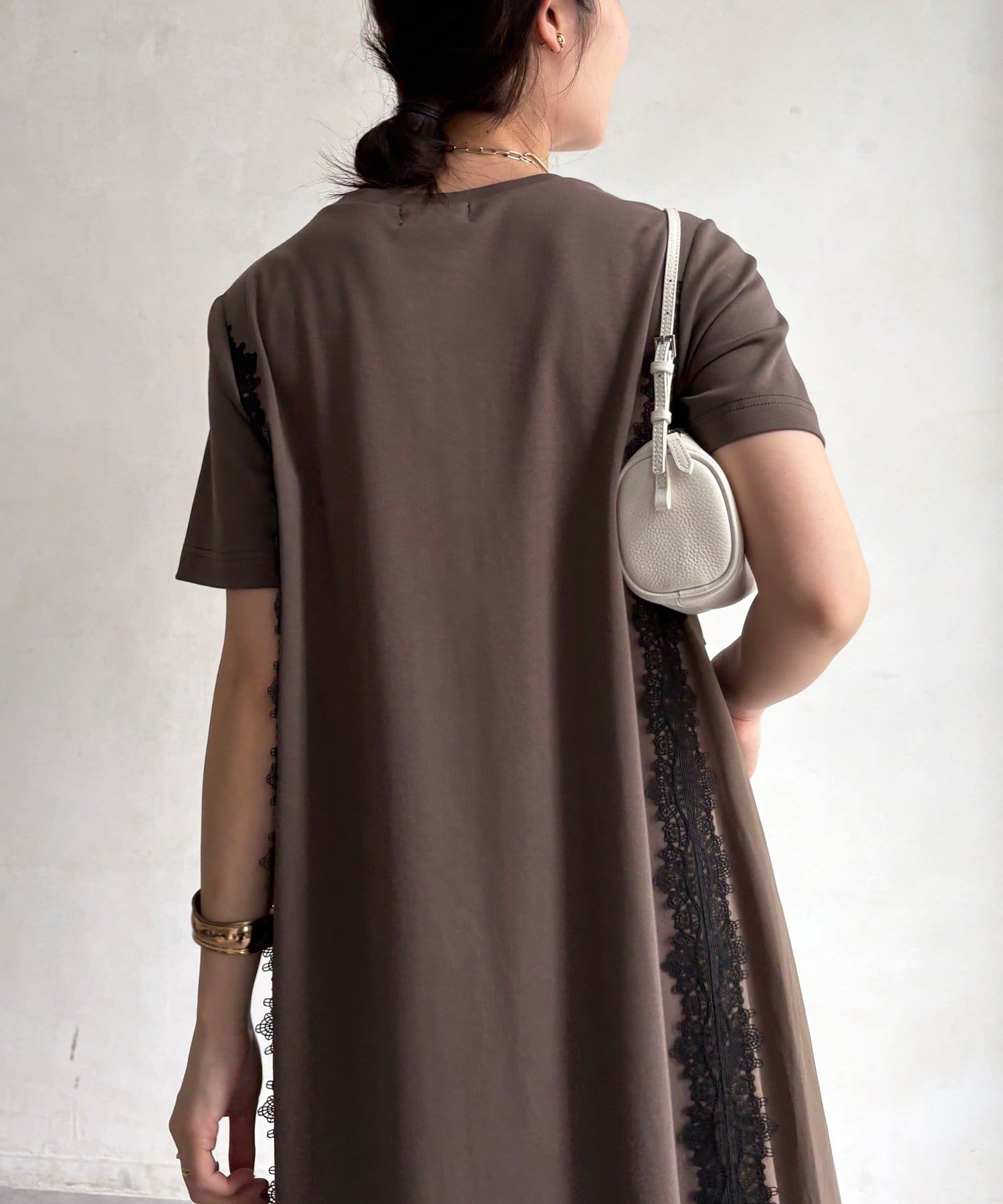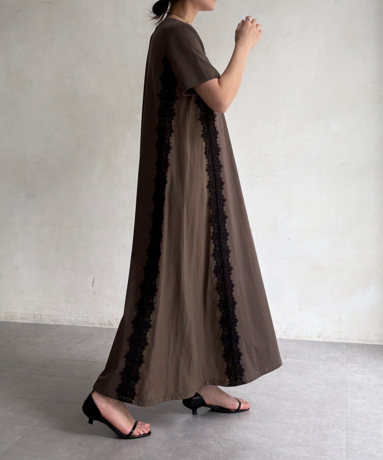 レースラインが映える布帛切替ワンピース