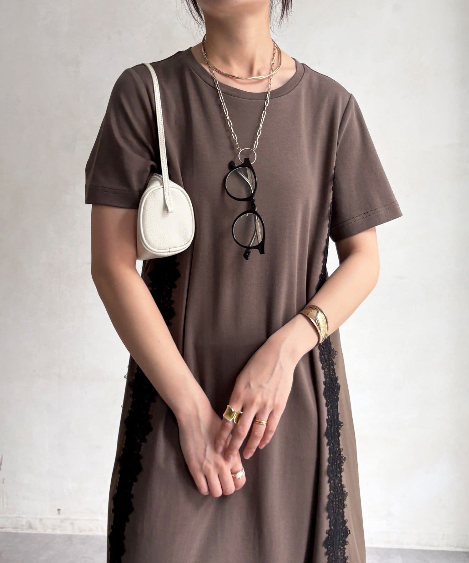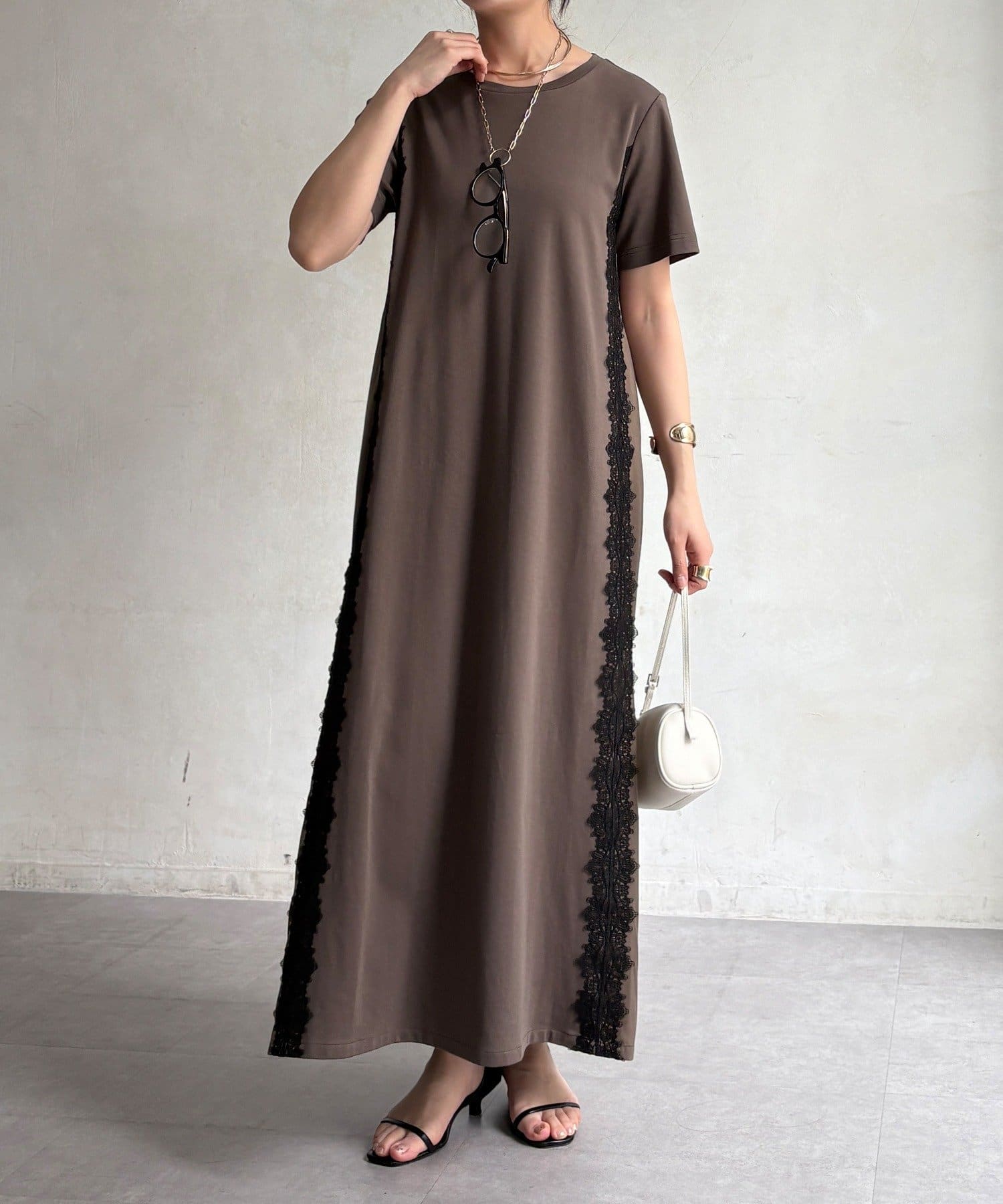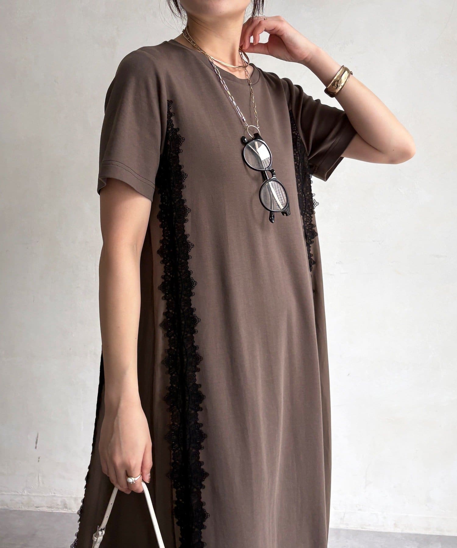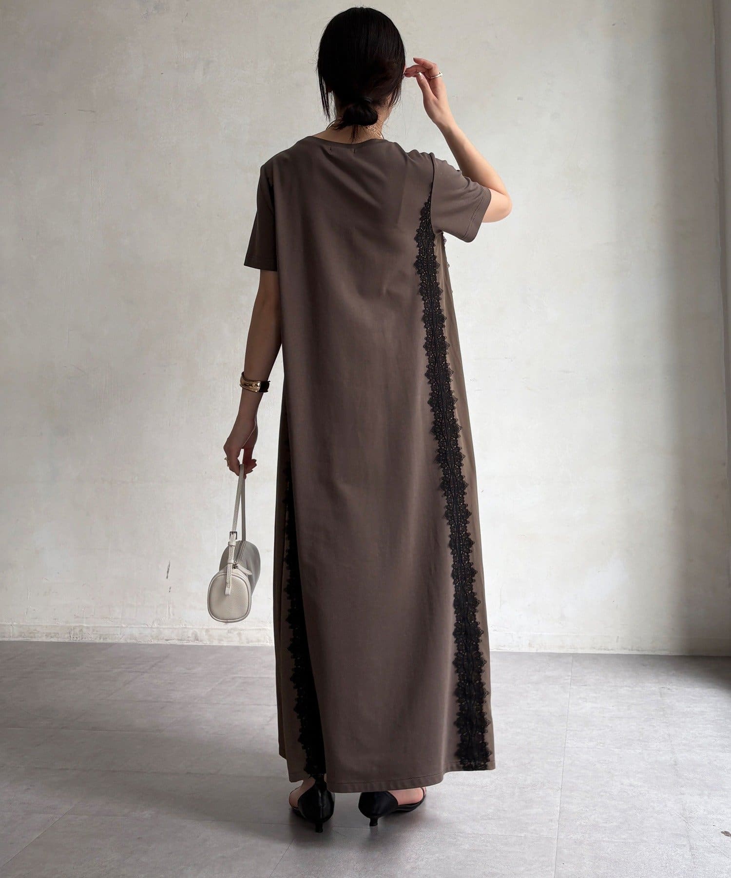 レースラインが映える布帛切替ワンピース