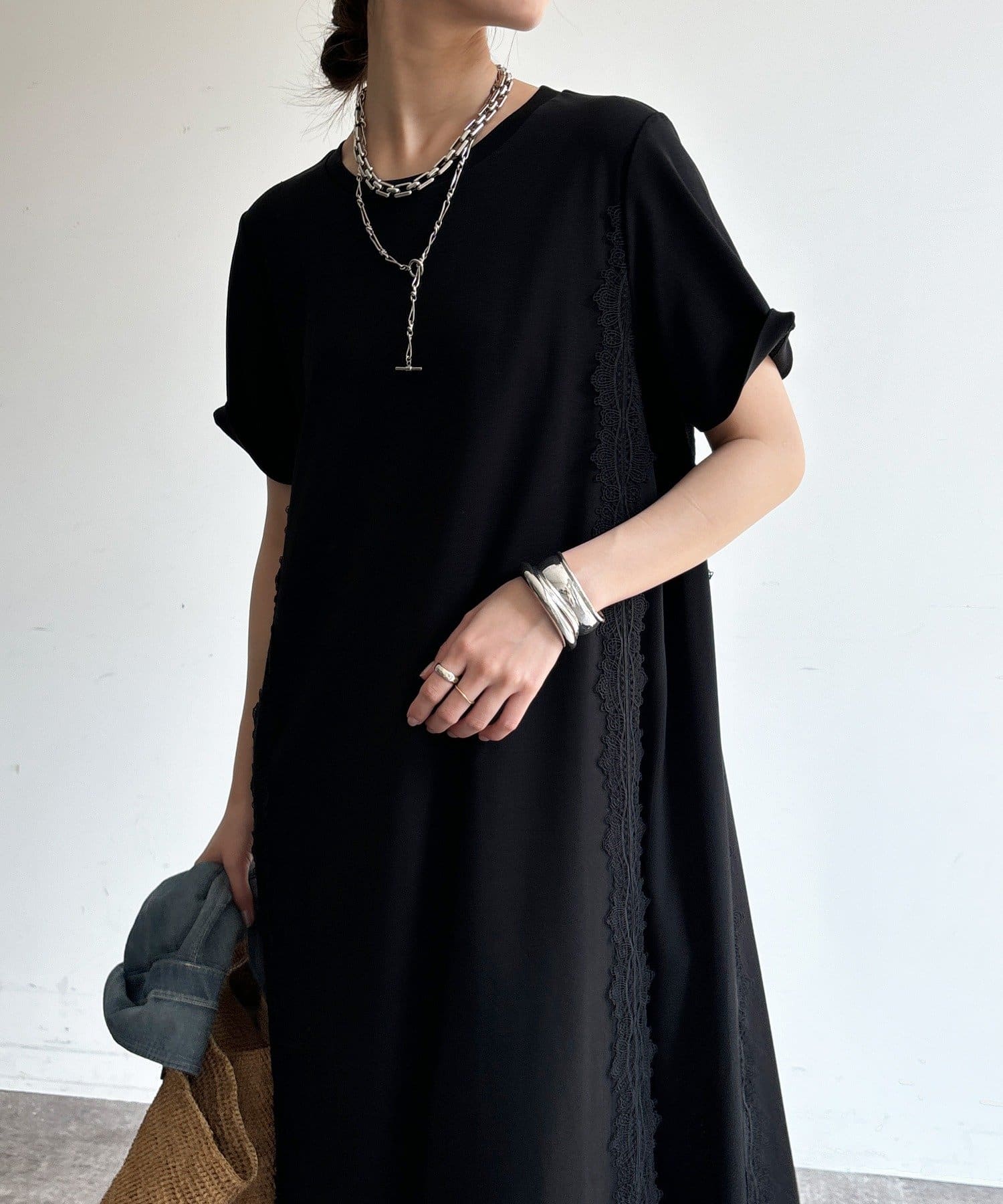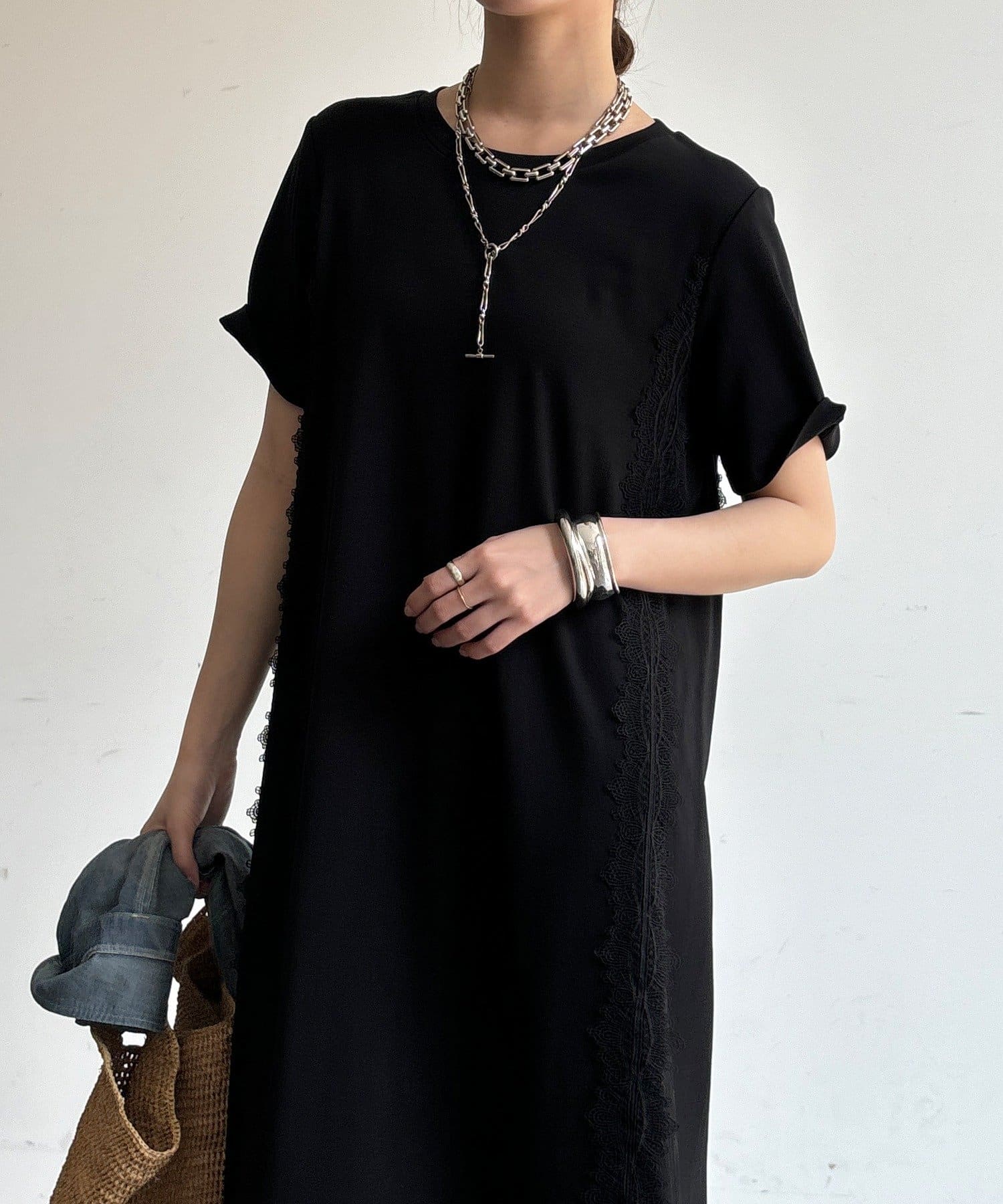 【WEB限定】レースライン布帛切替ワンピース