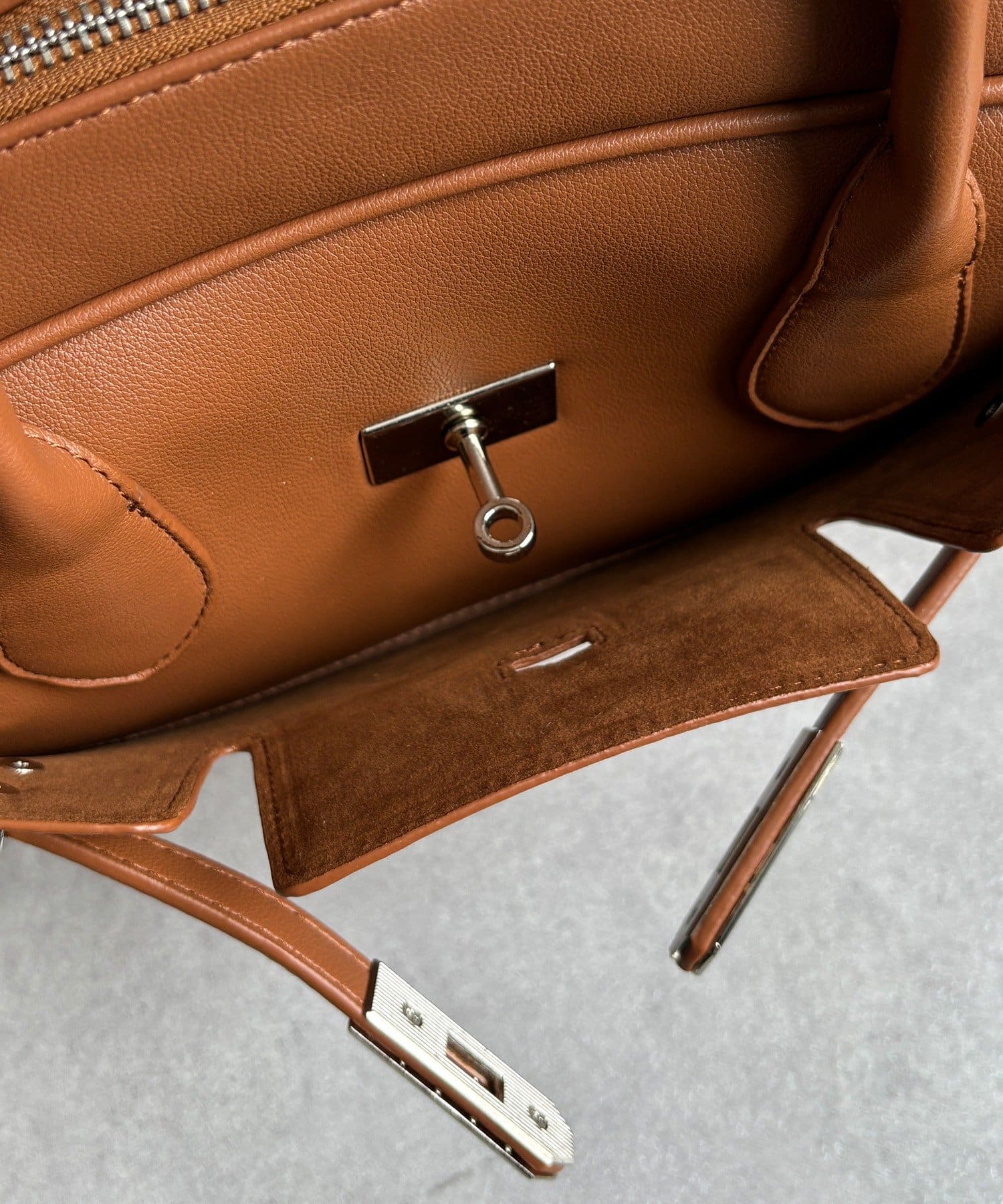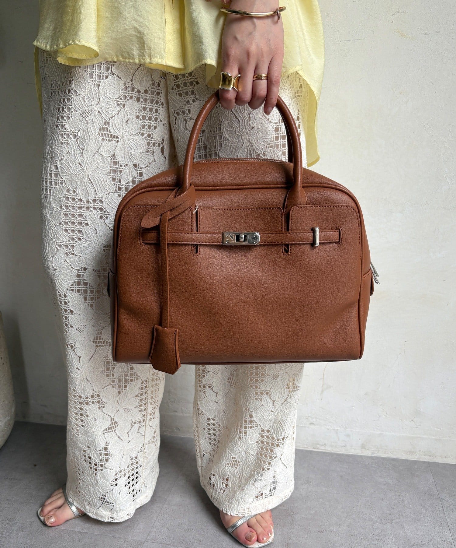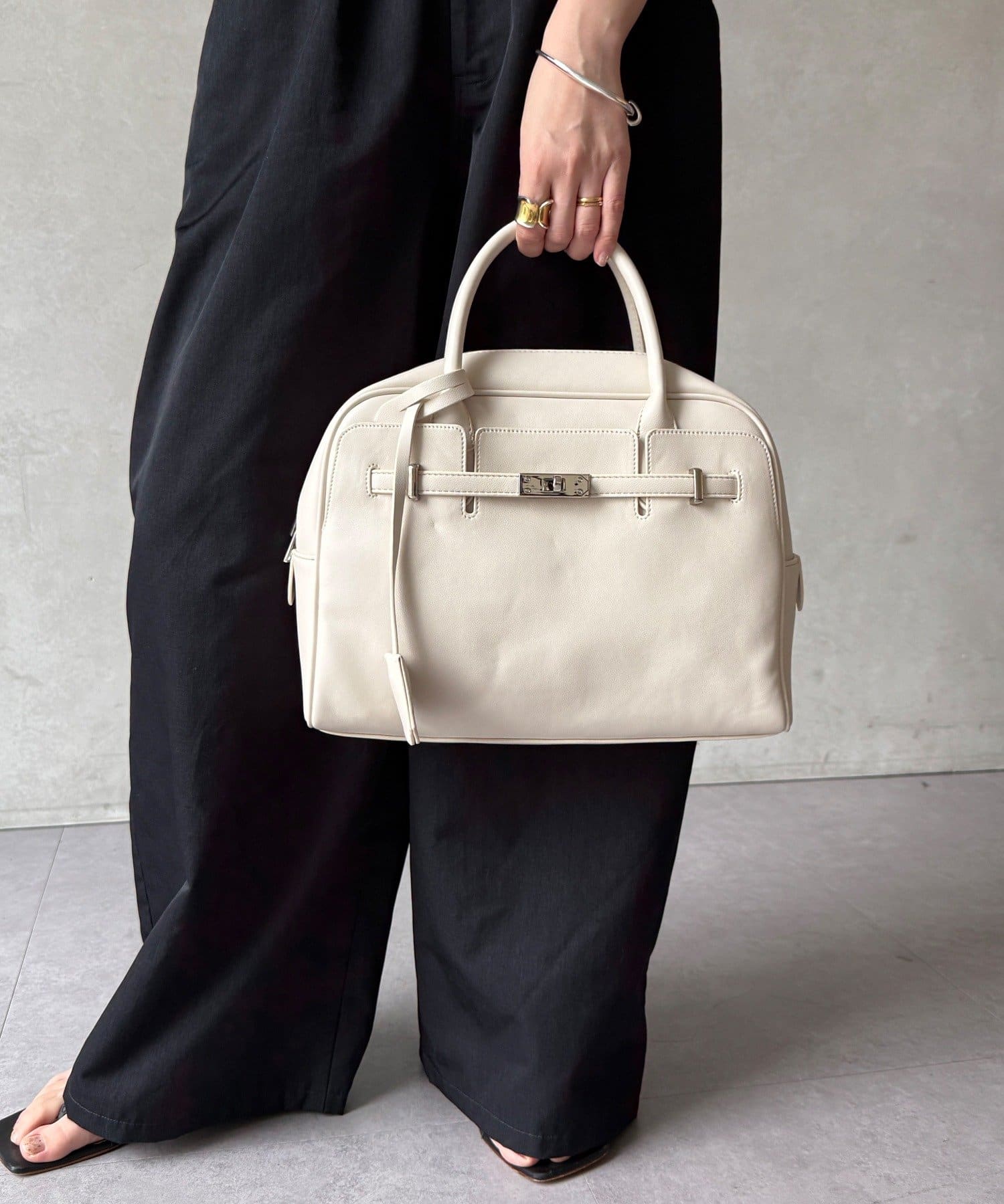 上品なケリー金具が、洗練された印象を引き立てます。
