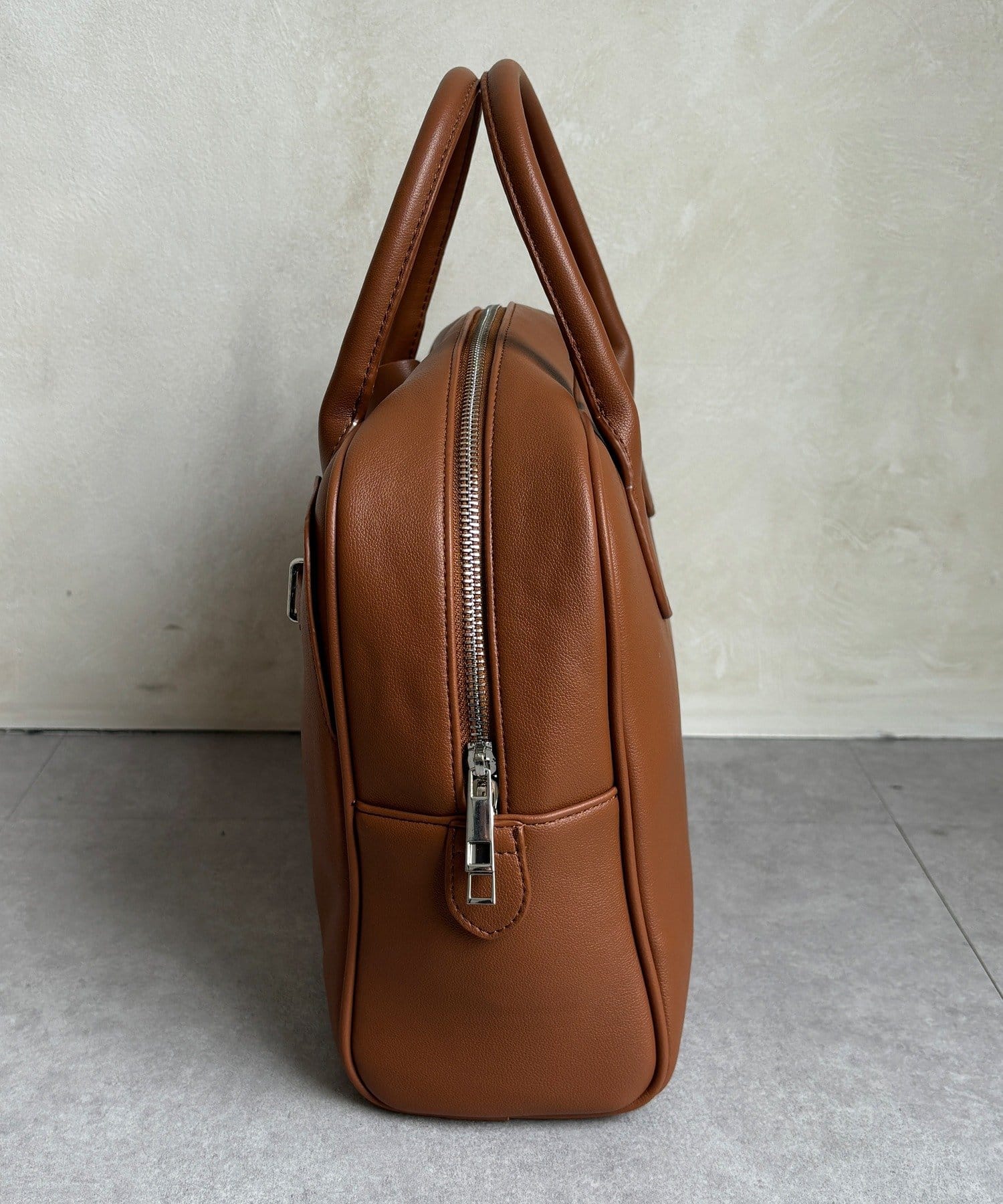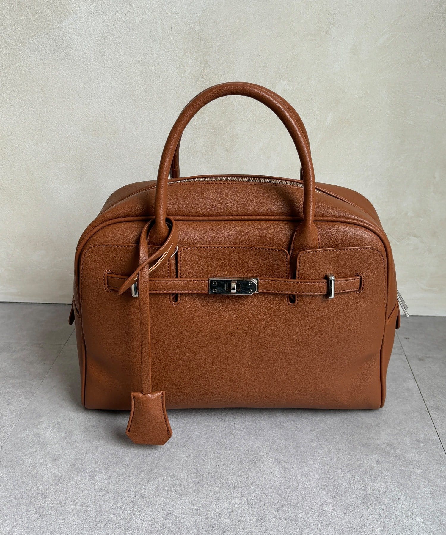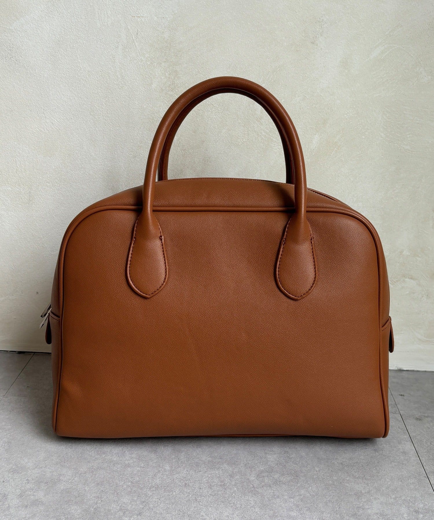 クラシカルな雰囲気漂う、ボーリング型バッグ。